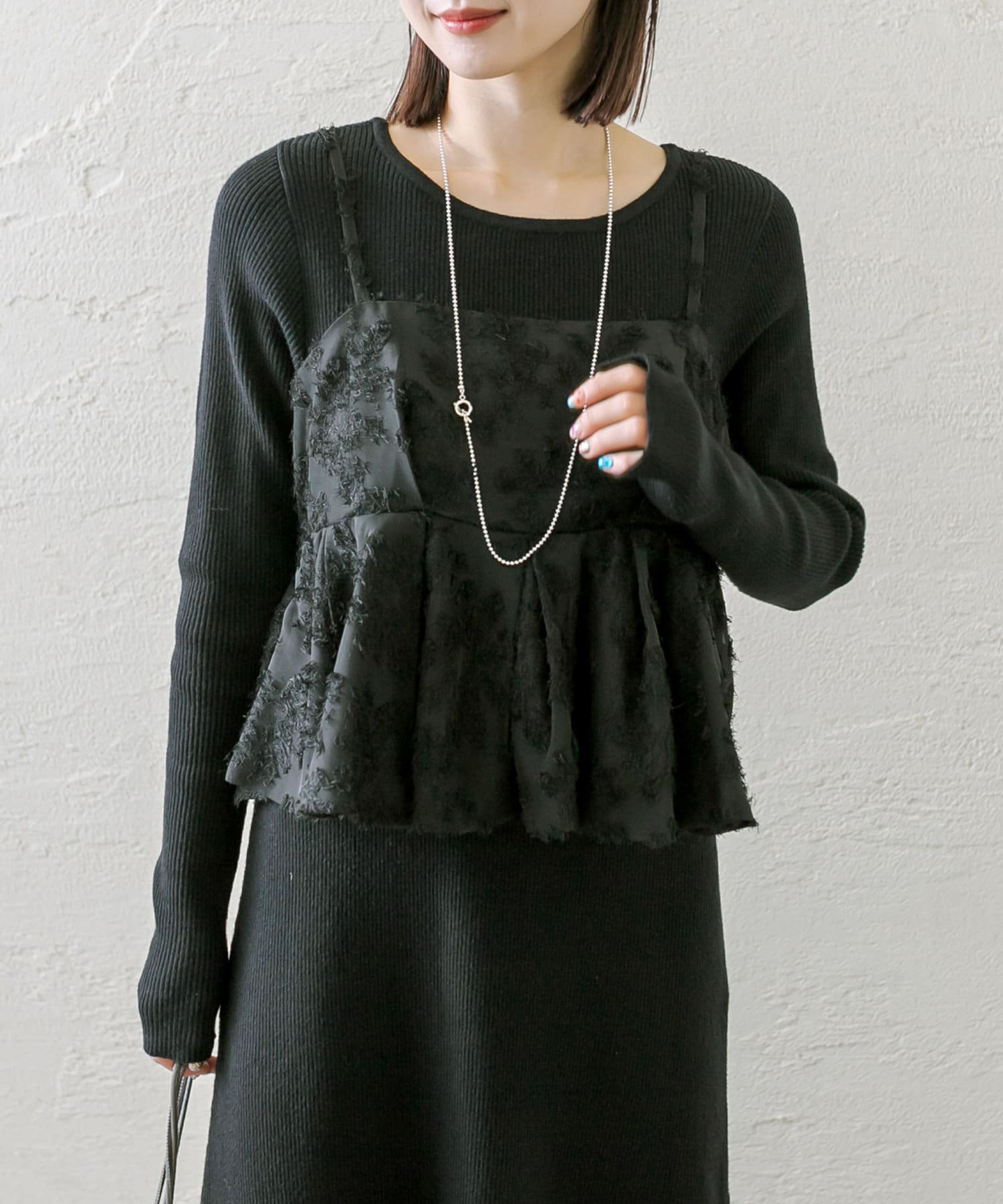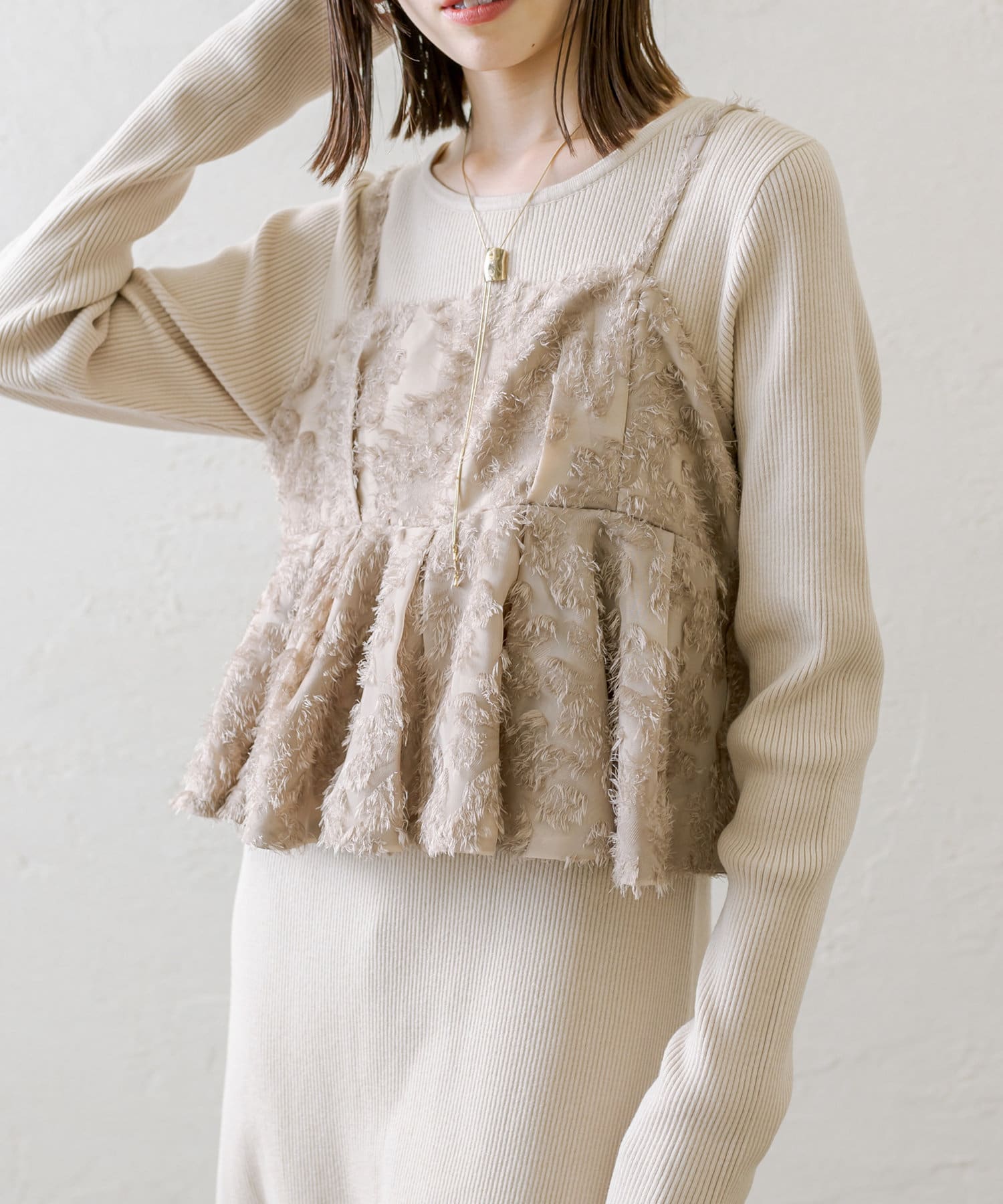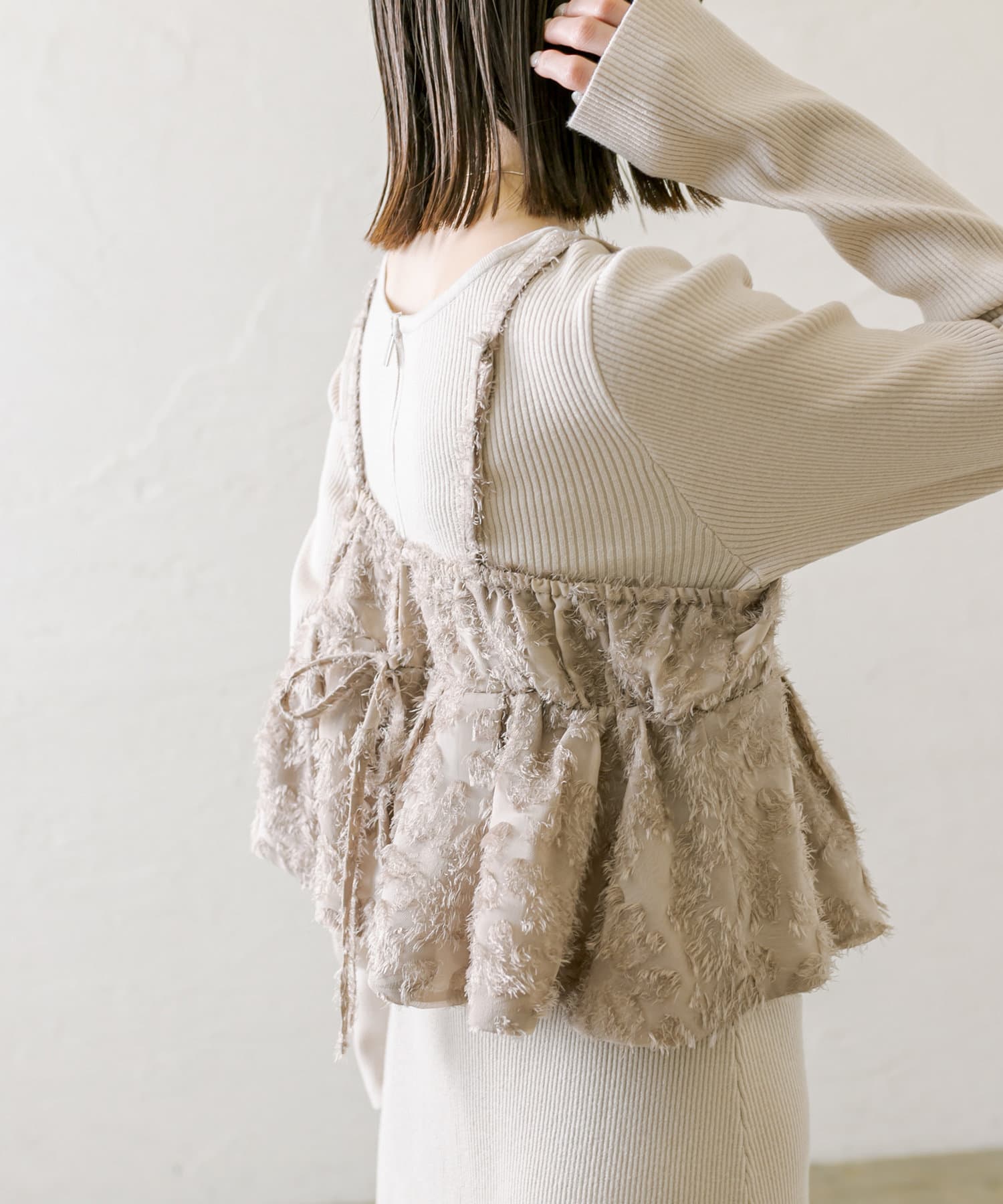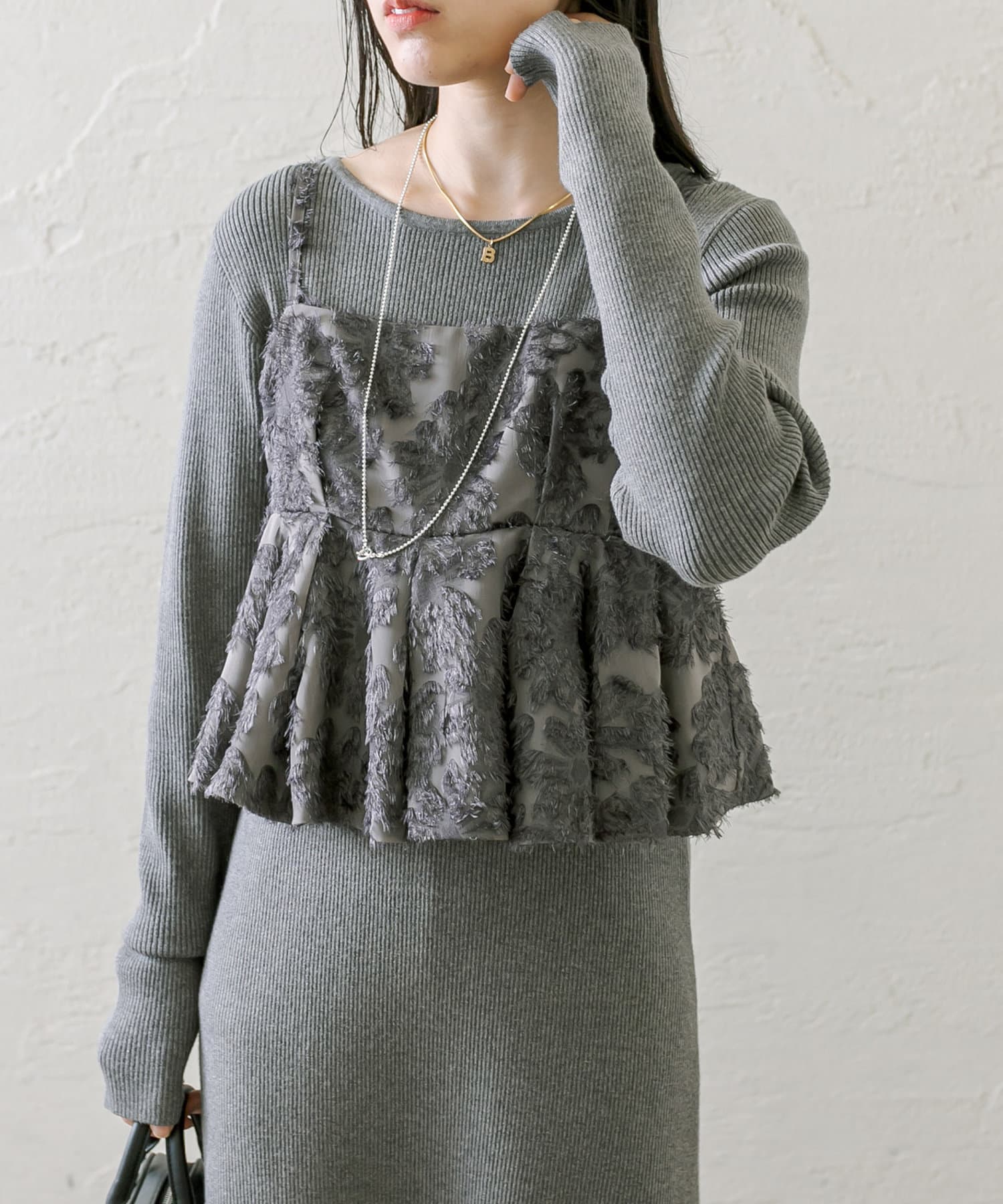・ジャガード素材でアクセントになるビスチェがセットに◎