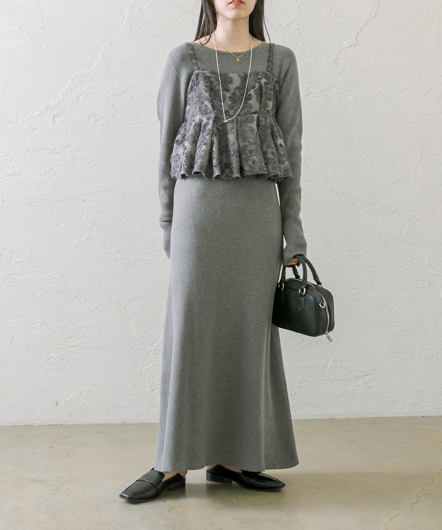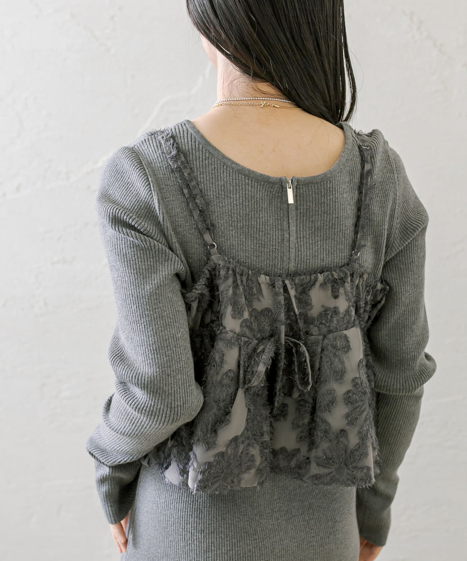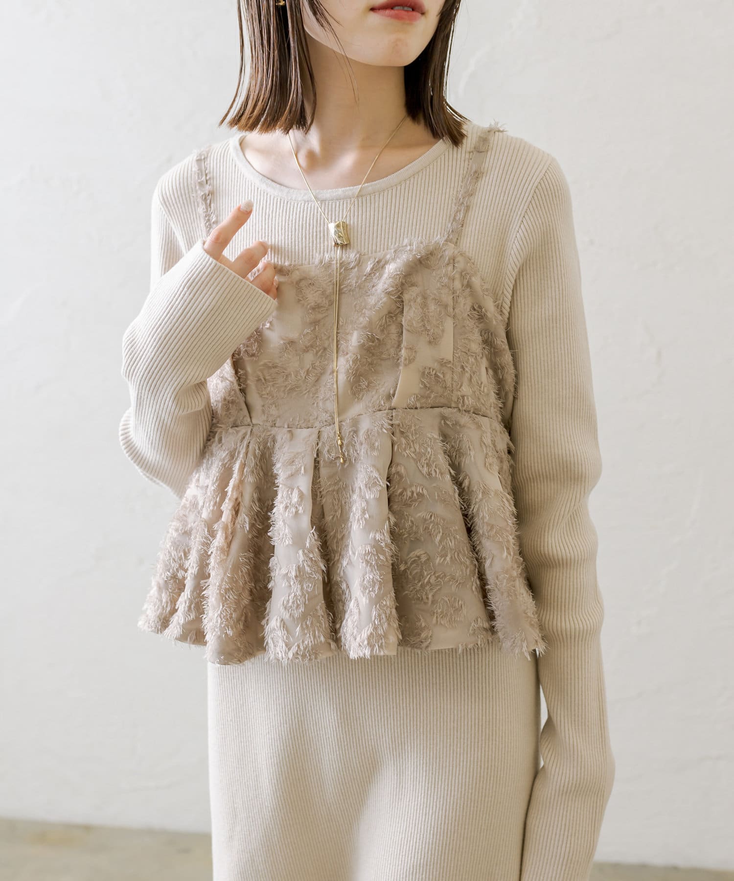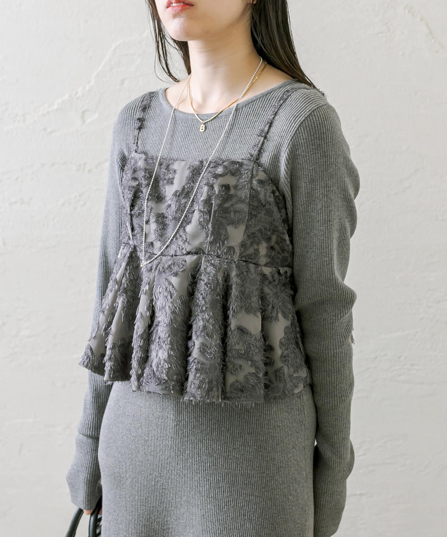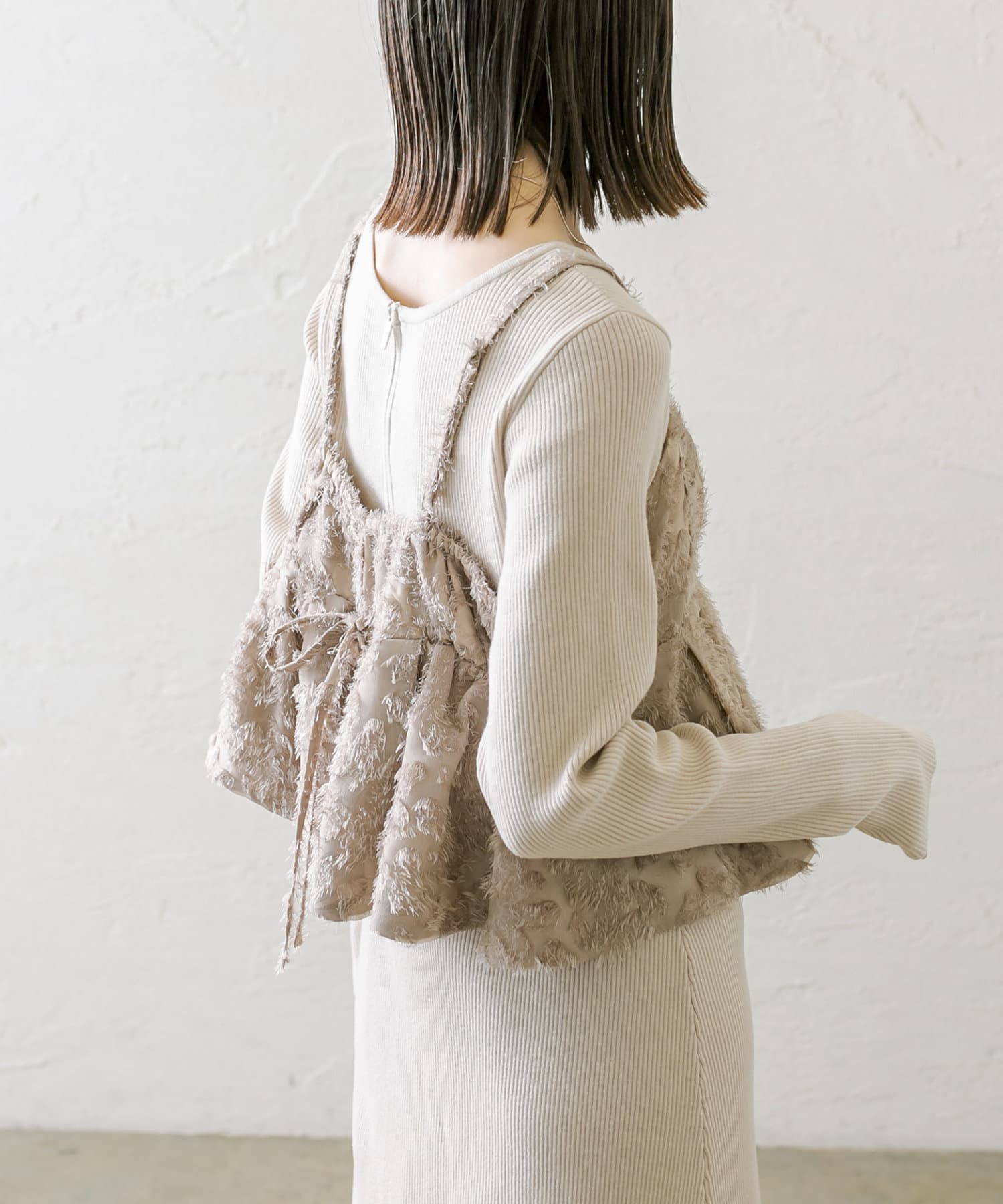 ・ジャガード素材でアクセントになるビスチェがセットに◎