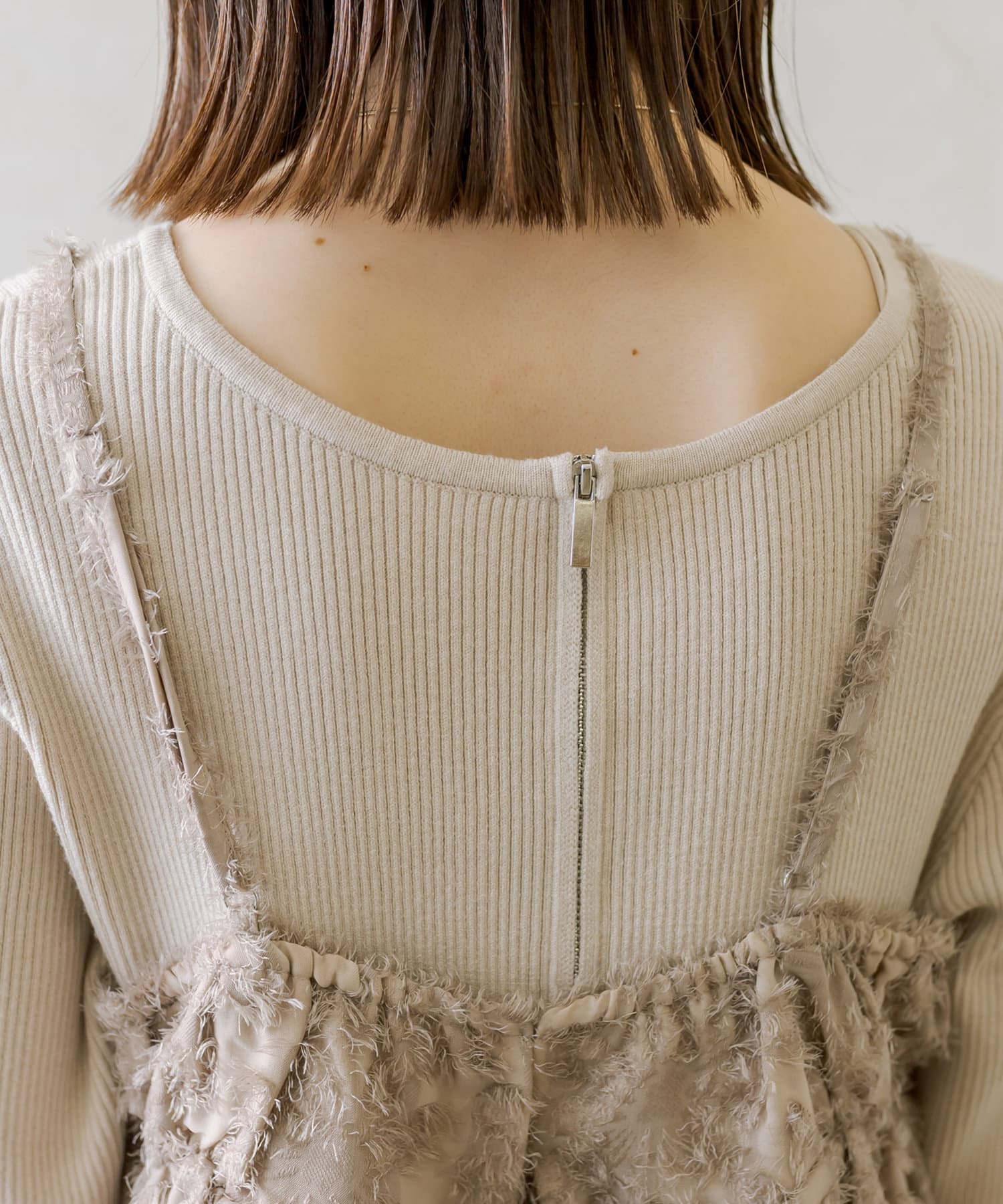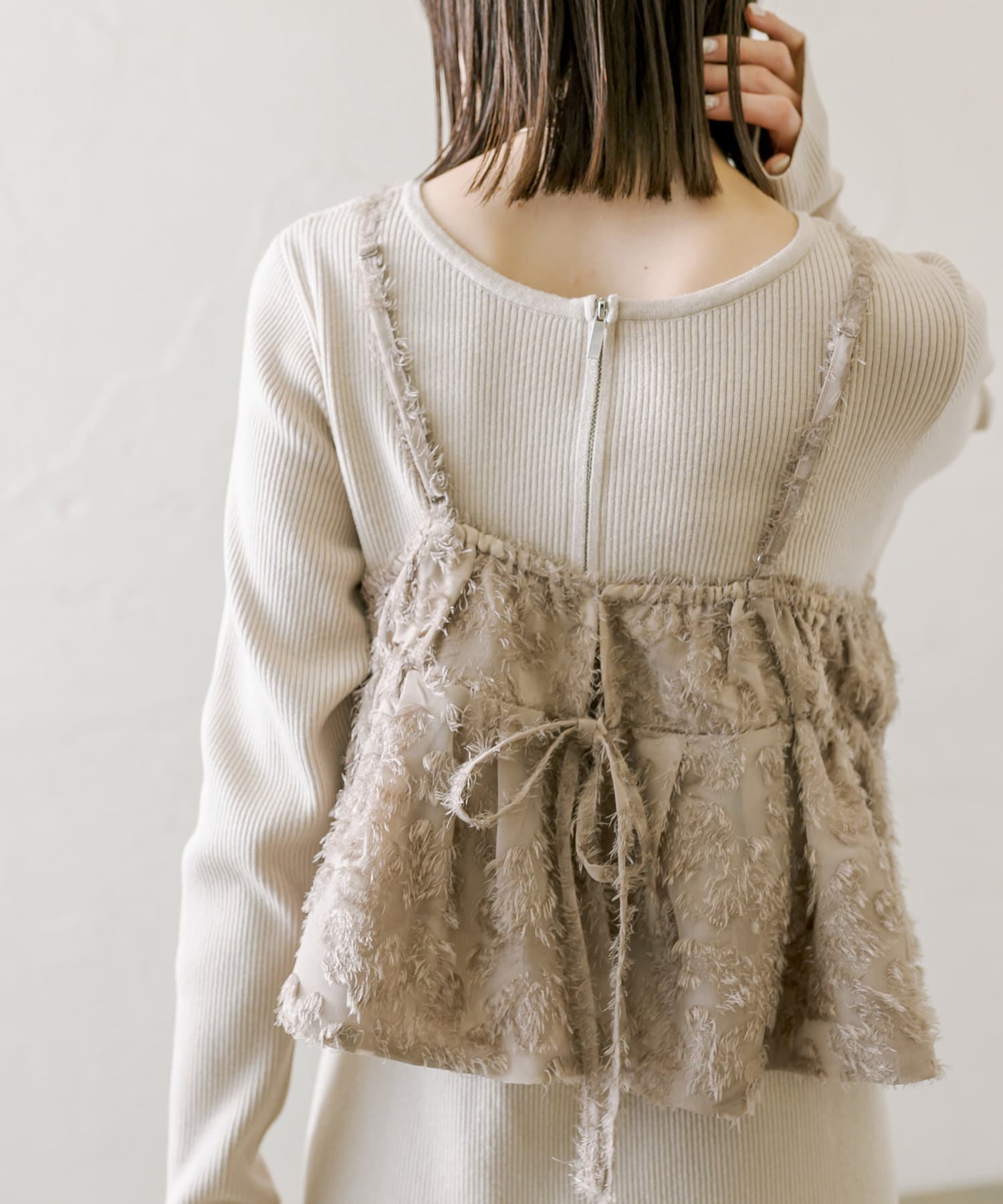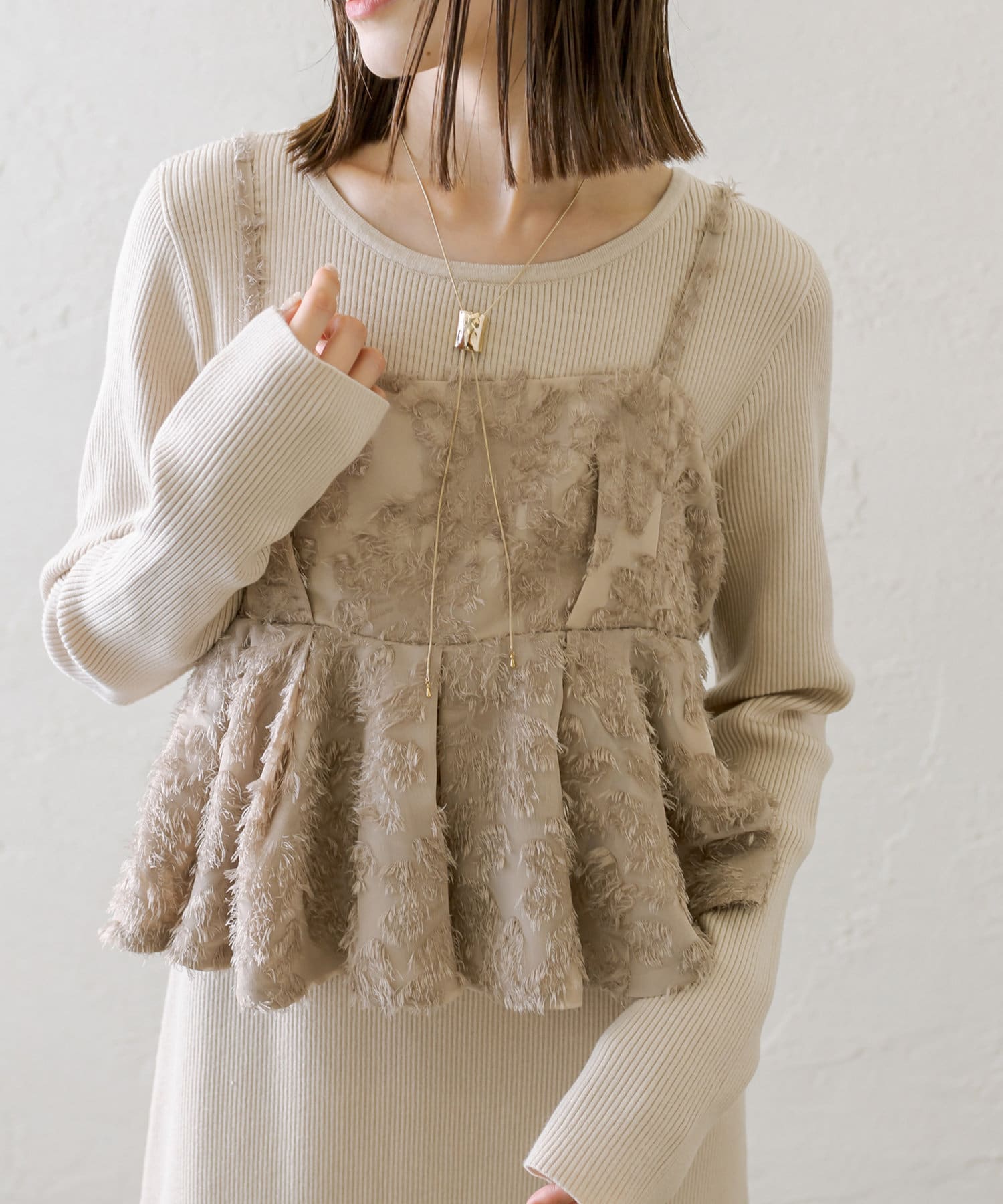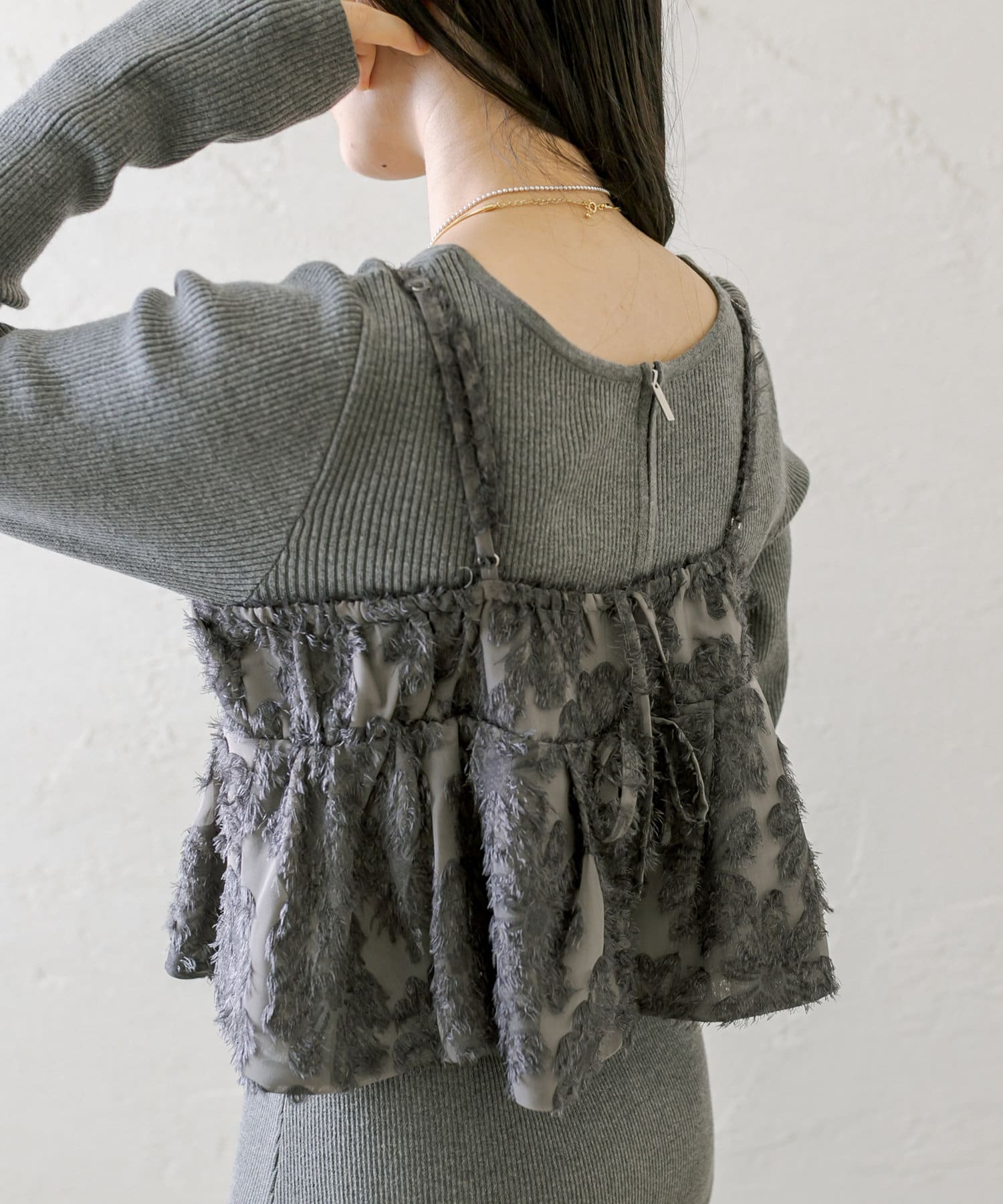 ・ジャガード素材でアクセントになるビスチェがセットに◎