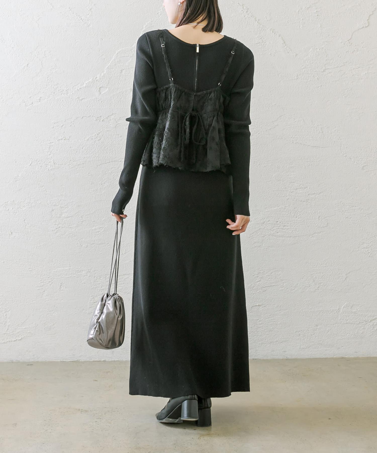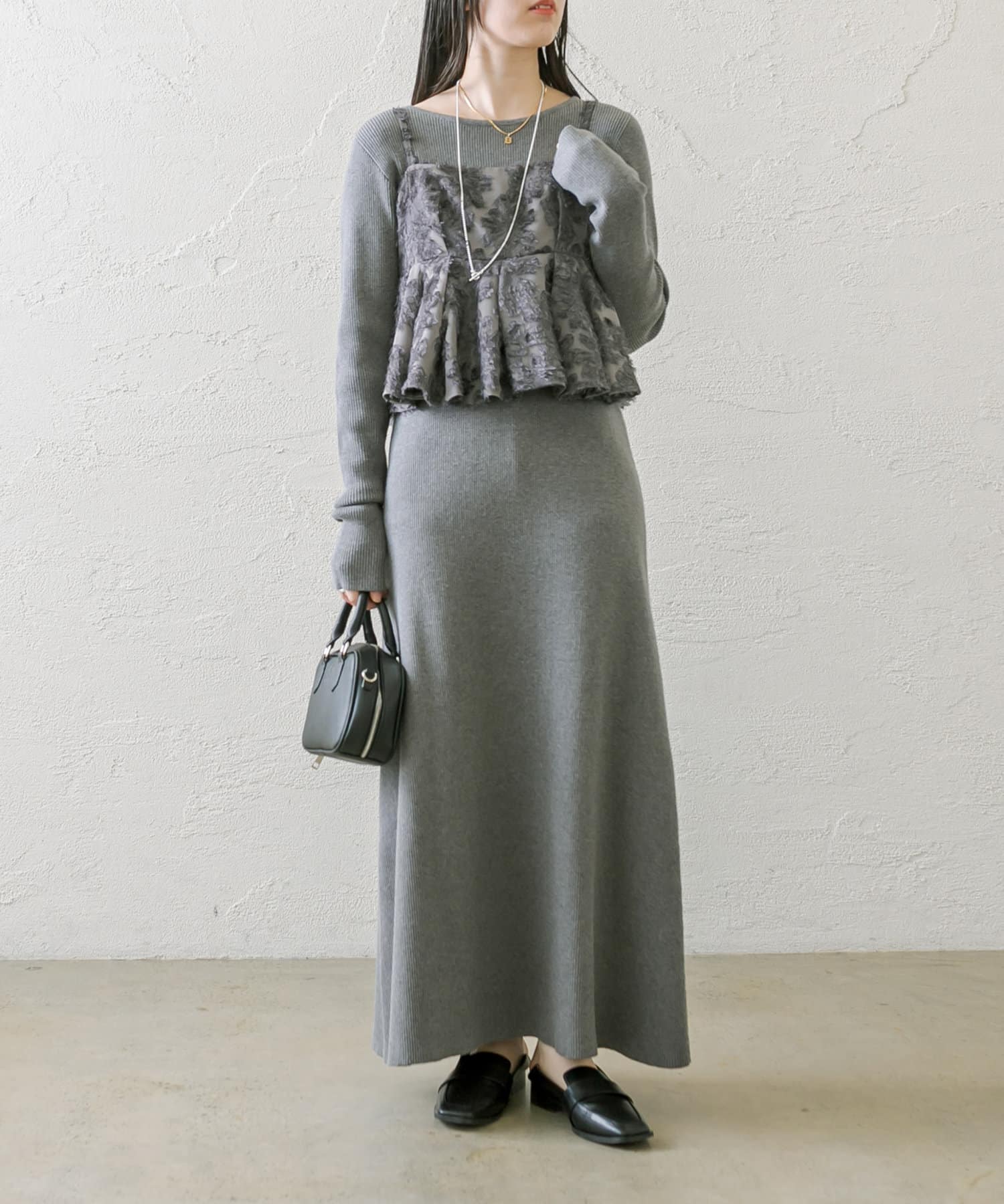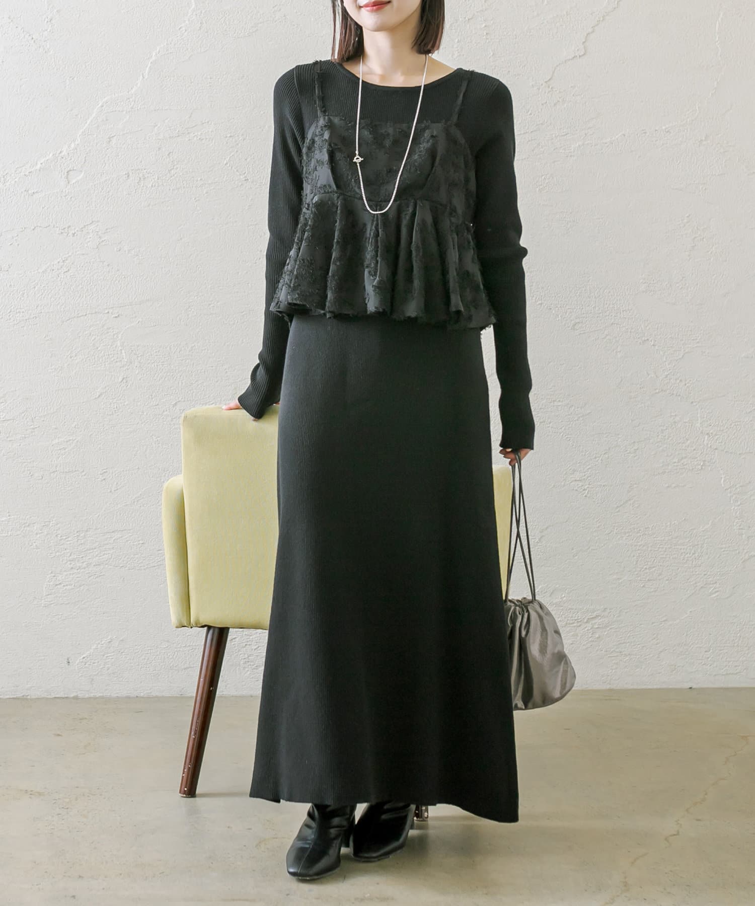 ・セットのビスチェをワンピースに合わせたスタイリングは一着で決まります。