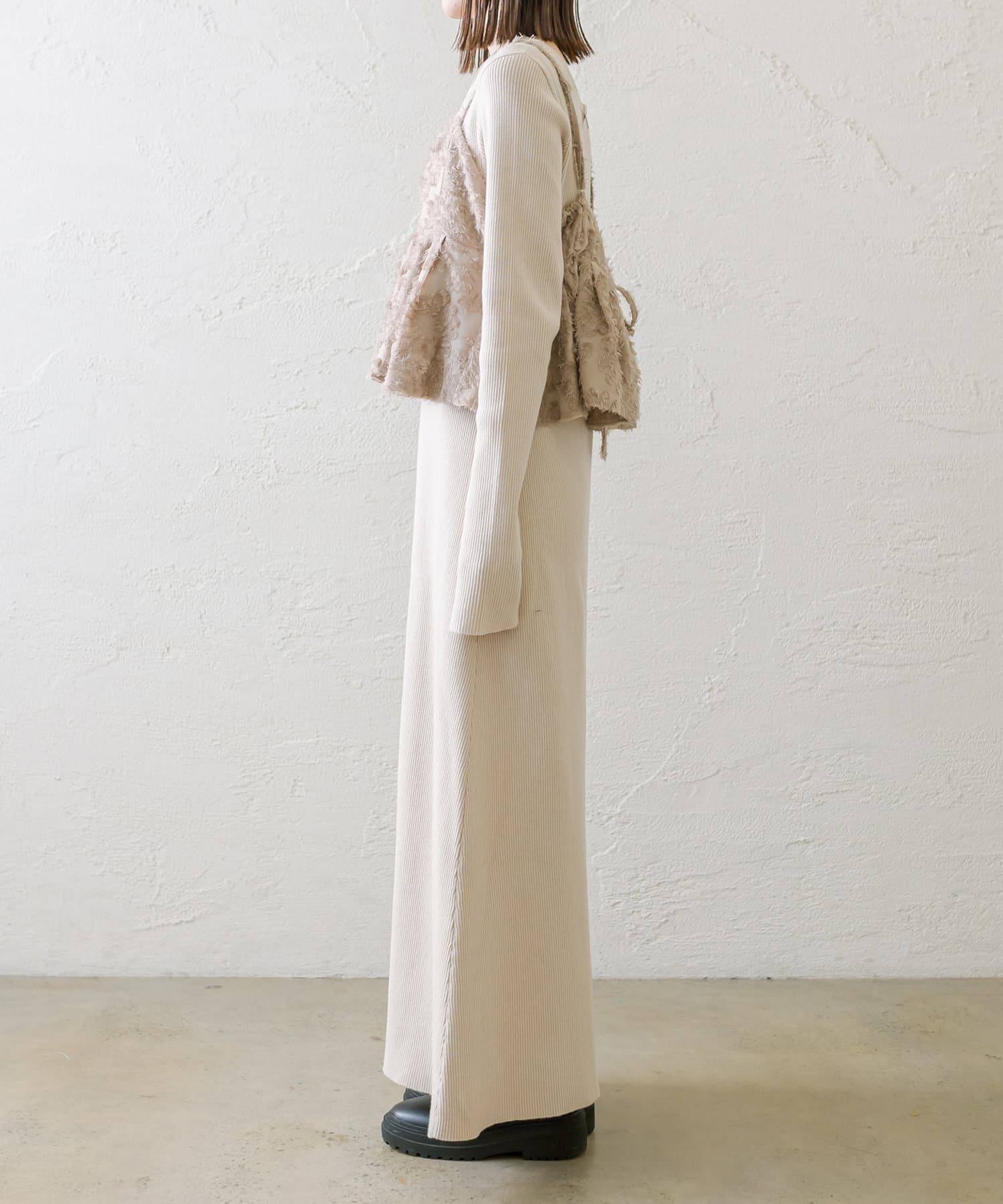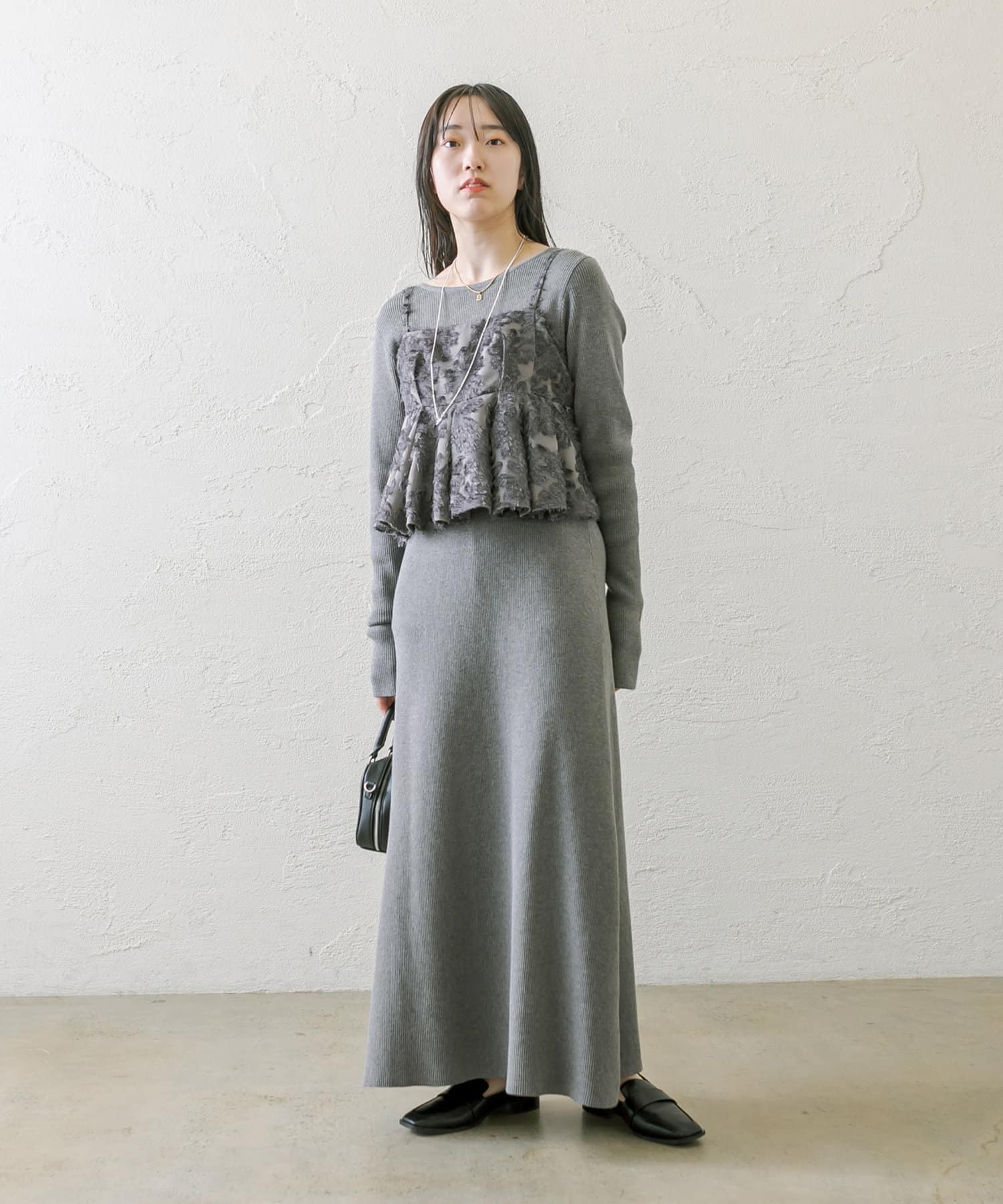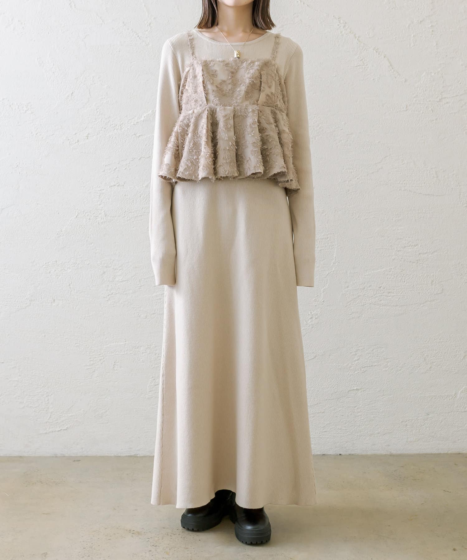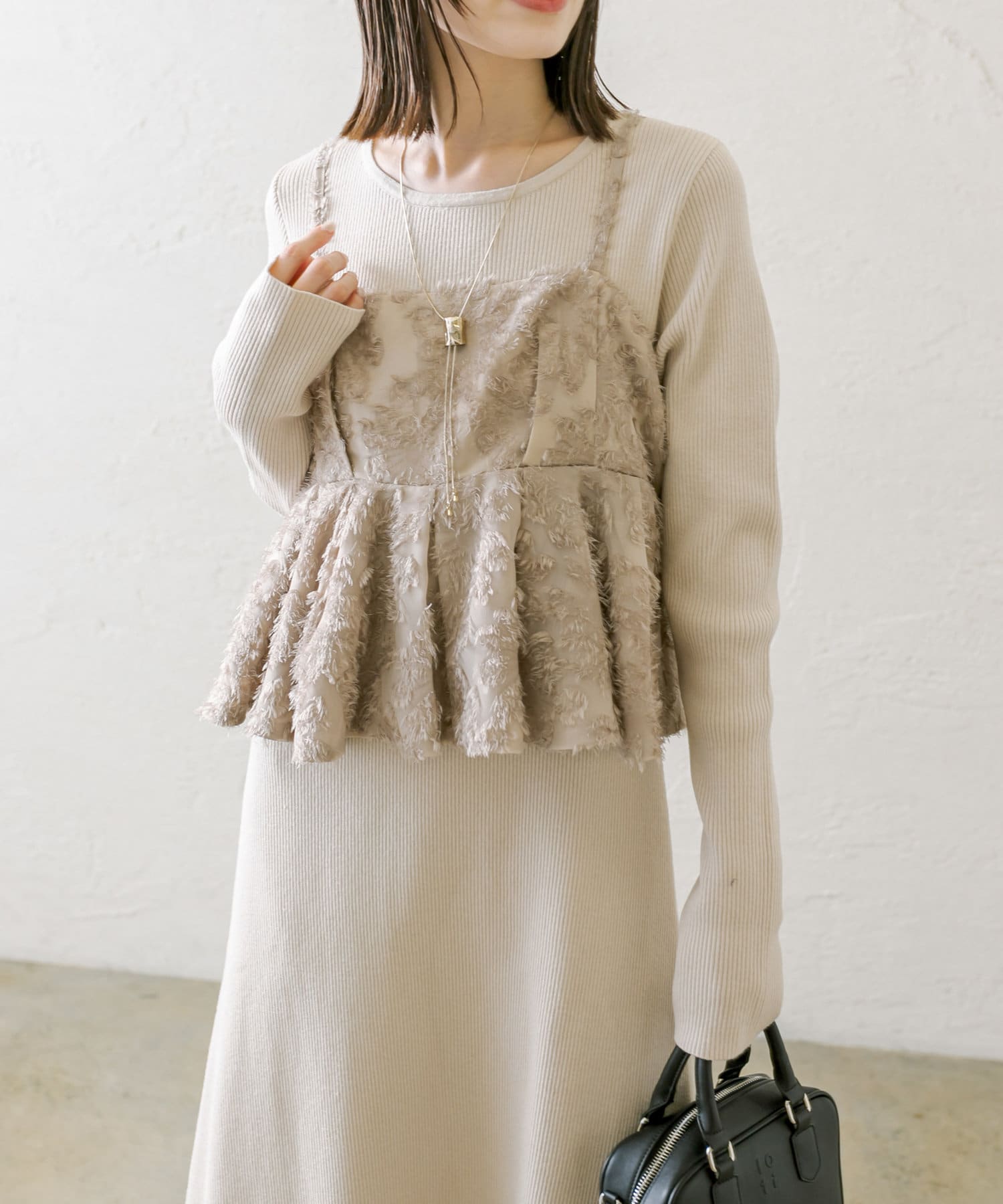・セットのビスチェをワンピースに合わせたスタイリングは一着で決まります。