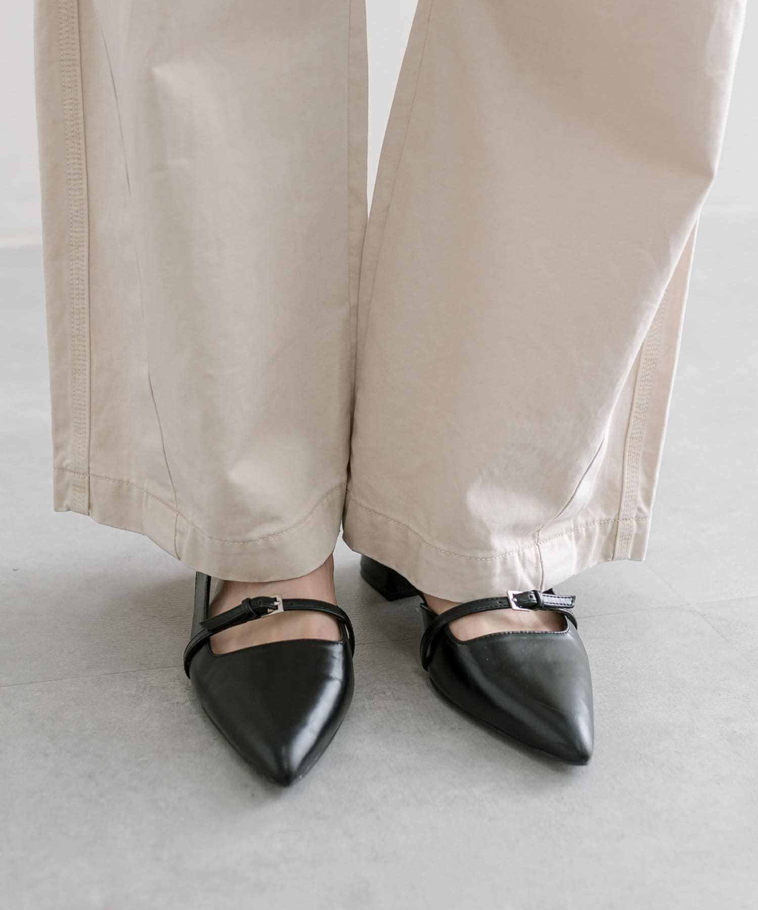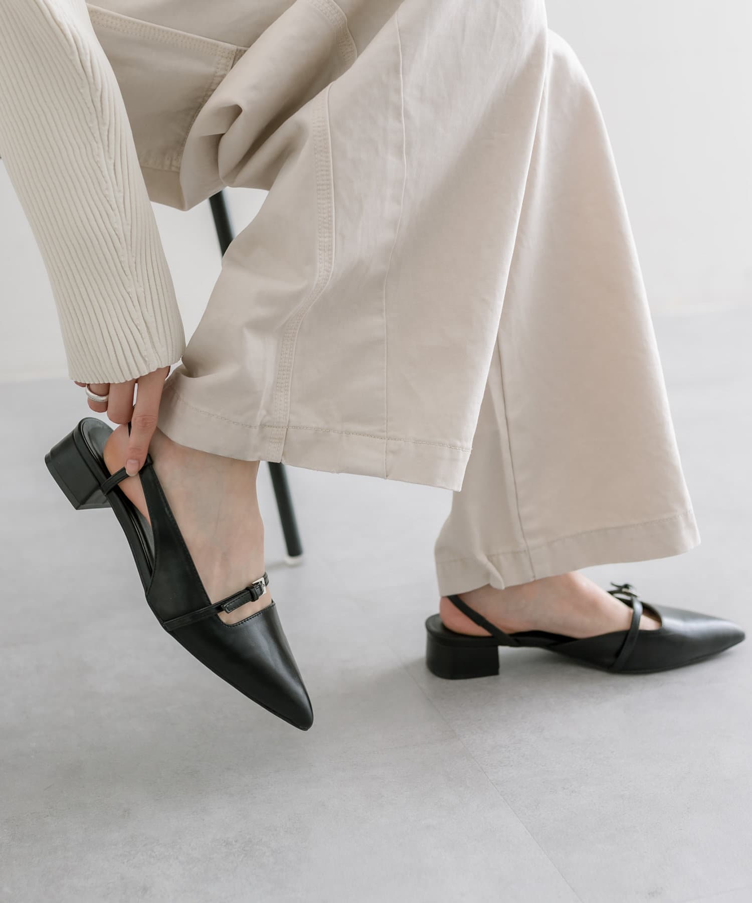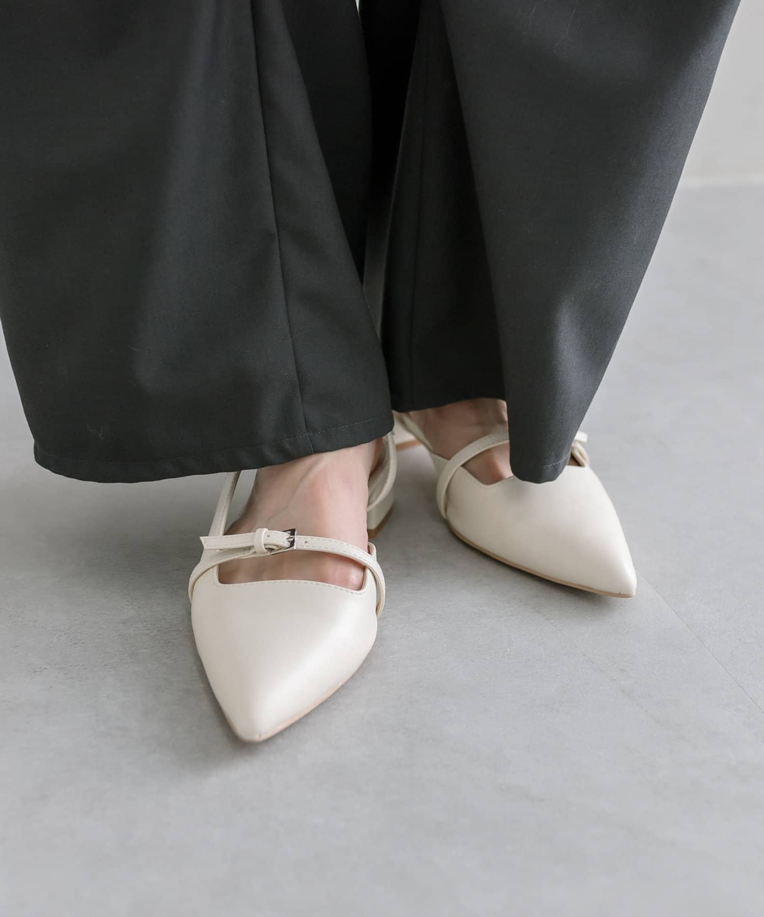 ・足の甲が広めに開いたデザインなのでスラックスやロングスカートもすっきり決まりやすい◎