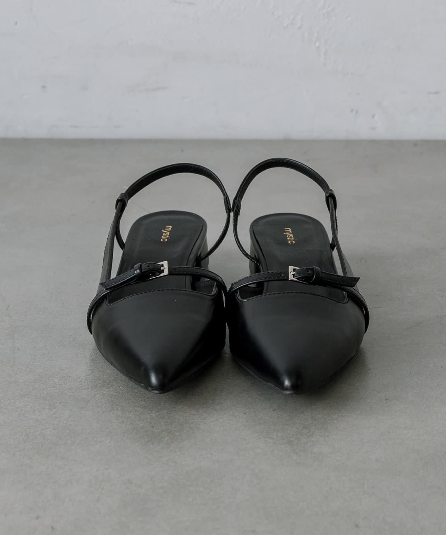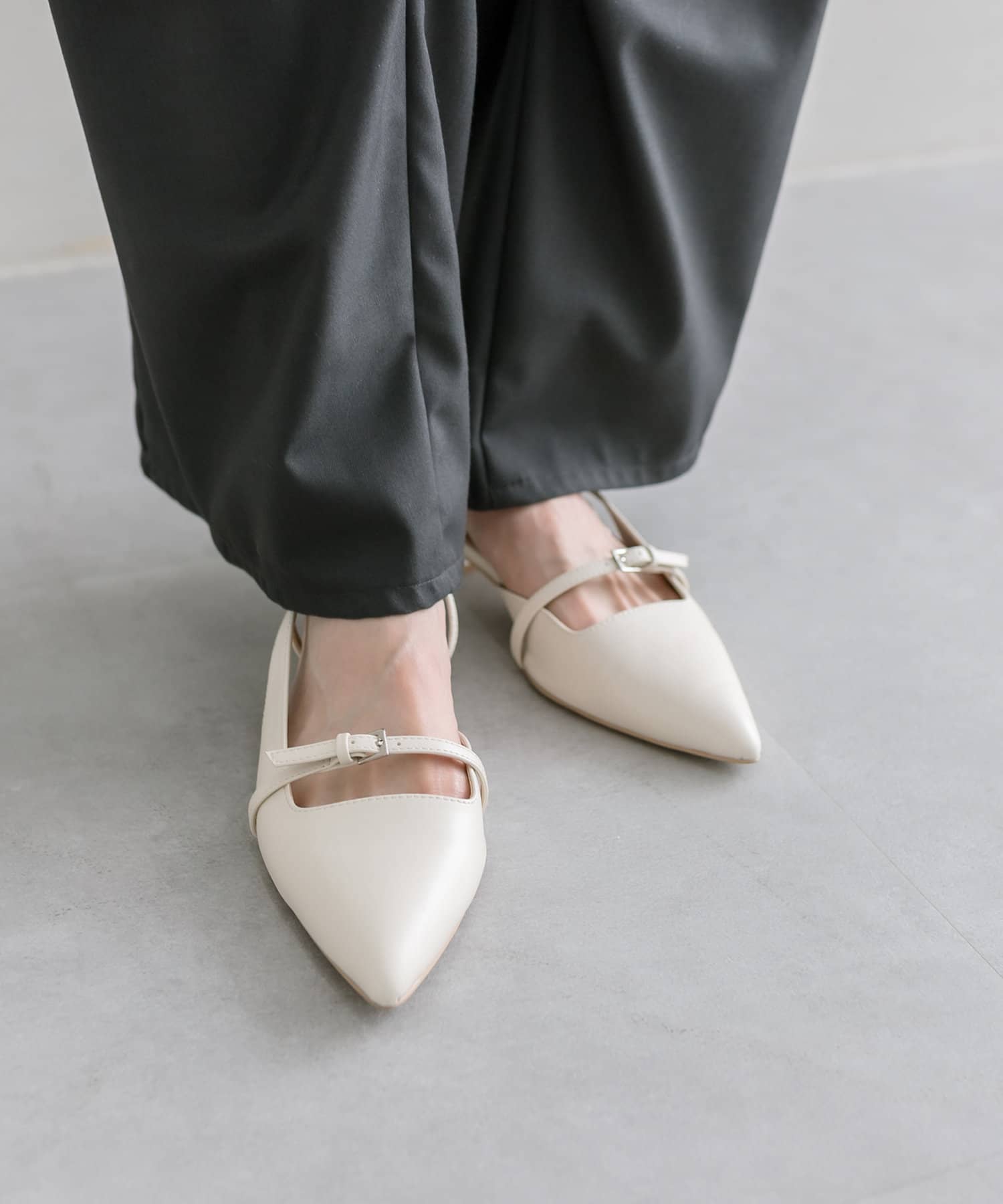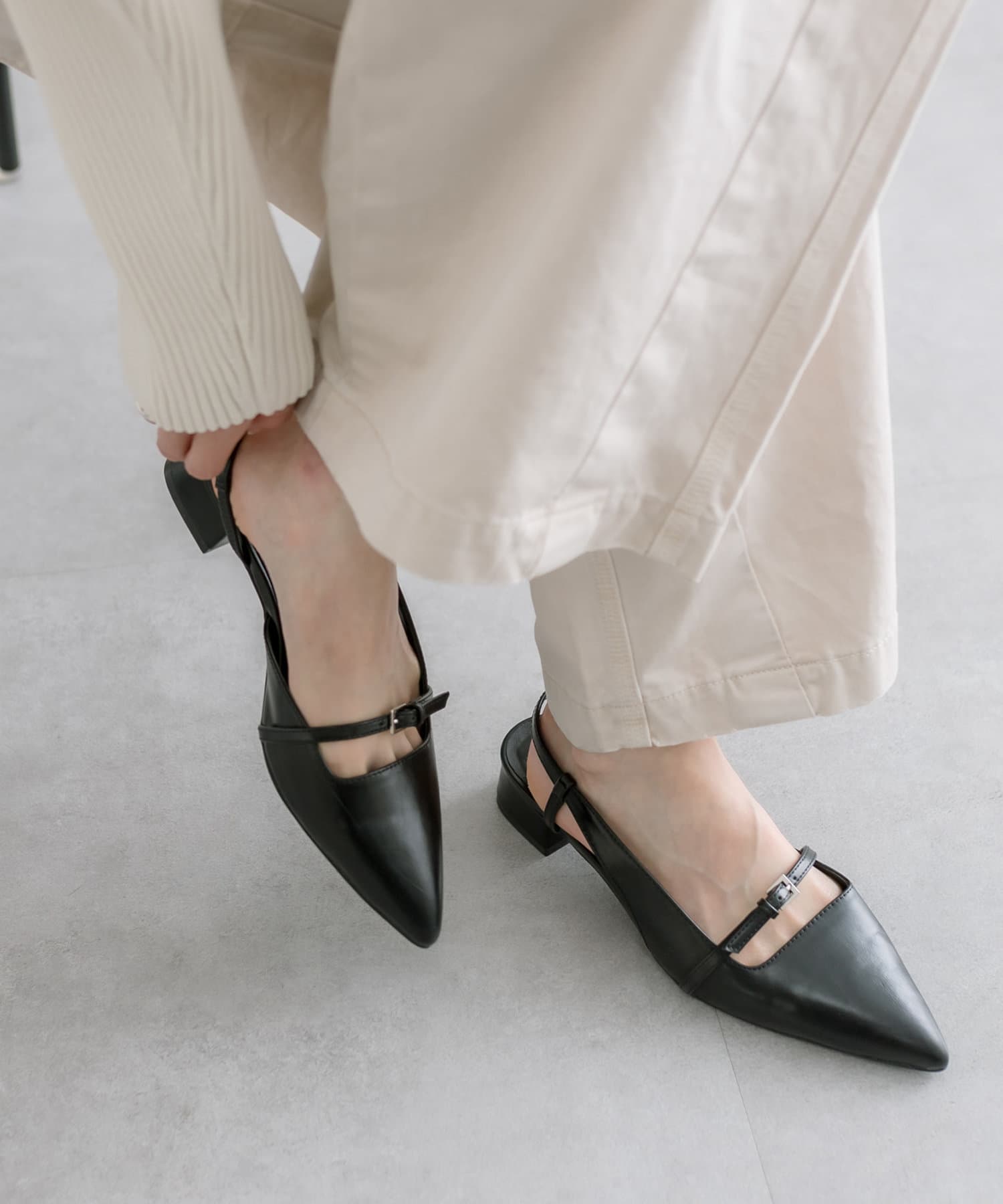・足の甲が広めに開いたデザインなのでスラックスやロングスカートもすっきり決まりやすい◎