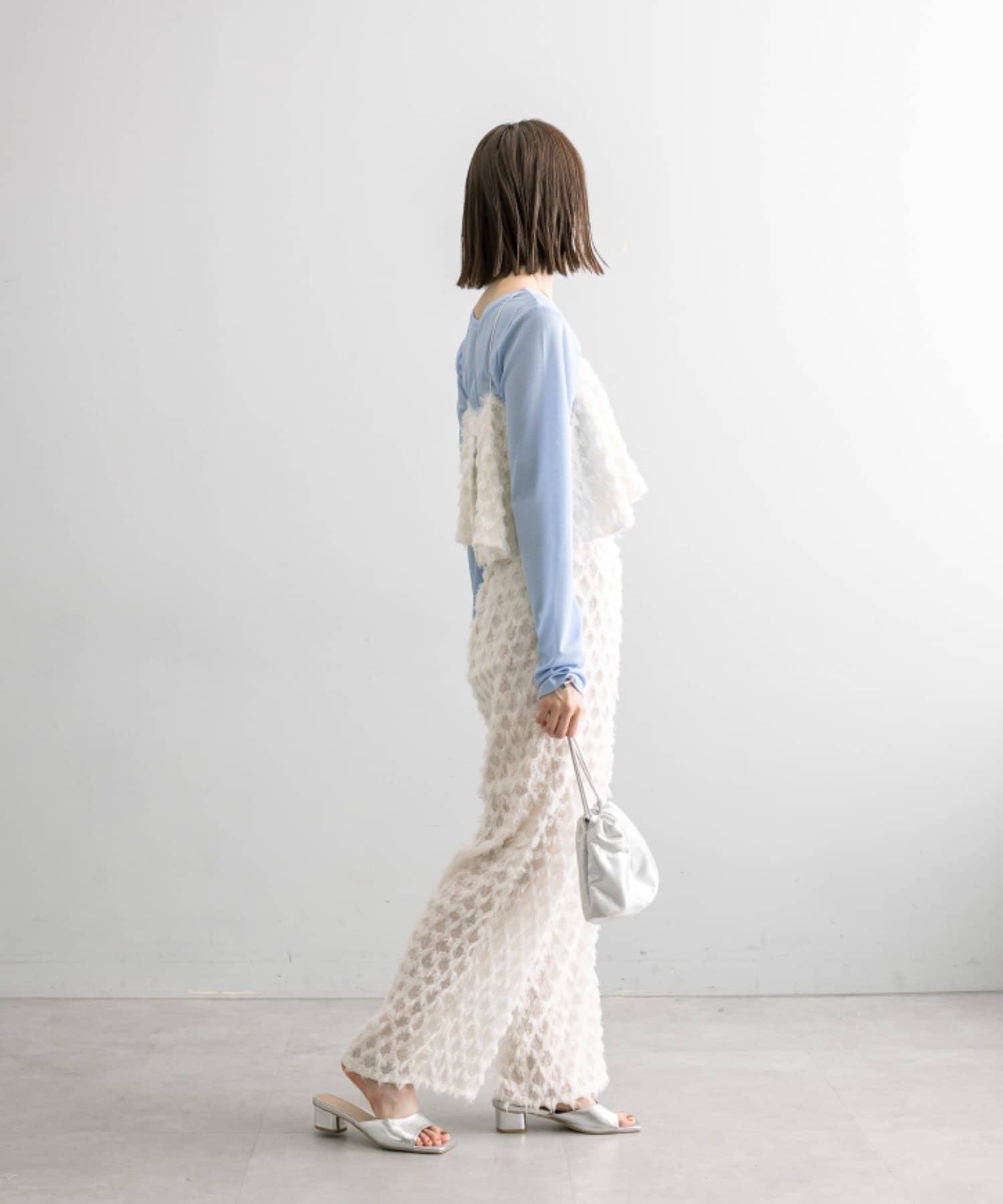 フリンジ素材で一枚で目を惹くパンツが2サイズ展開で登場。
