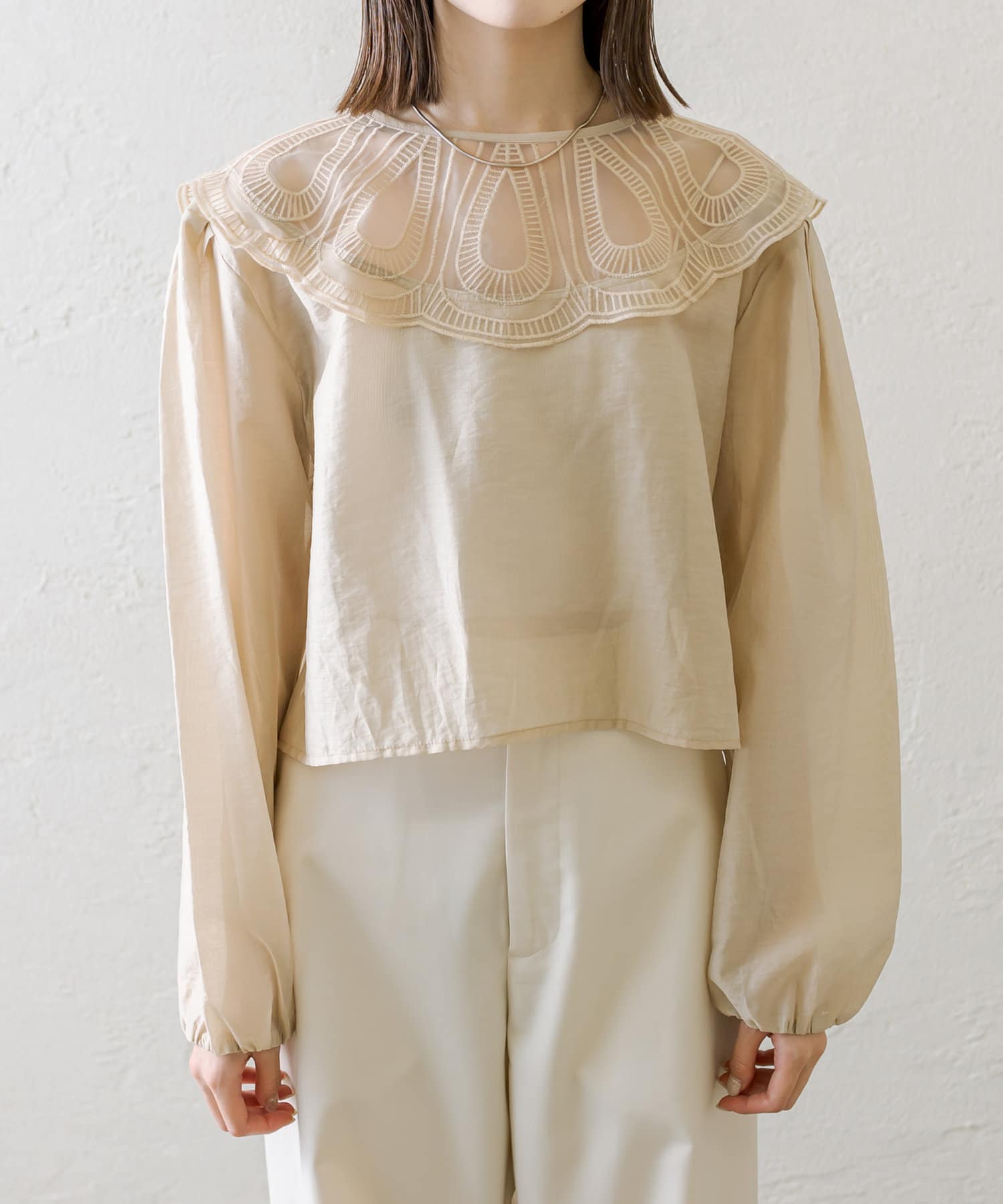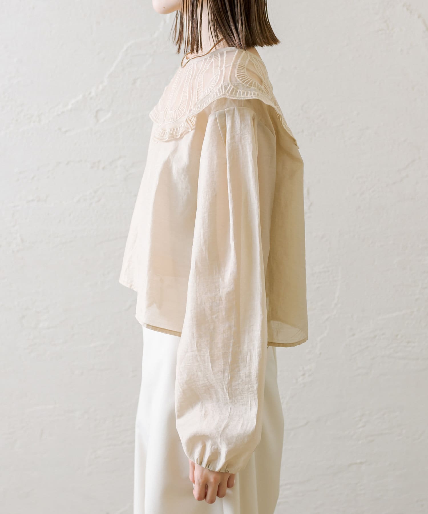mystic(ミスティック) 【3色展開】レース衿ショートシャツ