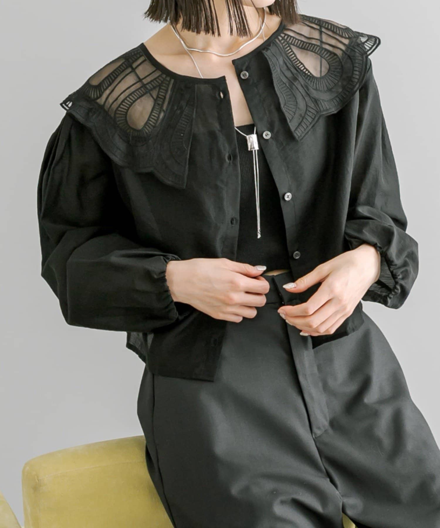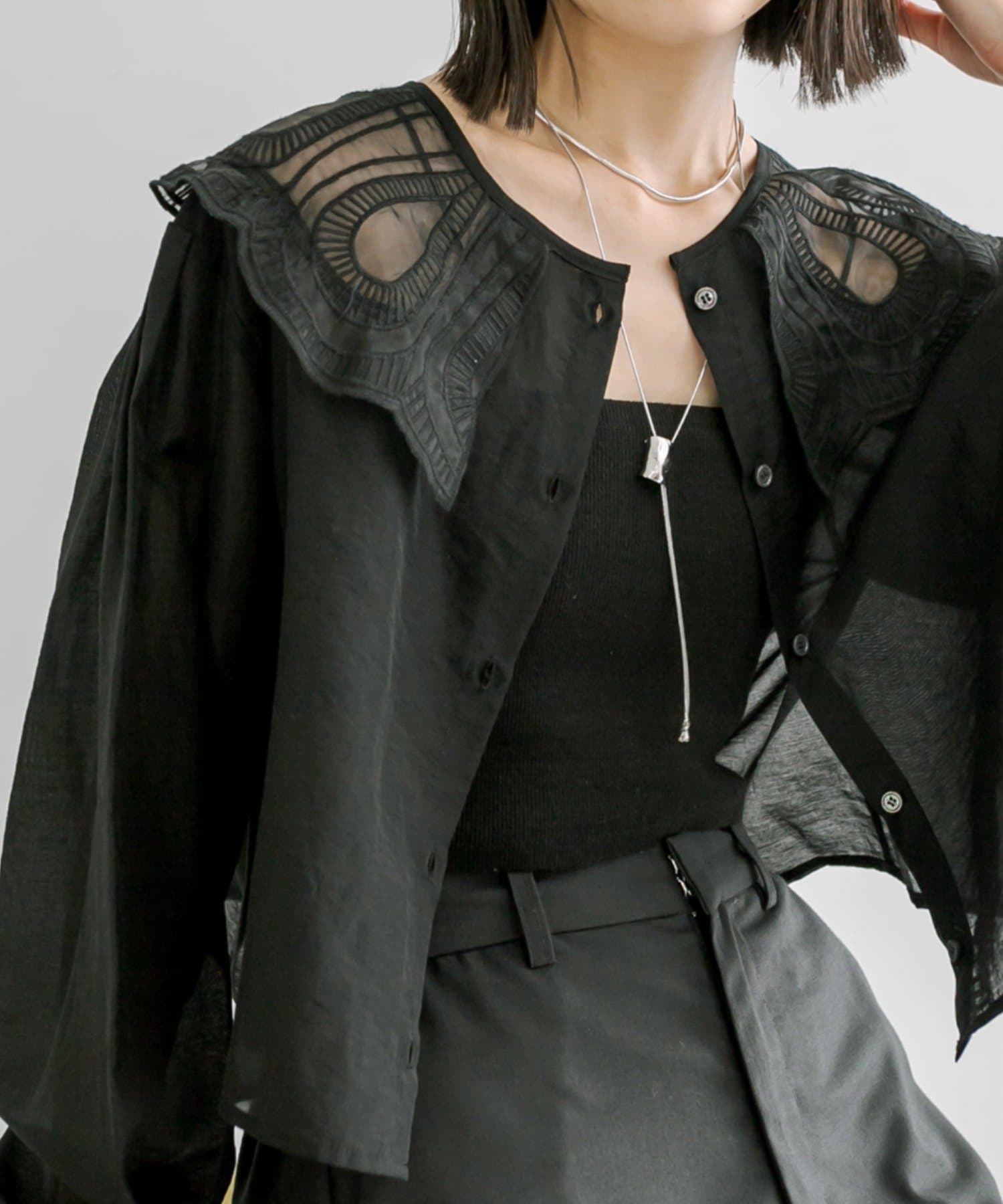 • mystic(ミスティック) 【3色展開】レース衿ショートシャツ