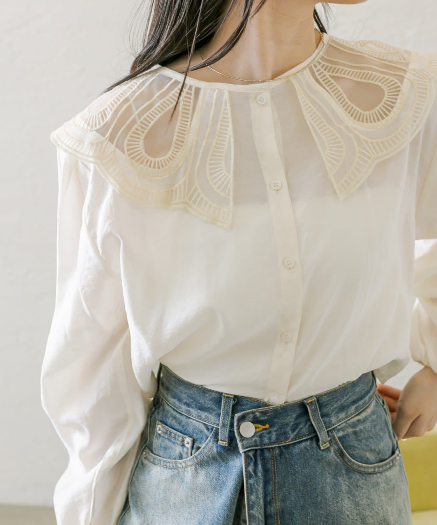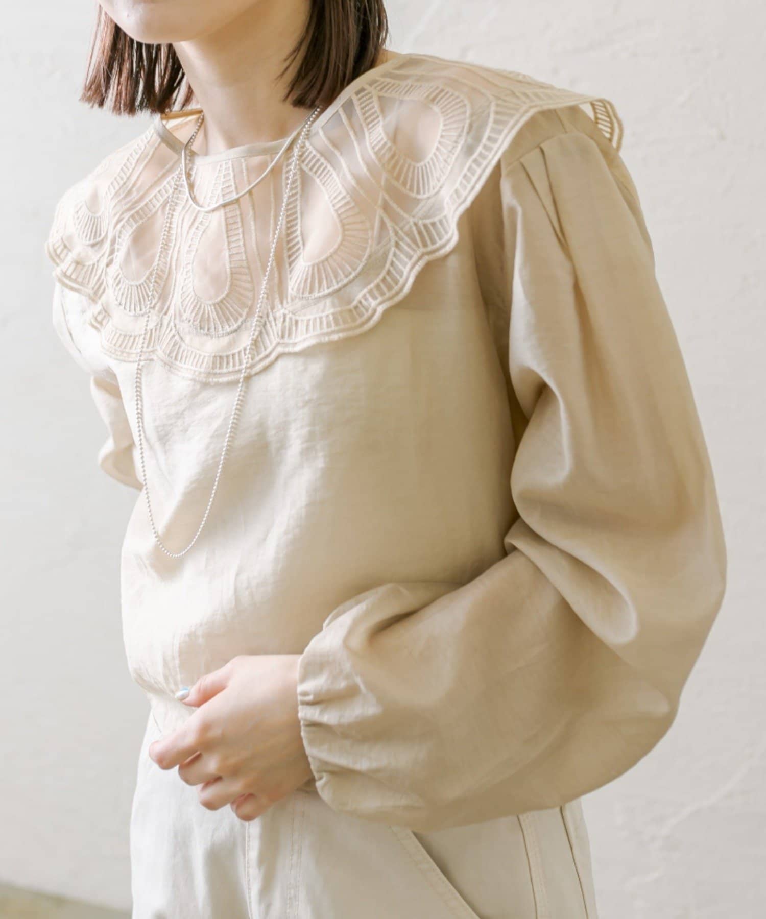 ・ボリューム感のある袖口と肩のギャザーの女性らしいディテール◎