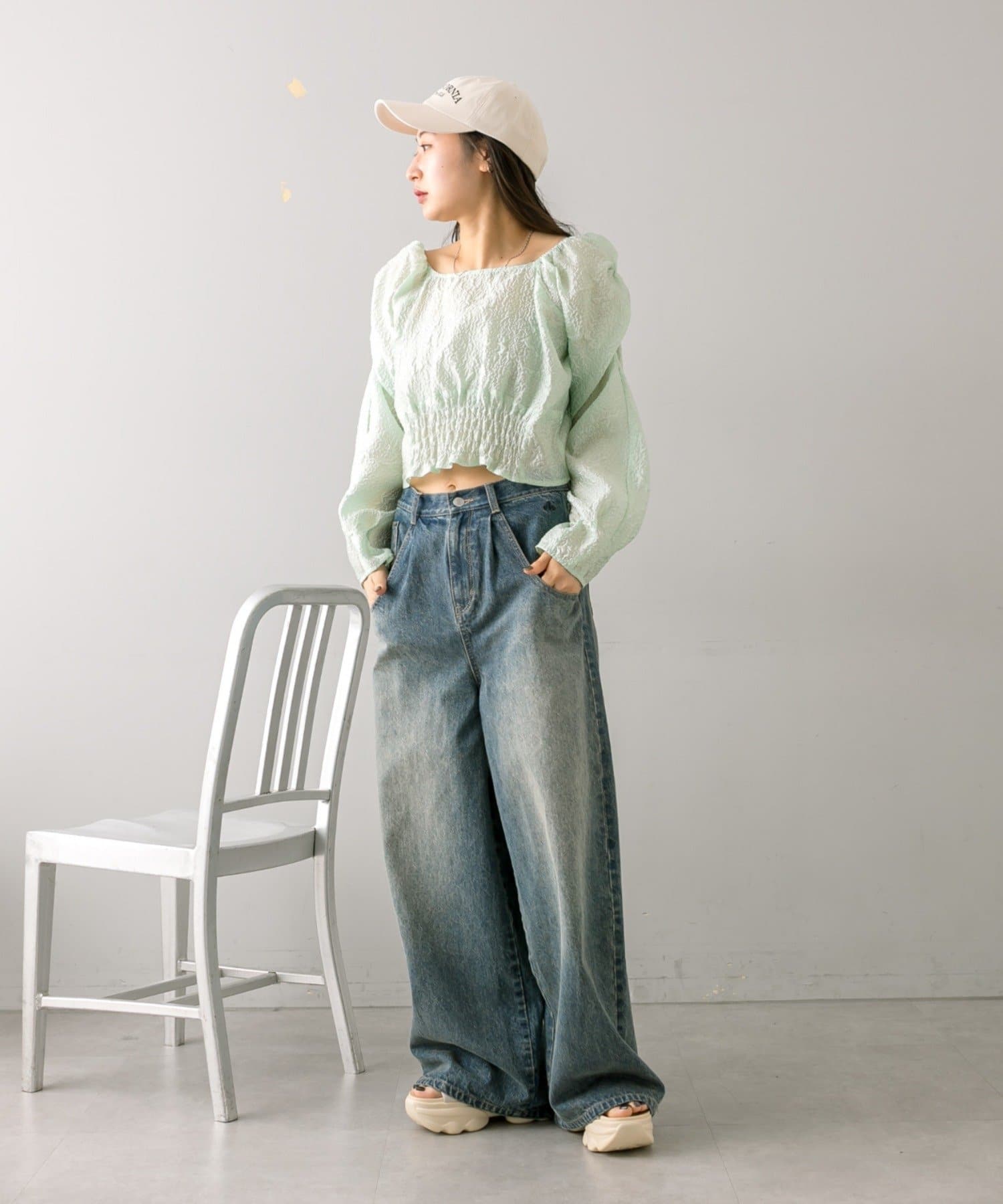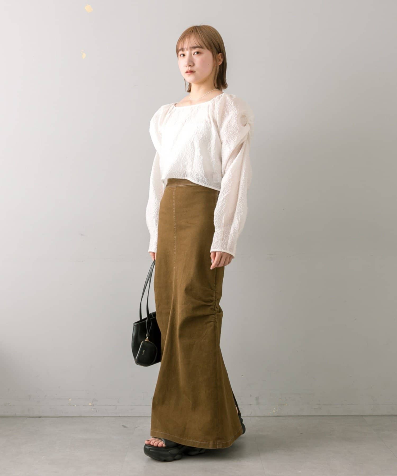 ・肩のボリューム感が女性らしさもプラスしてくれるブラウス。