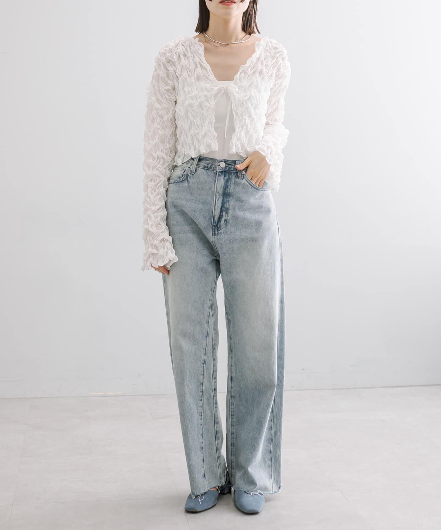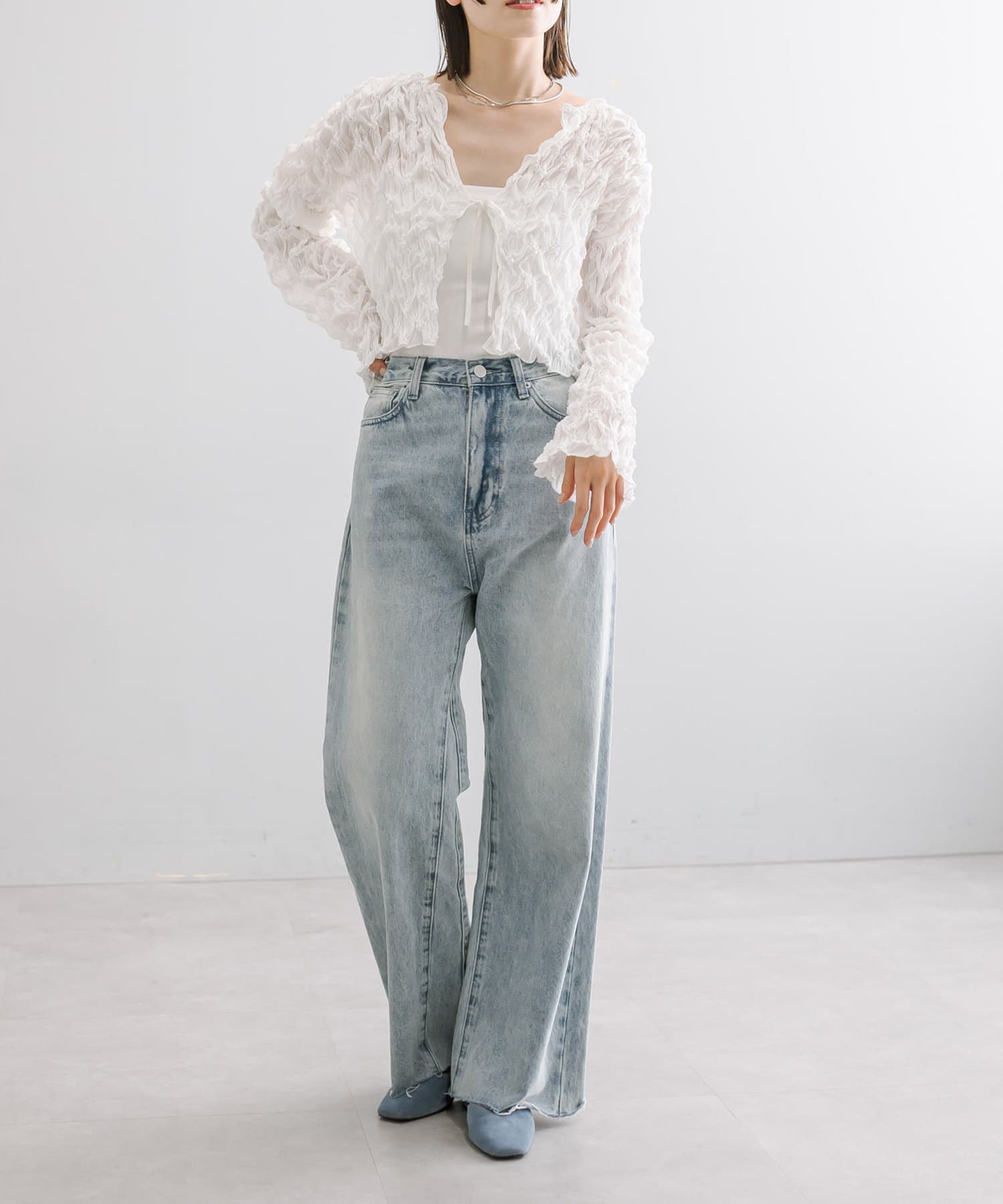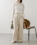 ・デニムはもちろん、パンツスタイルでも女性らしく決まる一枚です。