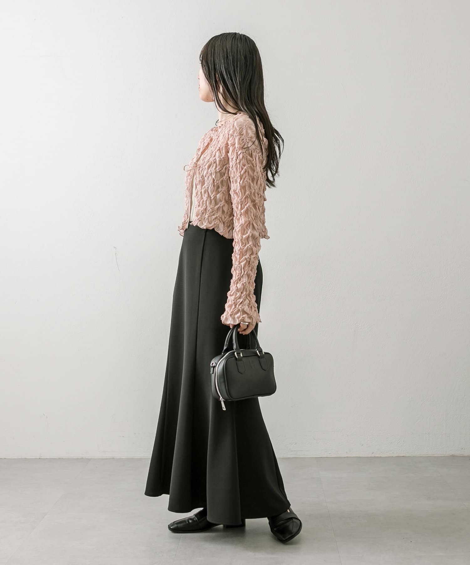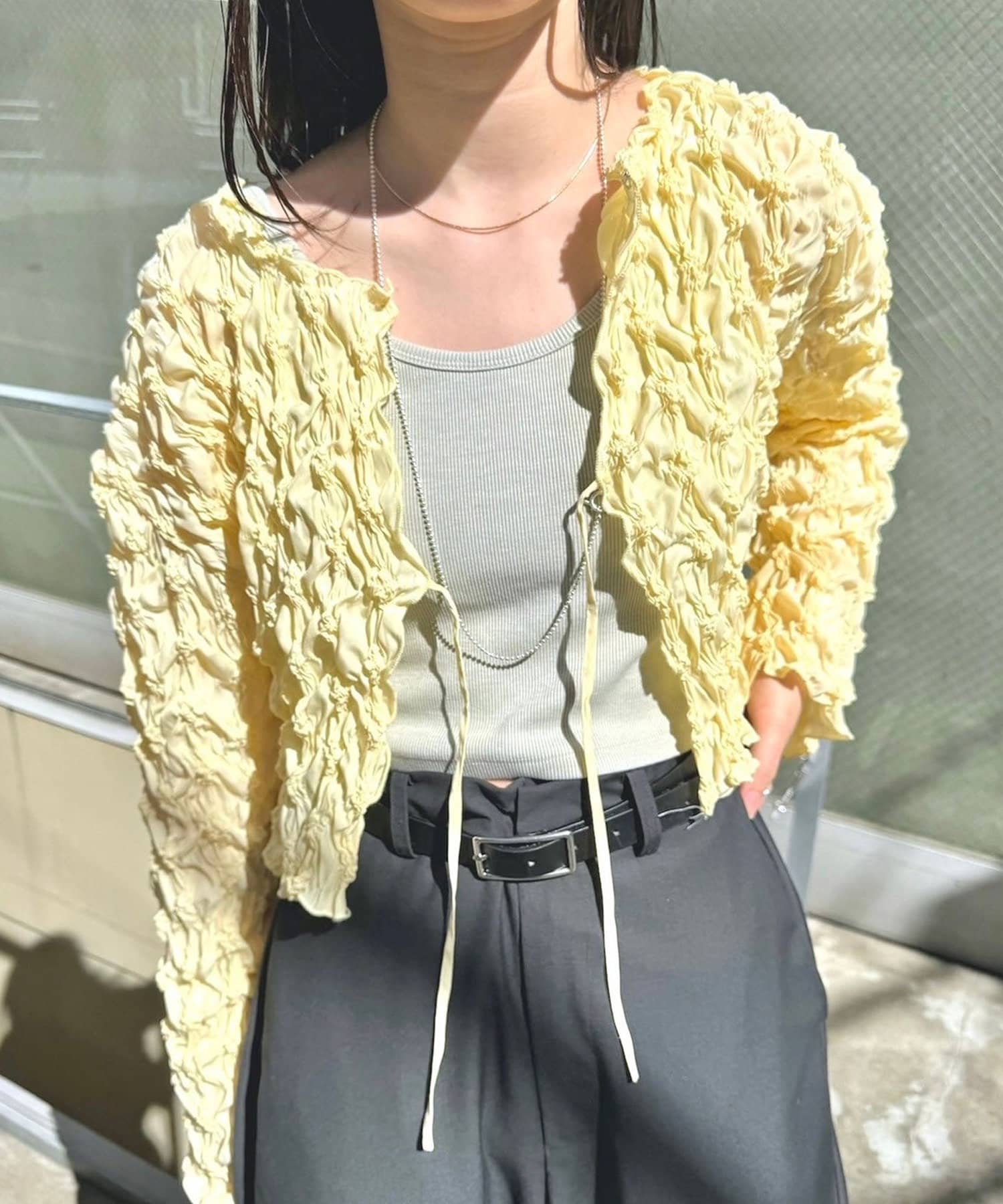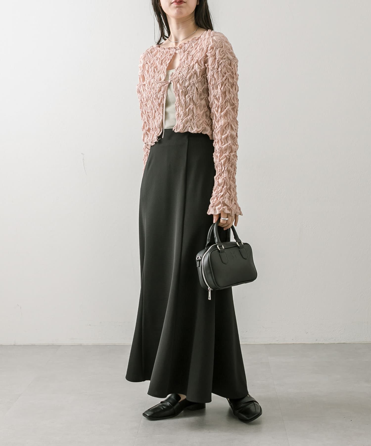 ・表面感のある素材で一枚で印象的なスタイリングに見せてくれます。