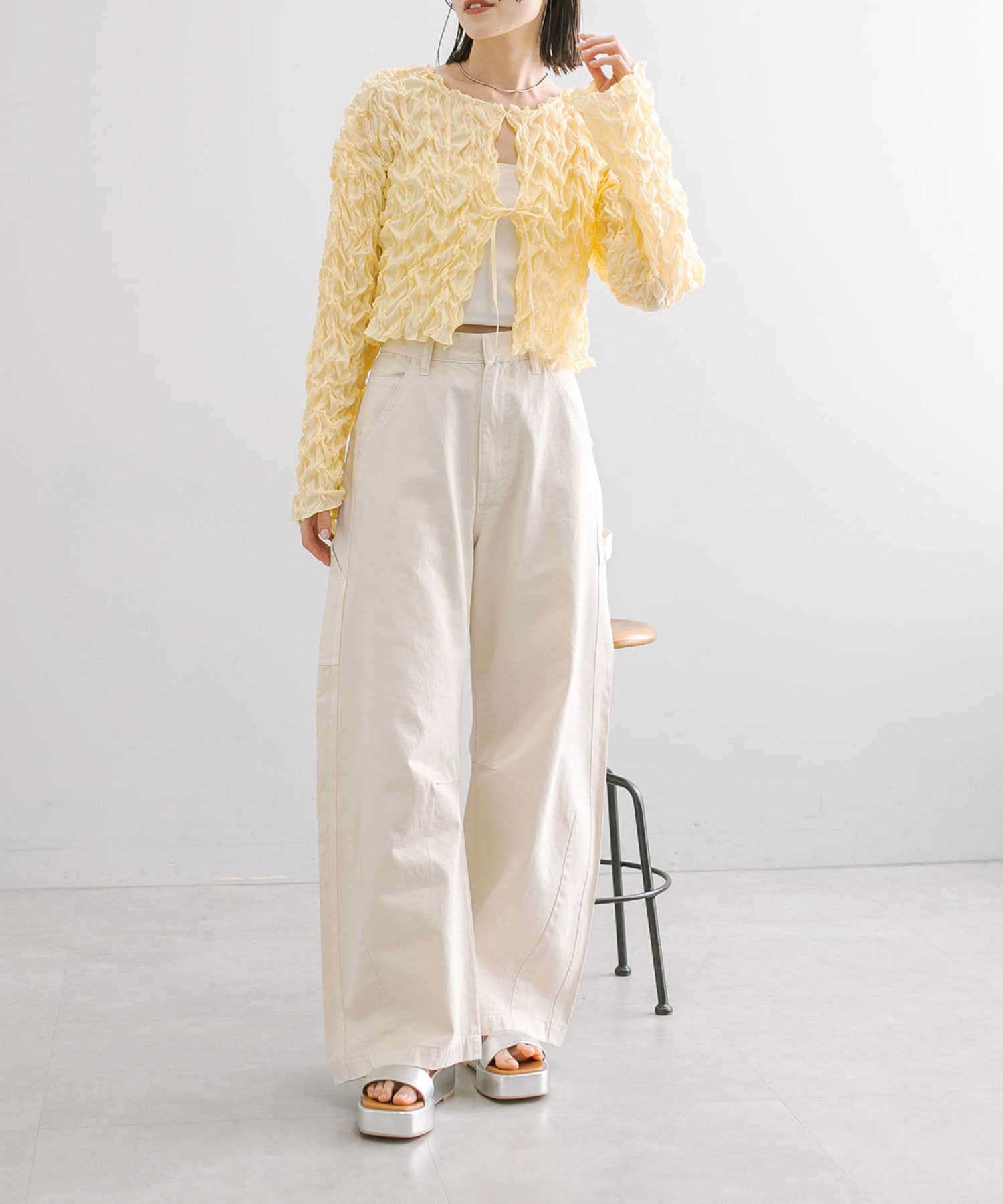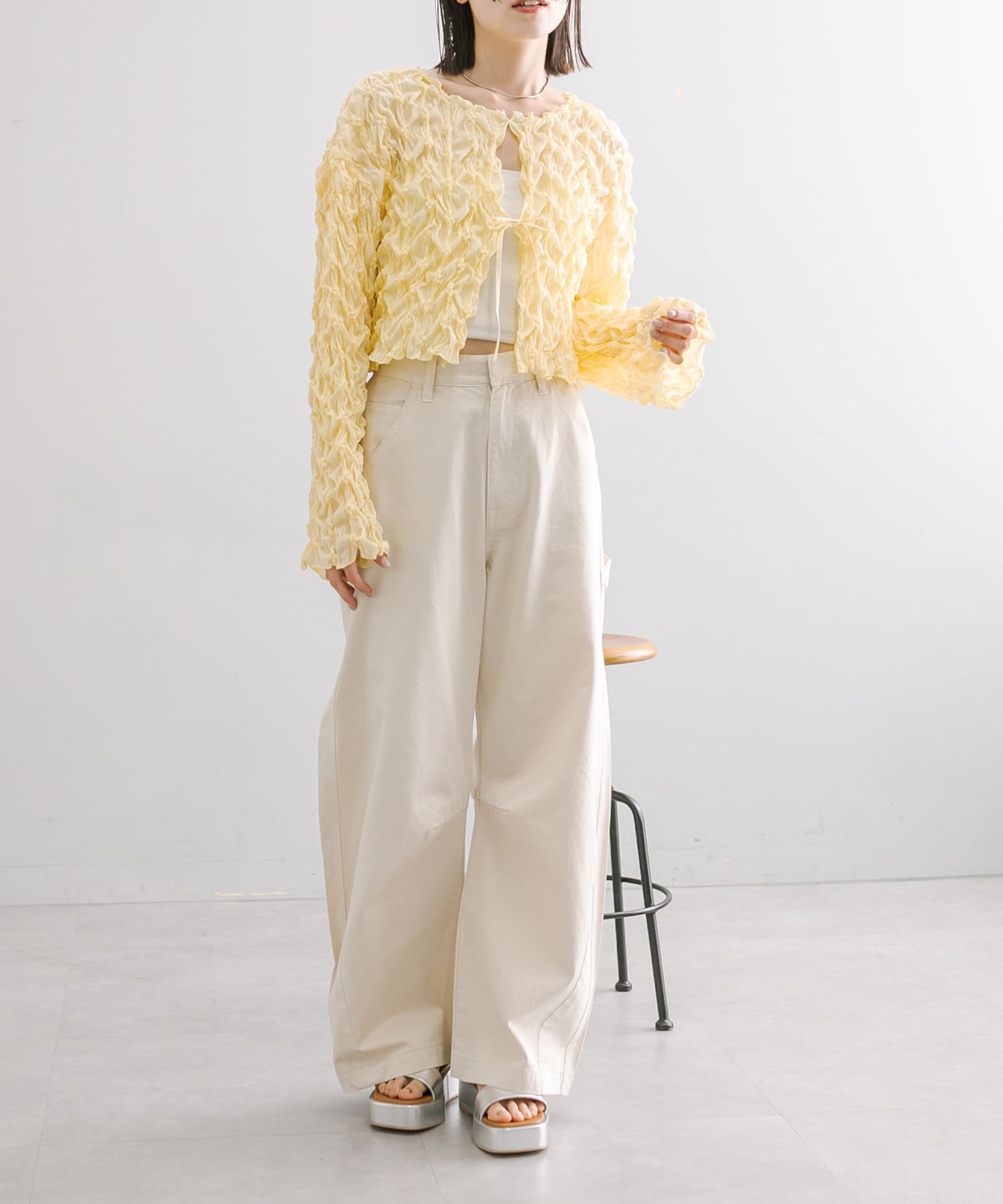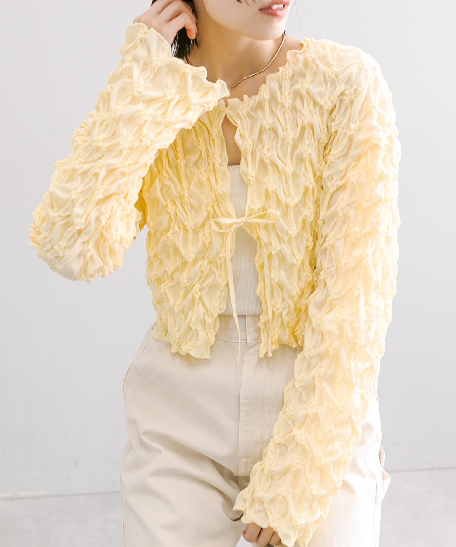 ・表面感のある素材で一枚で印象的なスタイリングに見せてくれます。