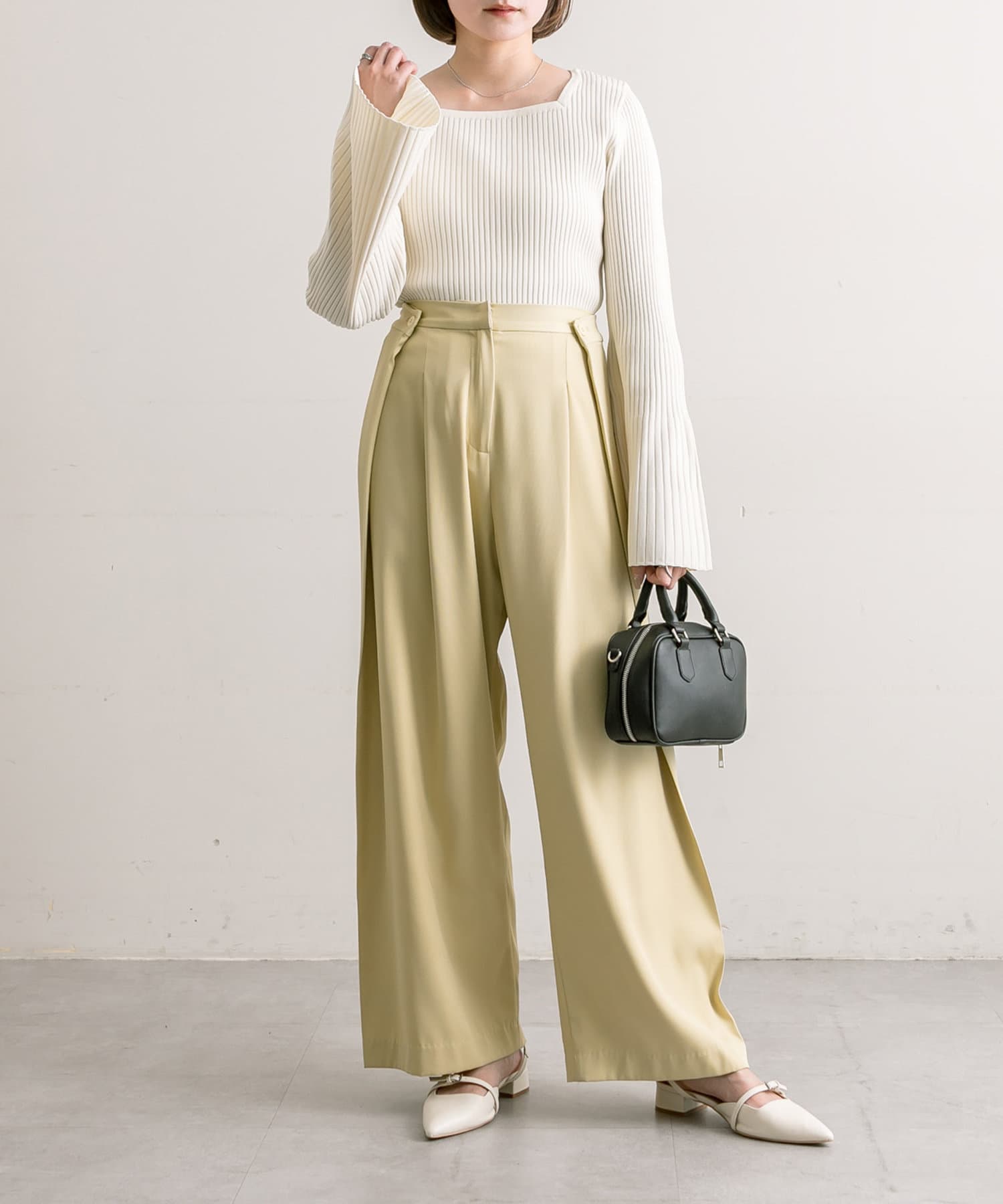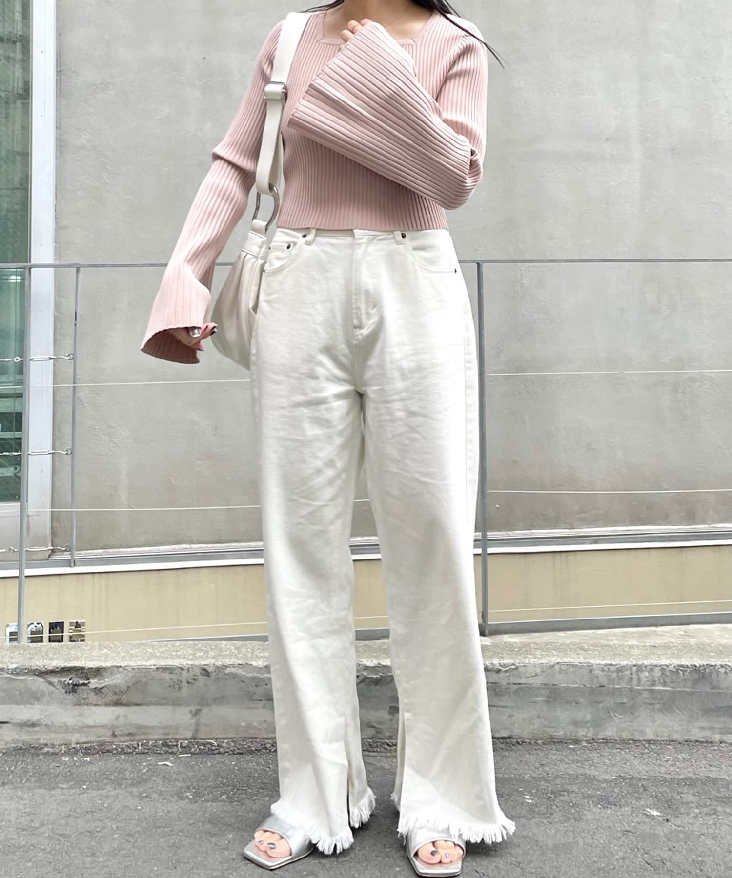 ・シンプルなデザインなので、フリルビスチェなどプラスワンでトレンドライクなスタイリングに◎