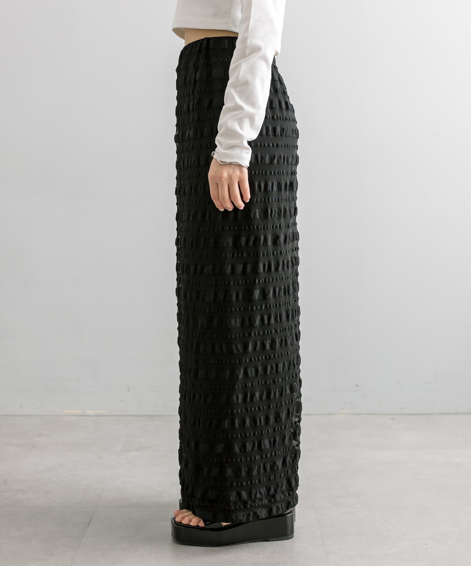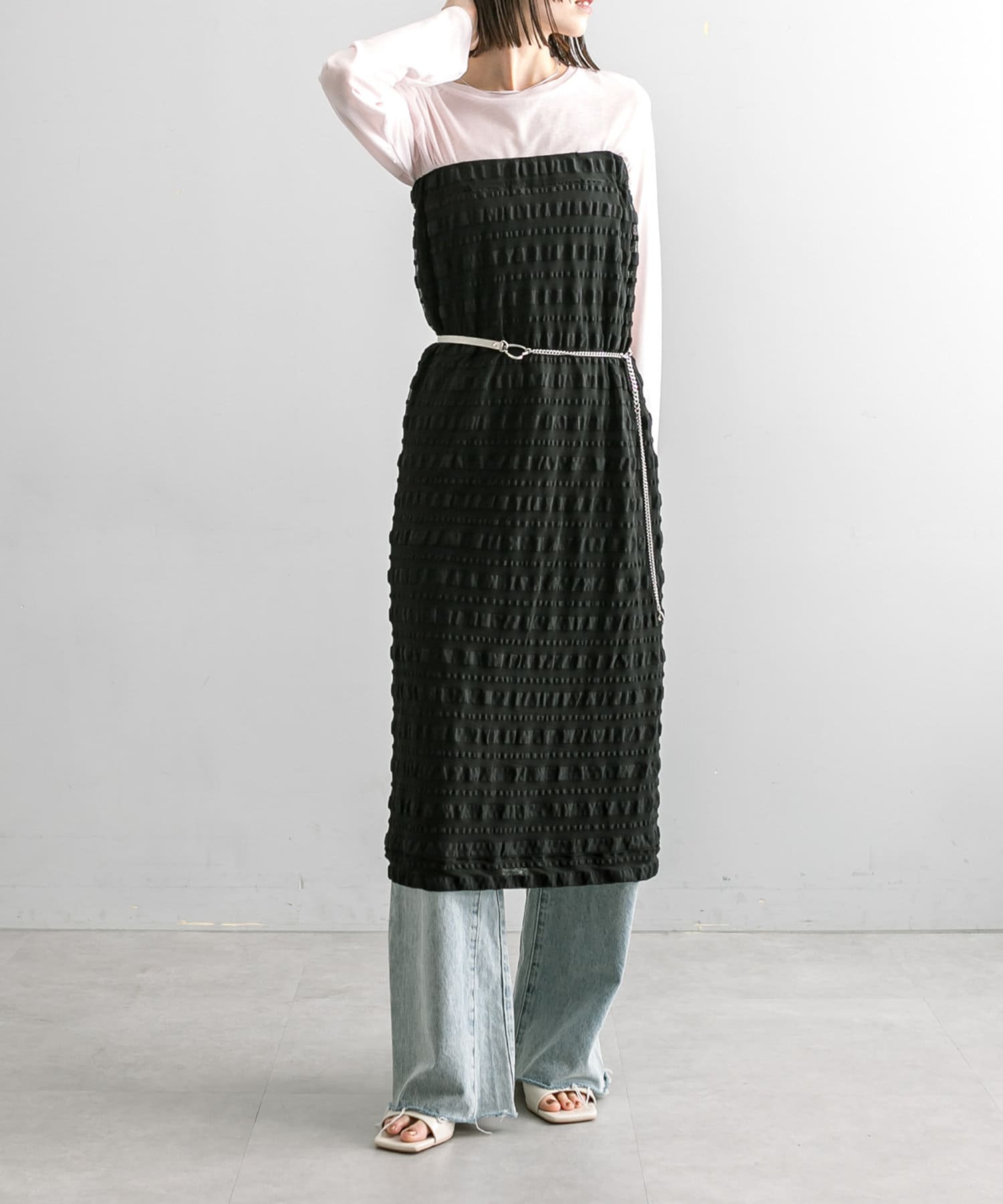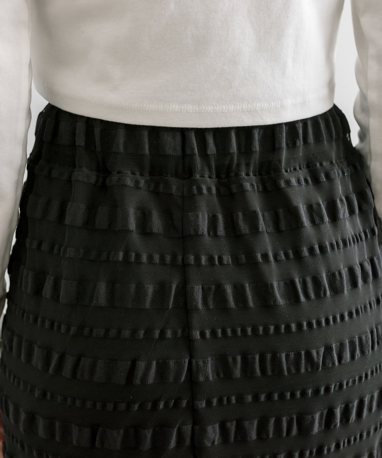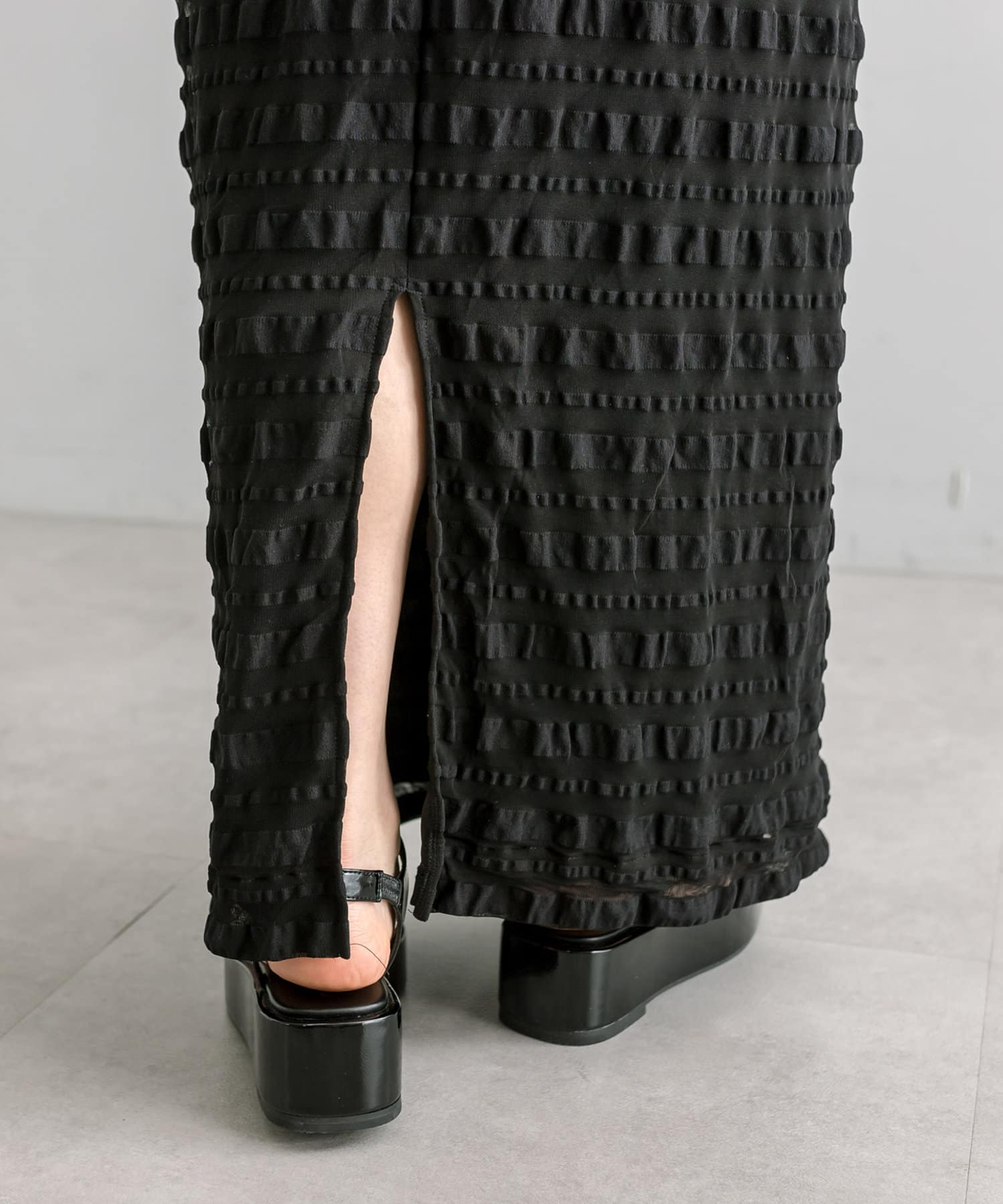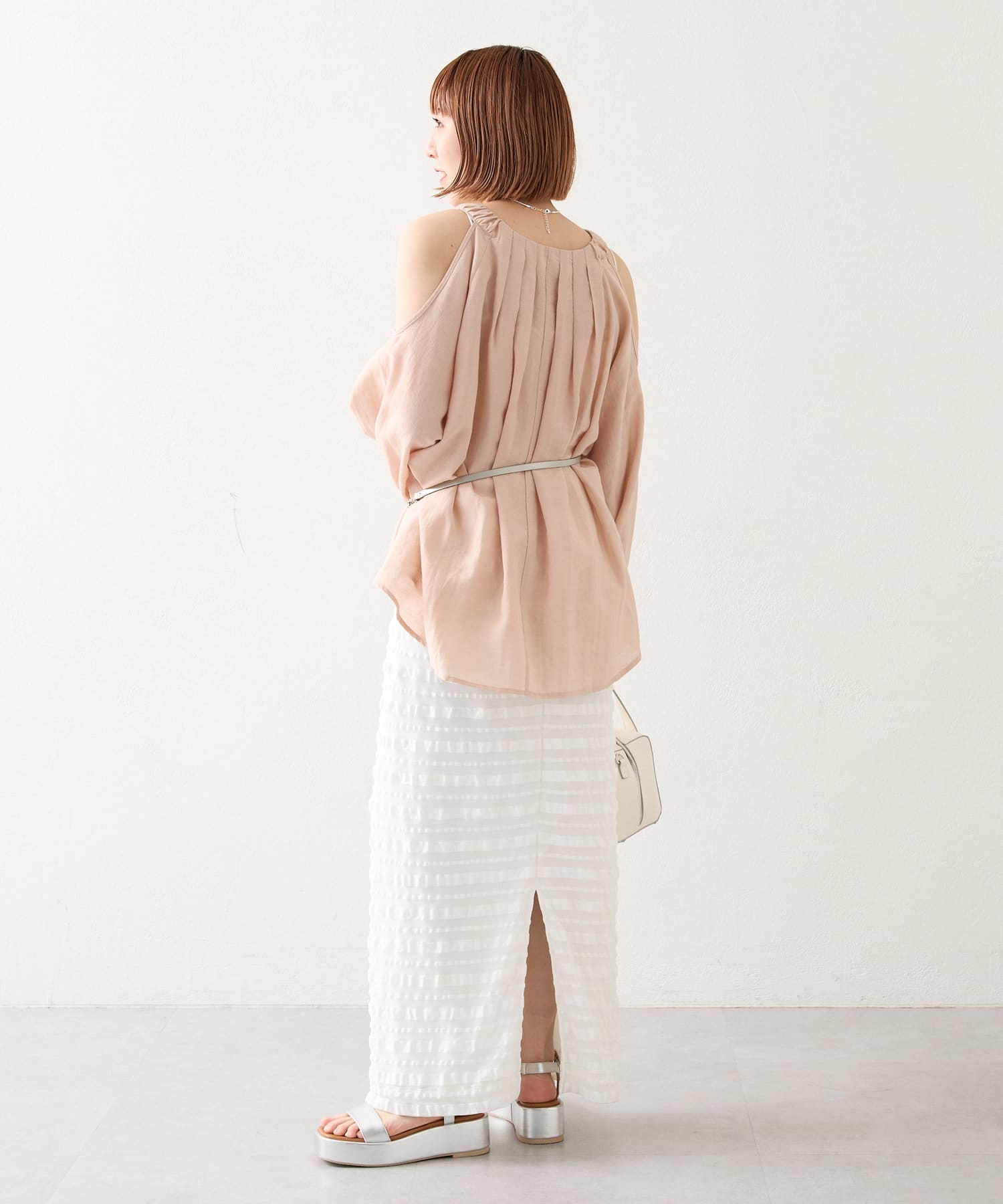シアー素材が抜け感のあるスタイリングに仕上げてくれるロングスカート。