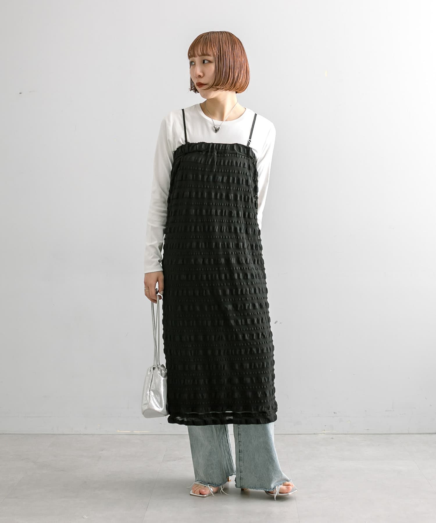 ・透け感のあるプルオーバーとの合わせでさらに抜け感◎