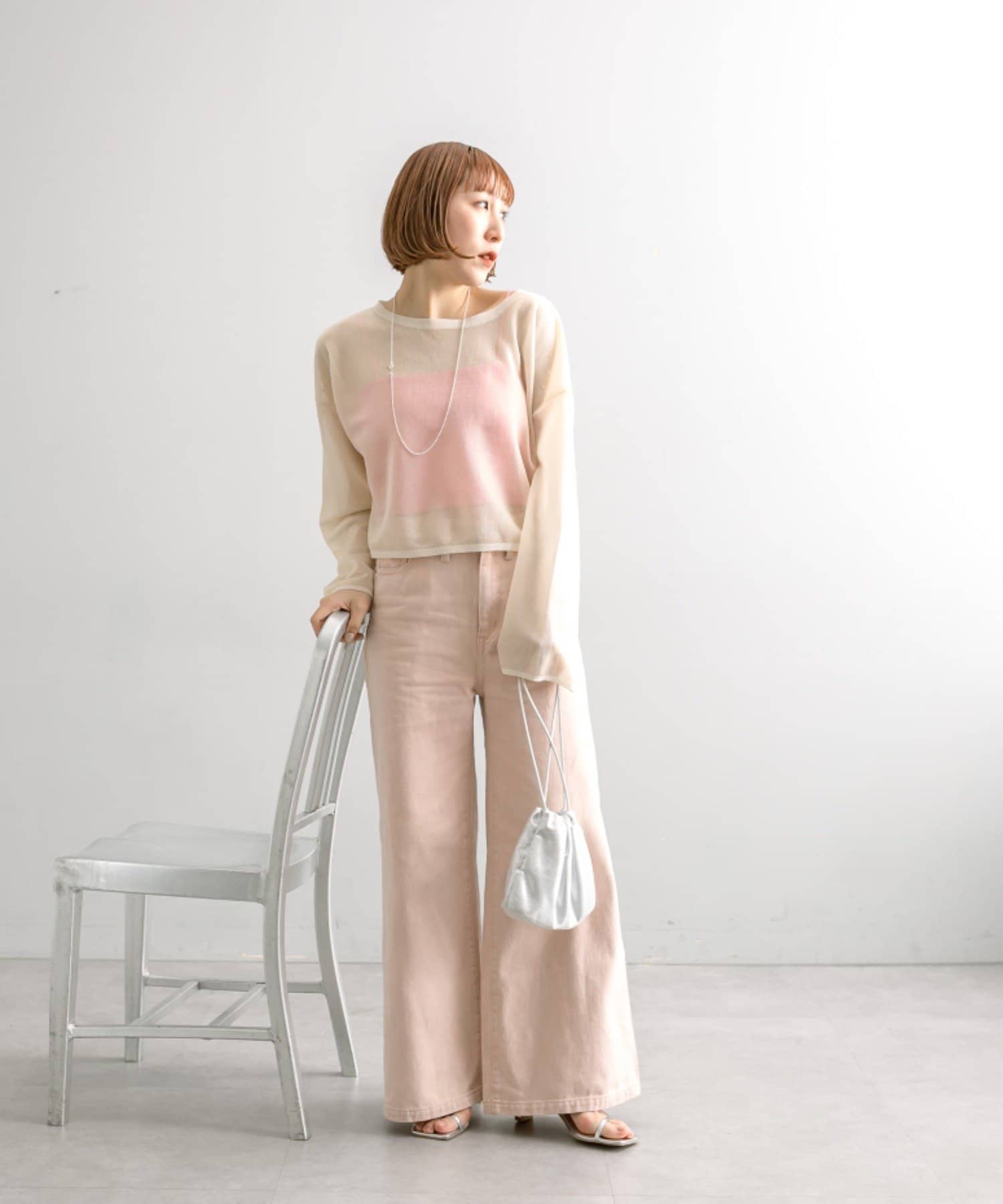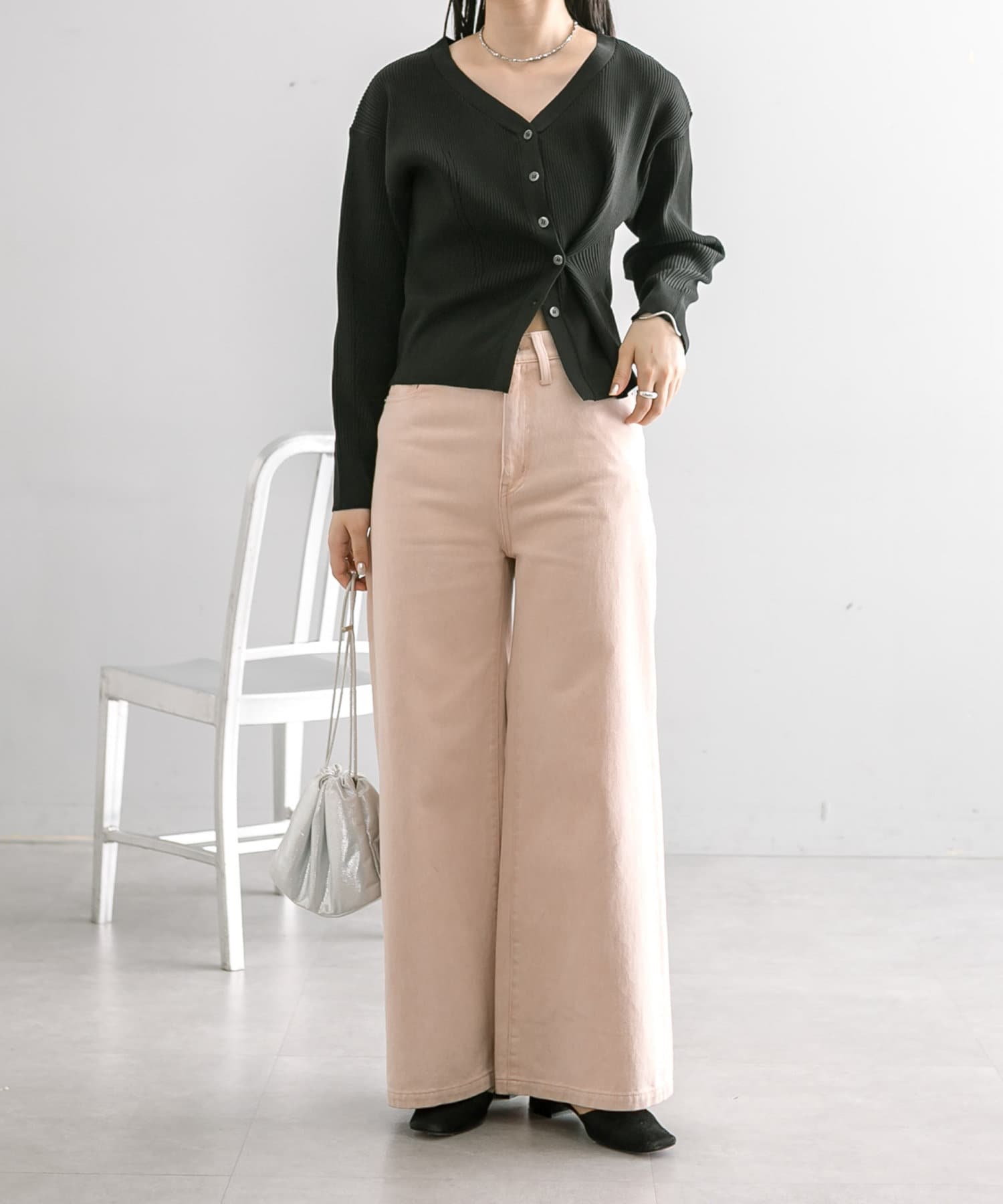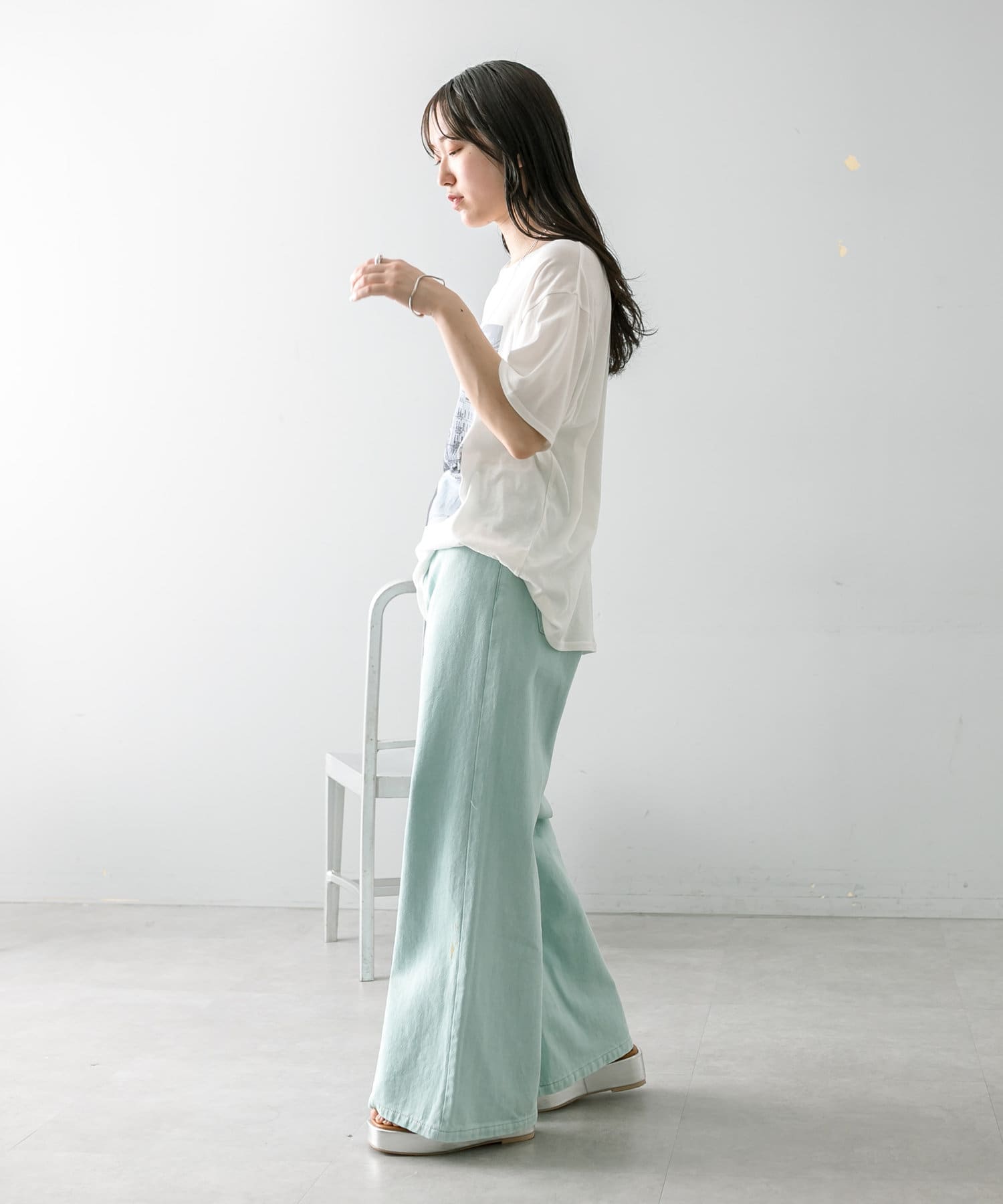 ・ややワイドなシルエットながらストンと落ちる生地感ですっきりした印象に見せてくれます。