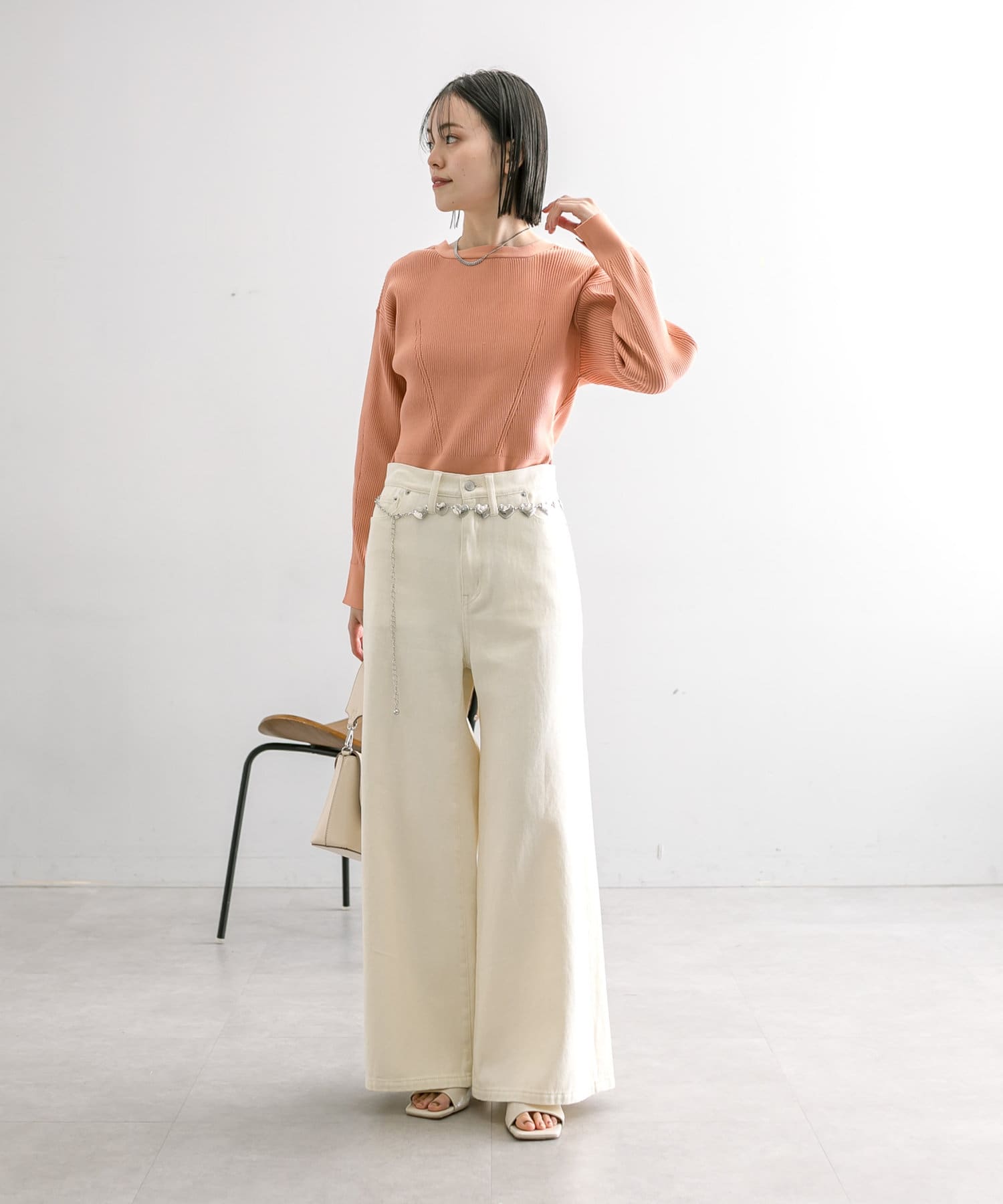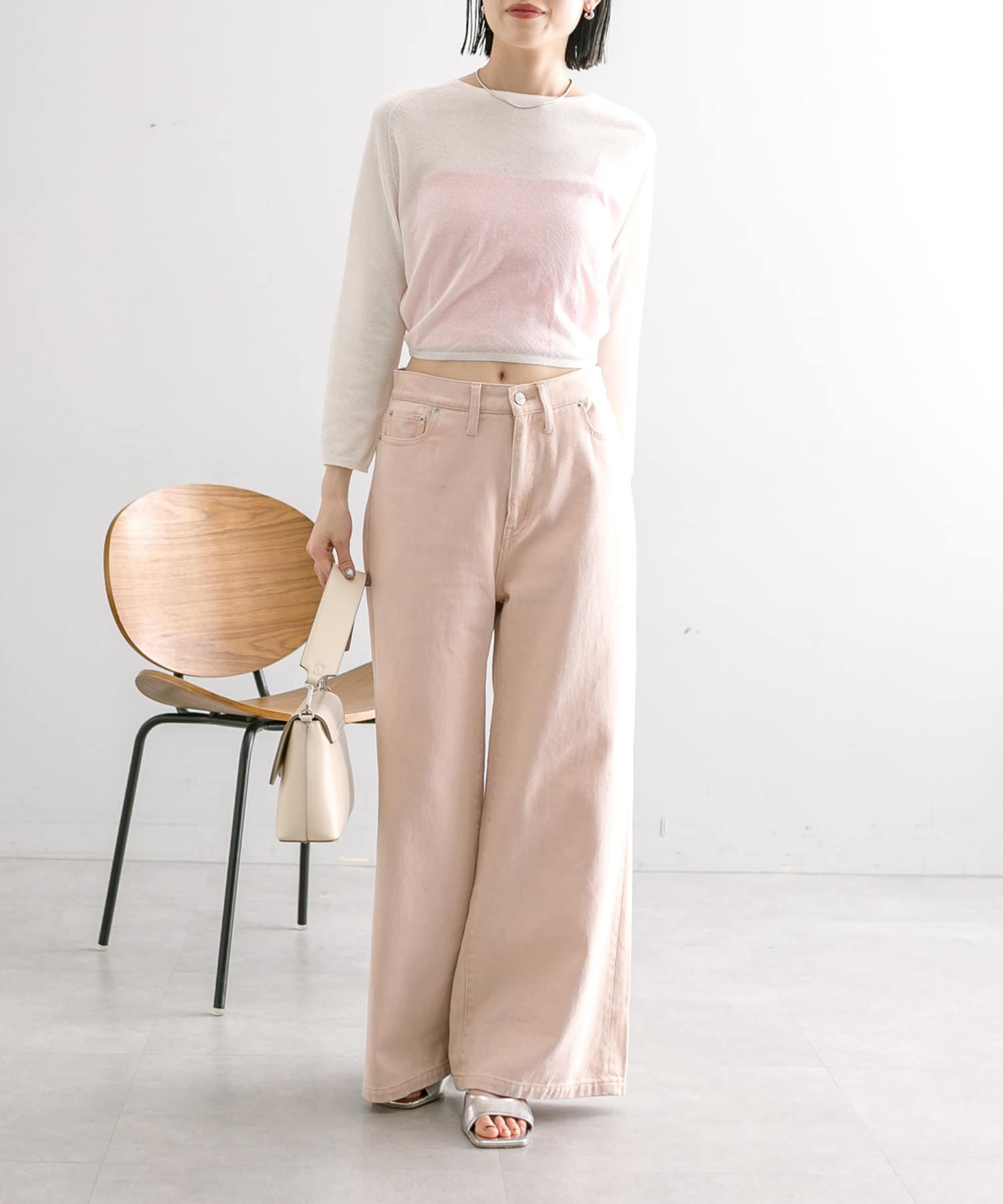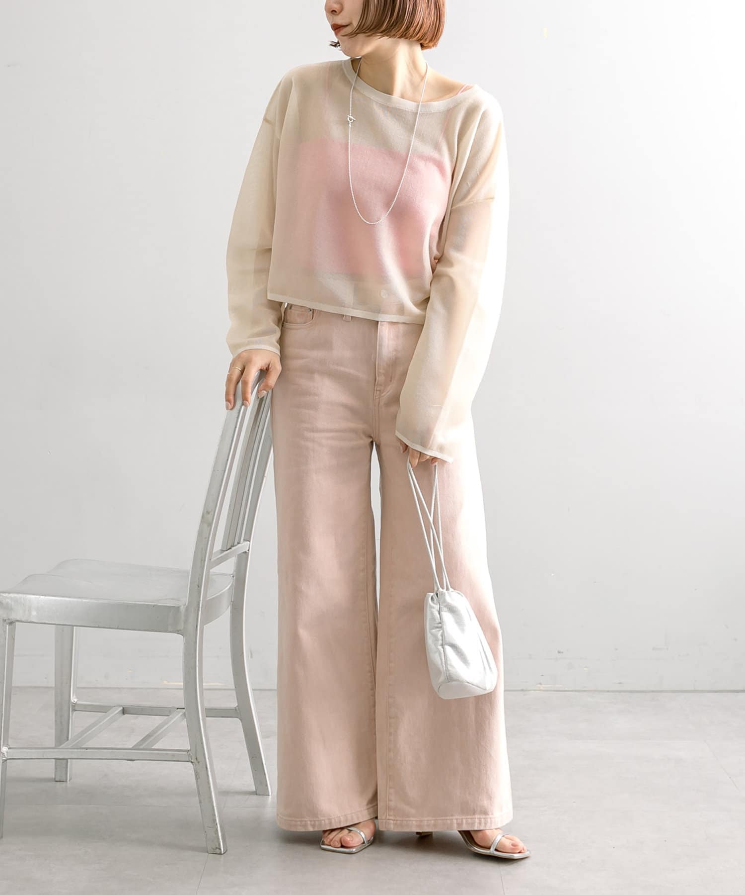 ・ややワイドなシルエットながらストンと落ちる生地感ですっきりした印象に見せてくれます。