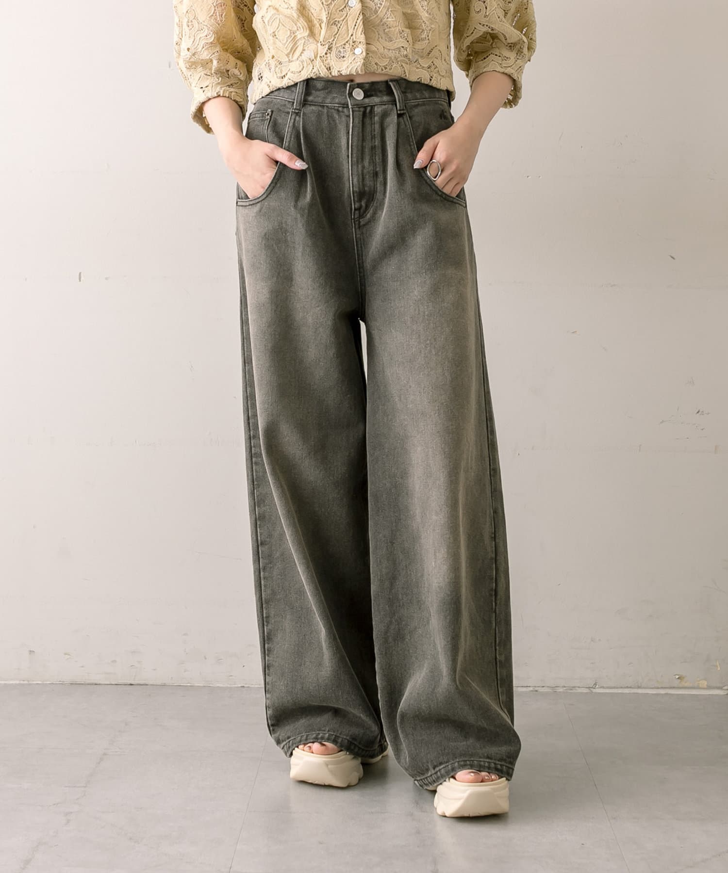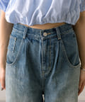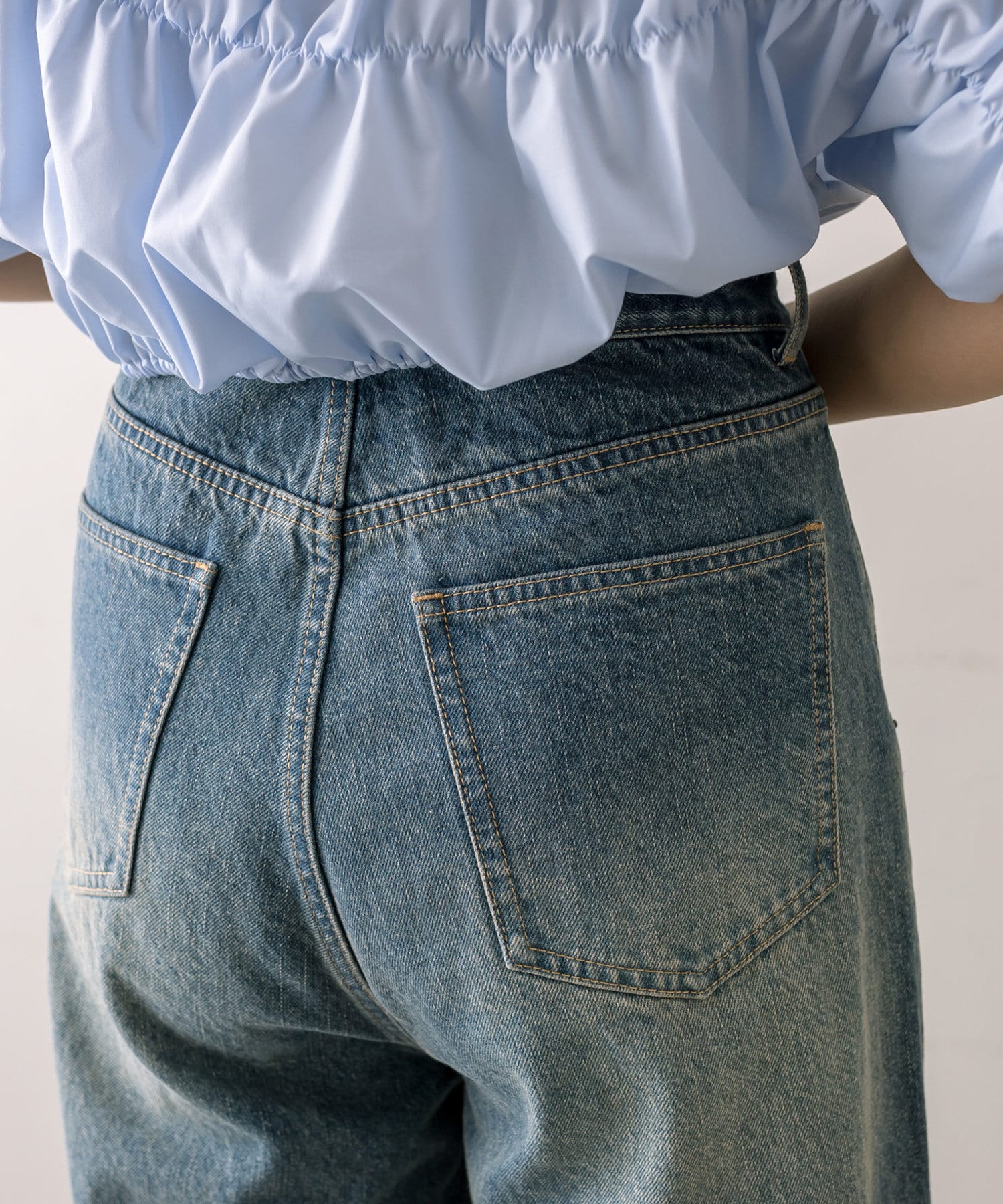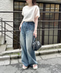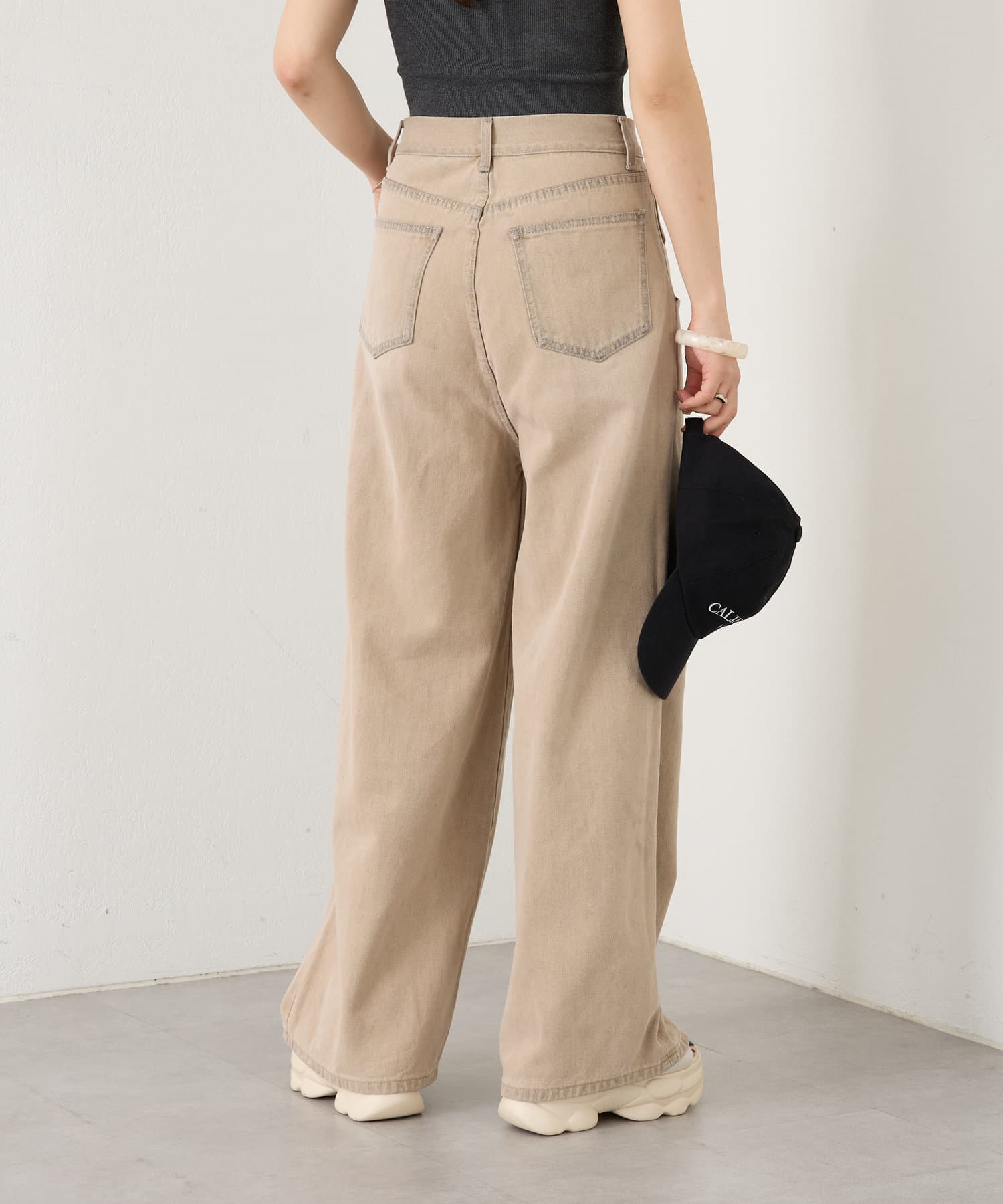 ・ハイウエストなので短丈トップスと合わせても相性良く決まります。