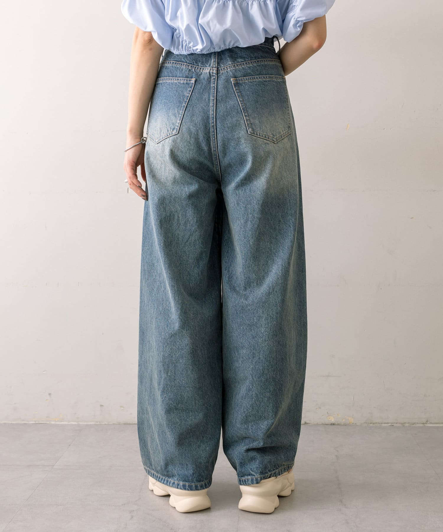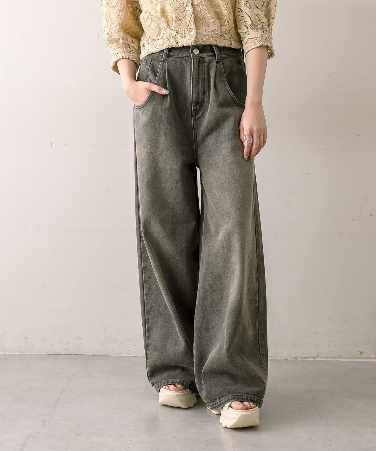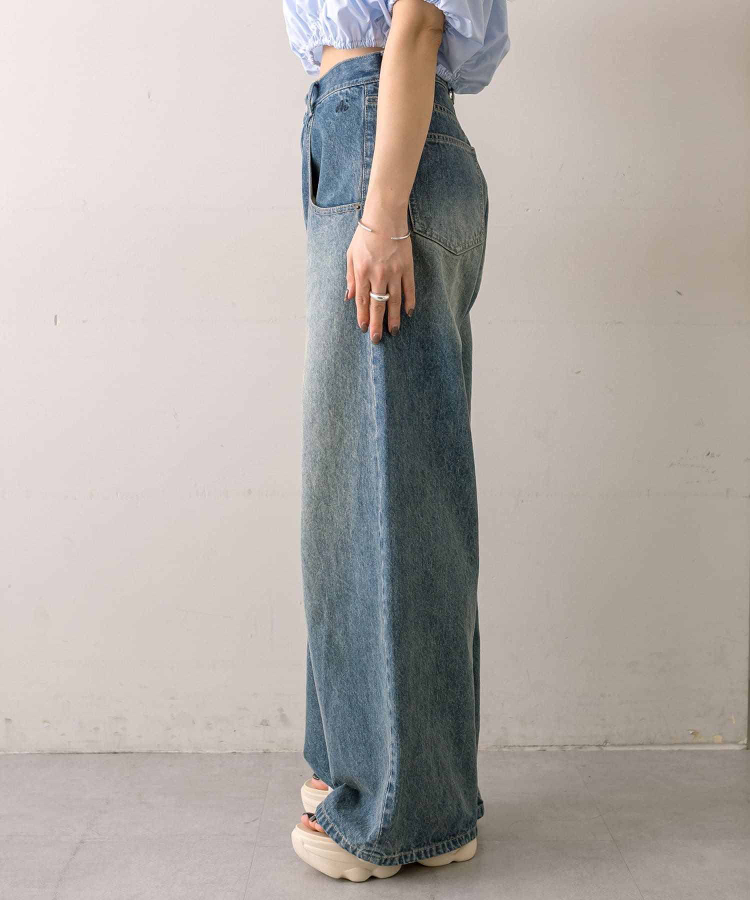 ・ハイウエストなので短丈トップスと合わせても相性良く決まります。