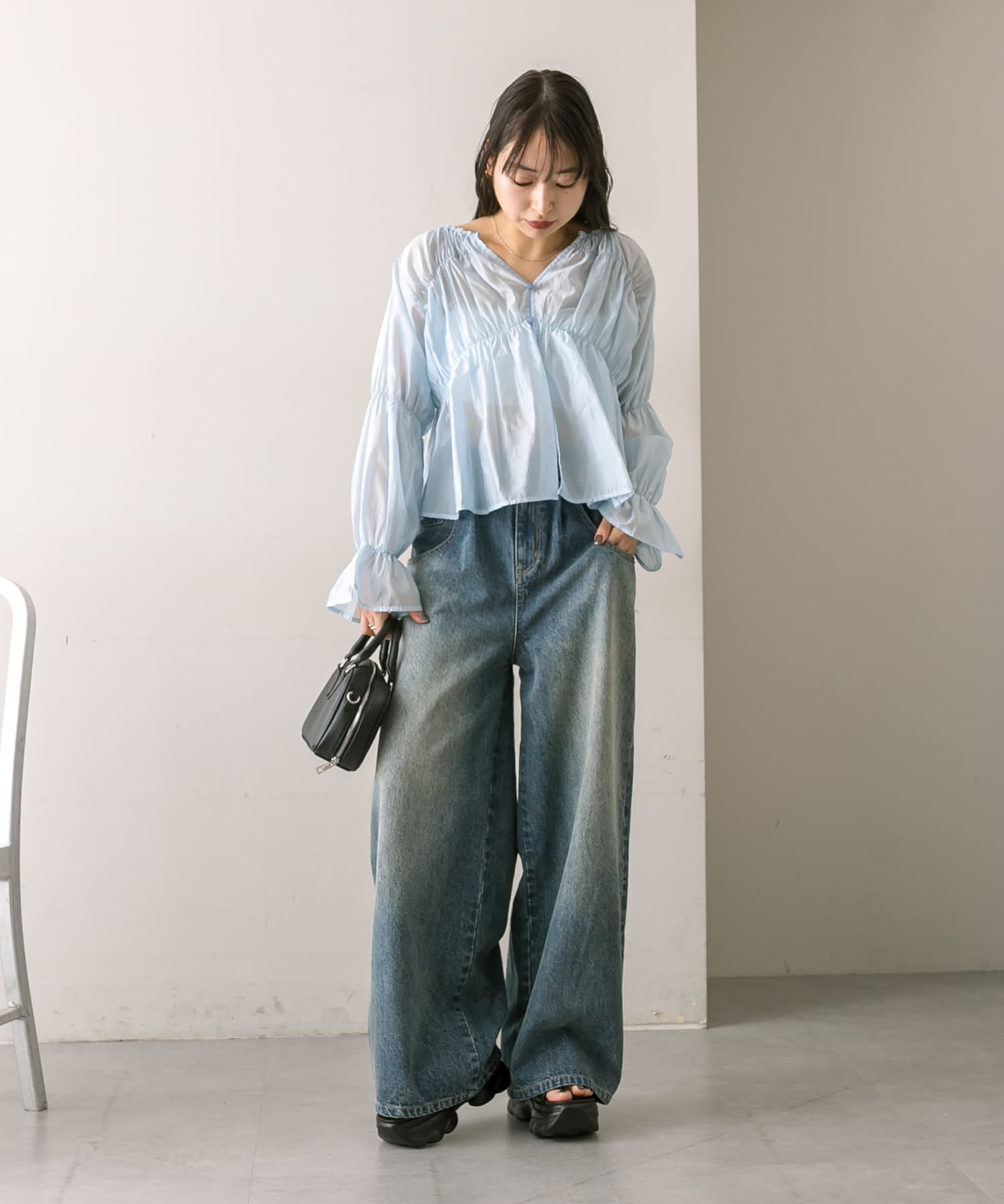 ・オーバーめなトップスと合わせてゆるっとこなれ感あるスタイリングもオススメ◎