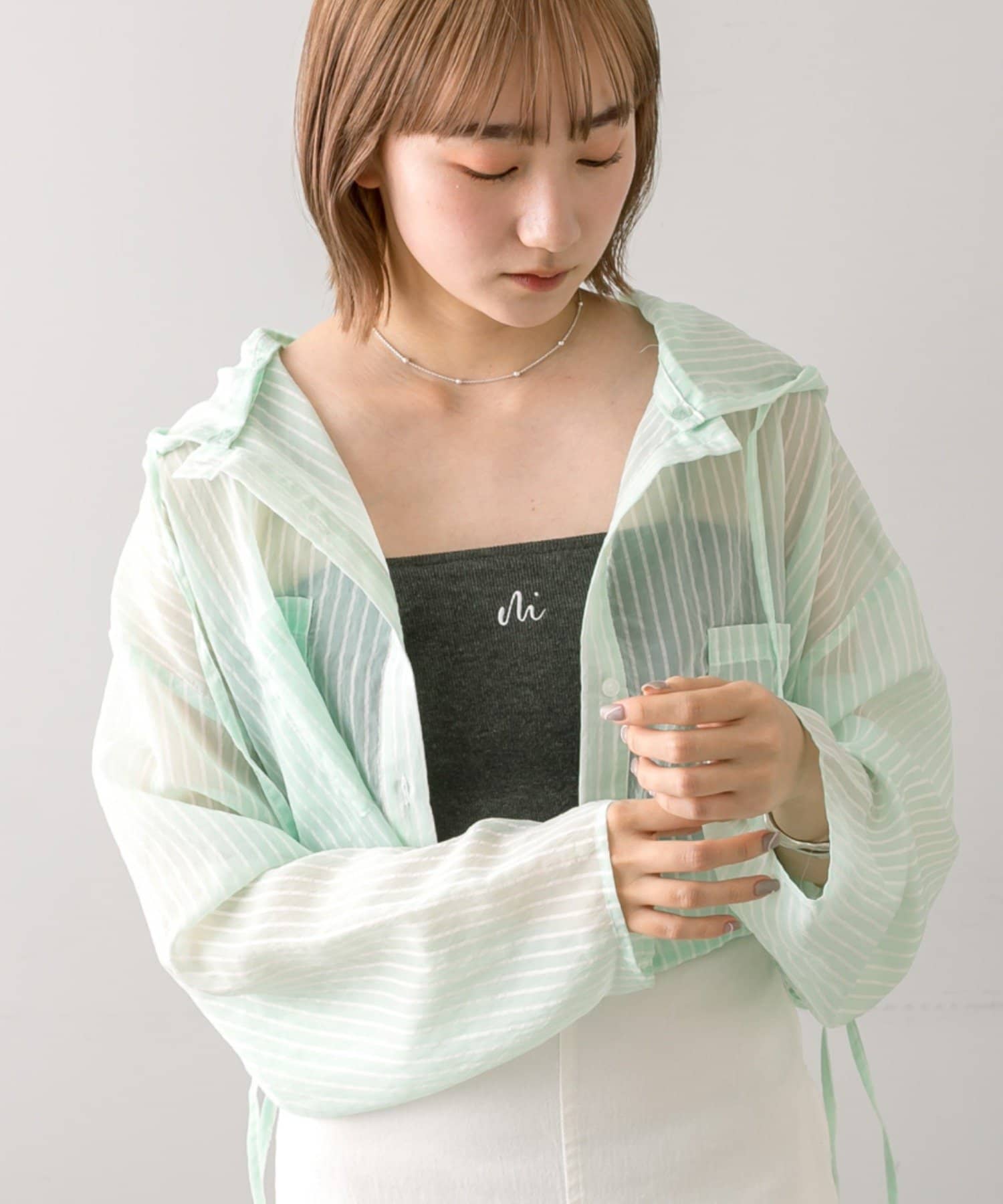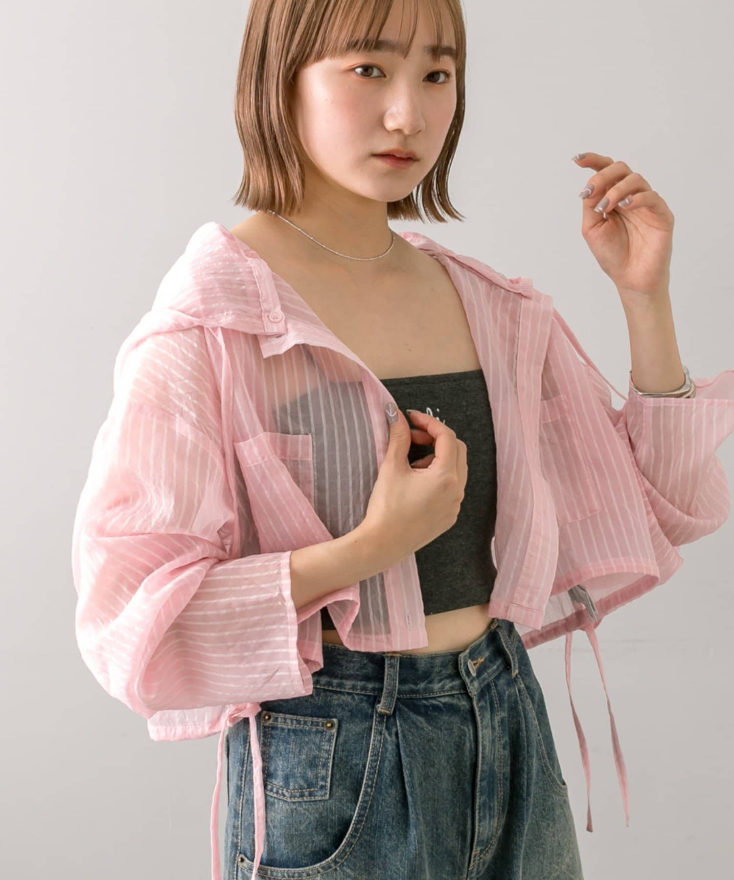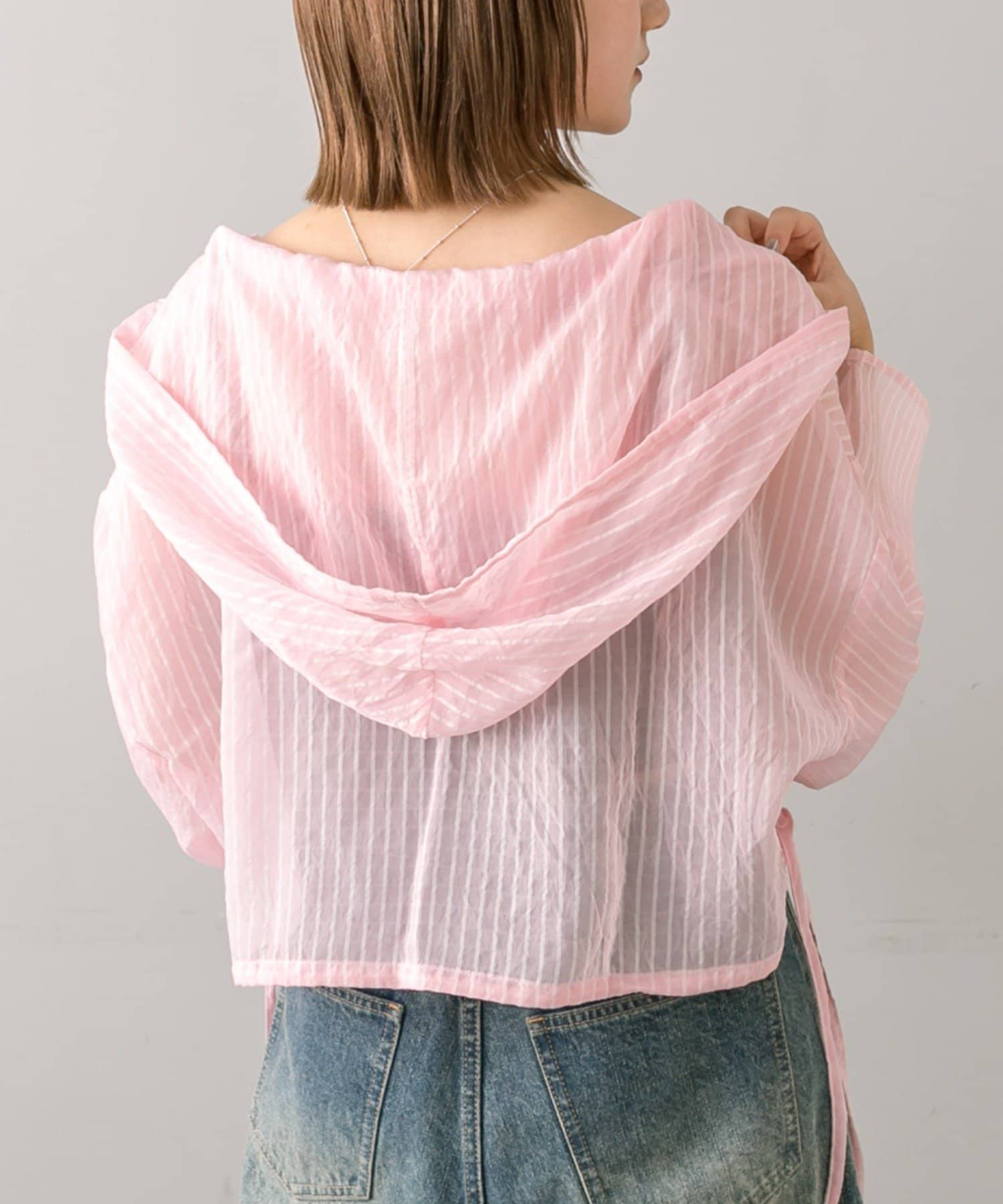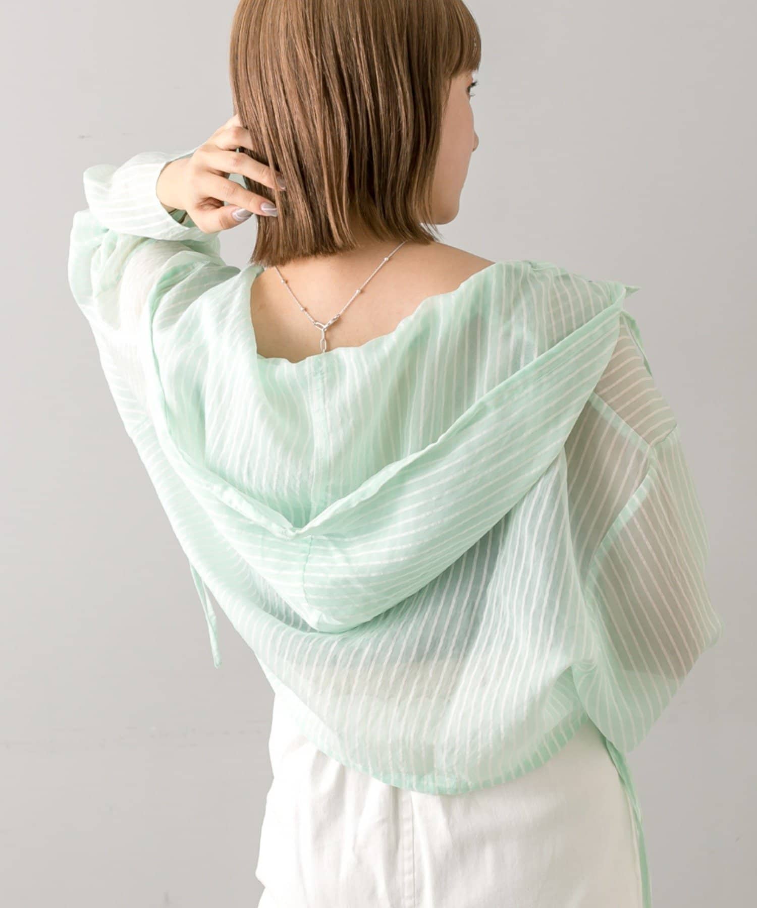 【3色展開】[mline]フード付きシアーストライプシャツ