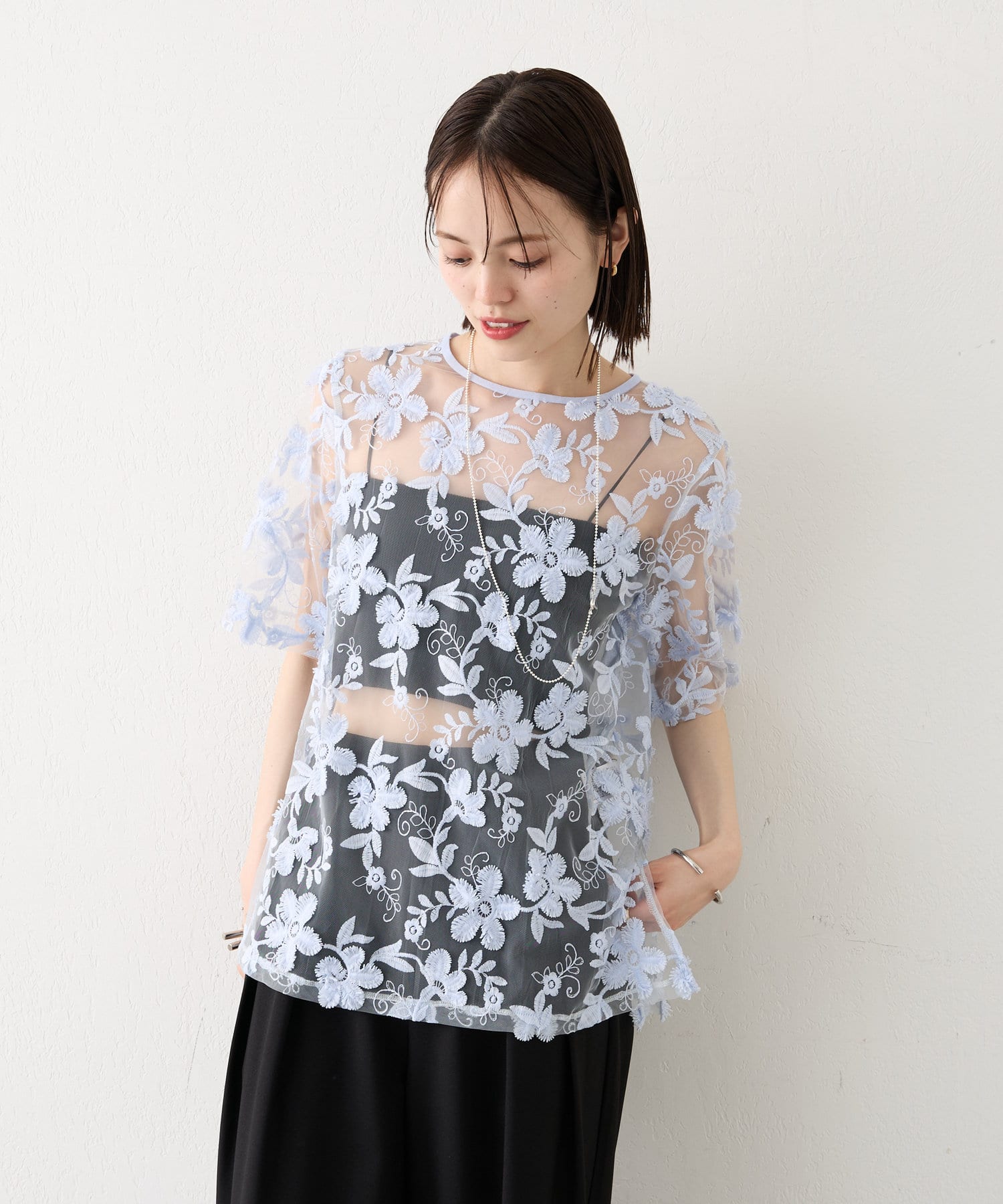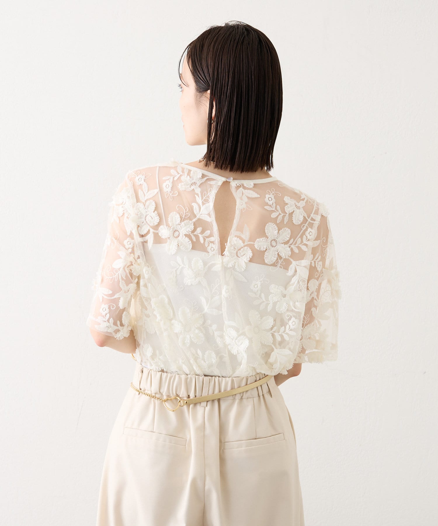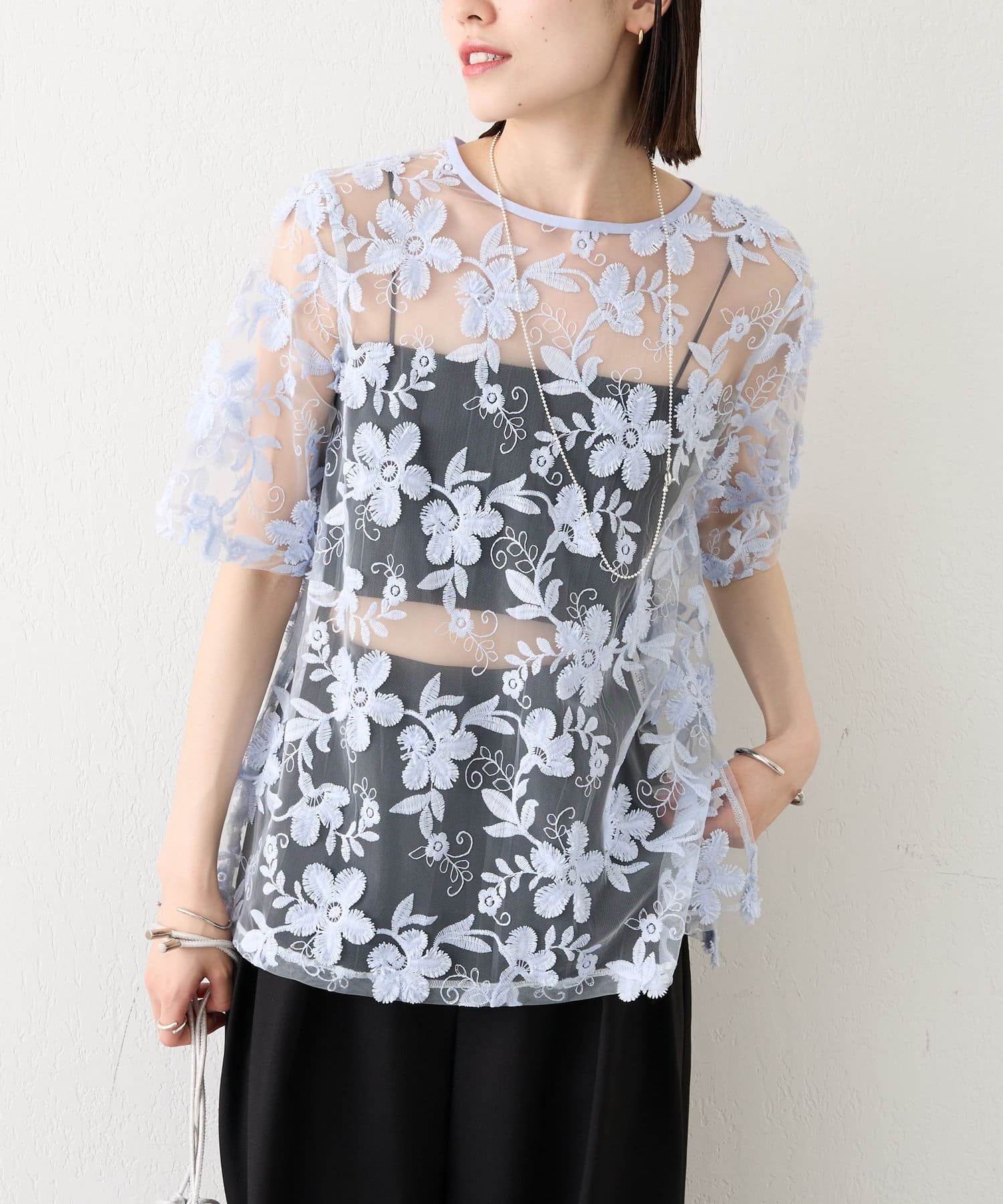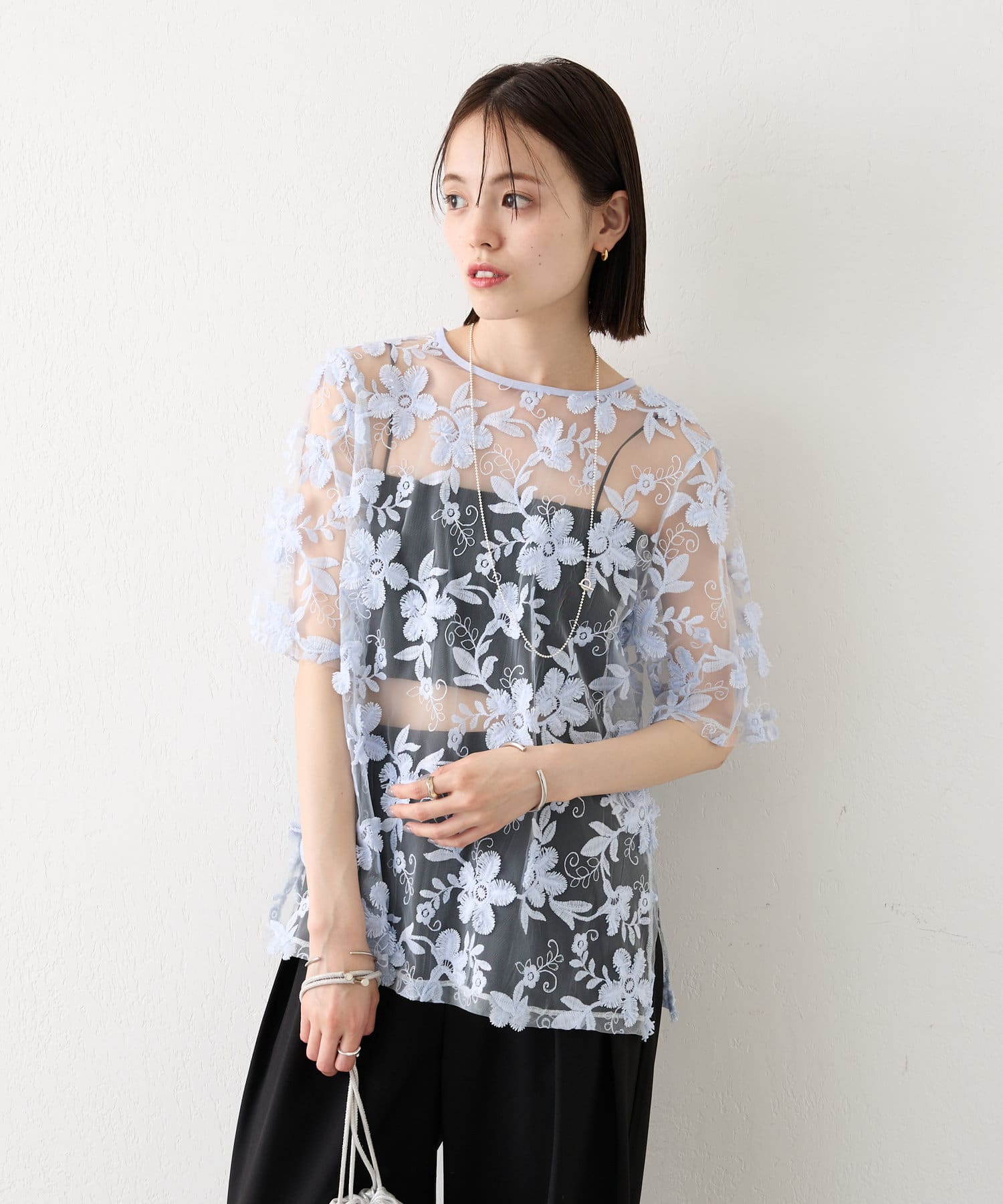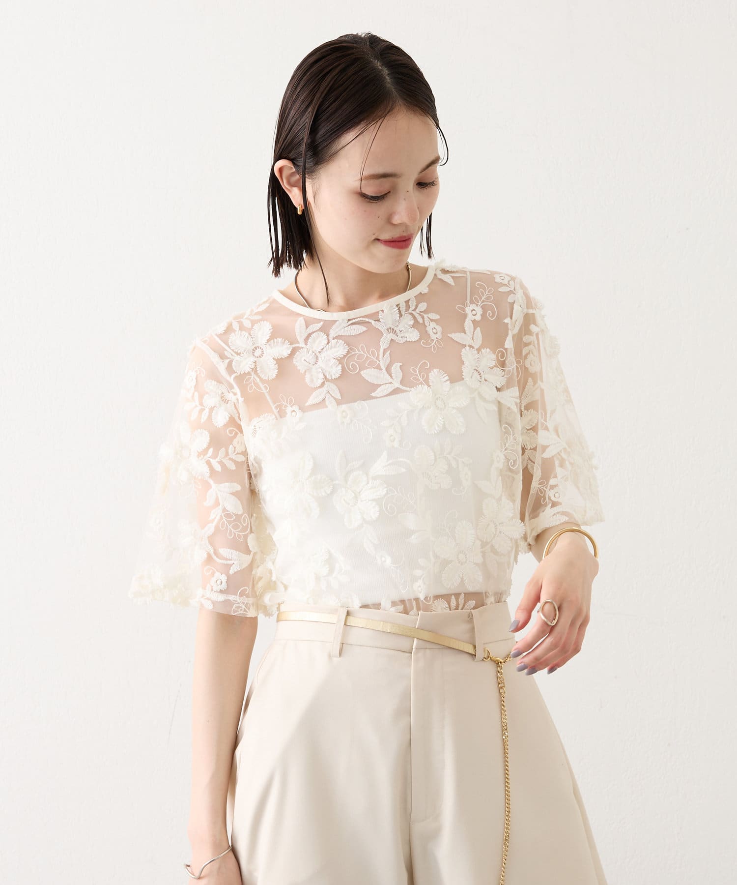 ・優しい透け感でヘルシーに肌見せできるブラウス。