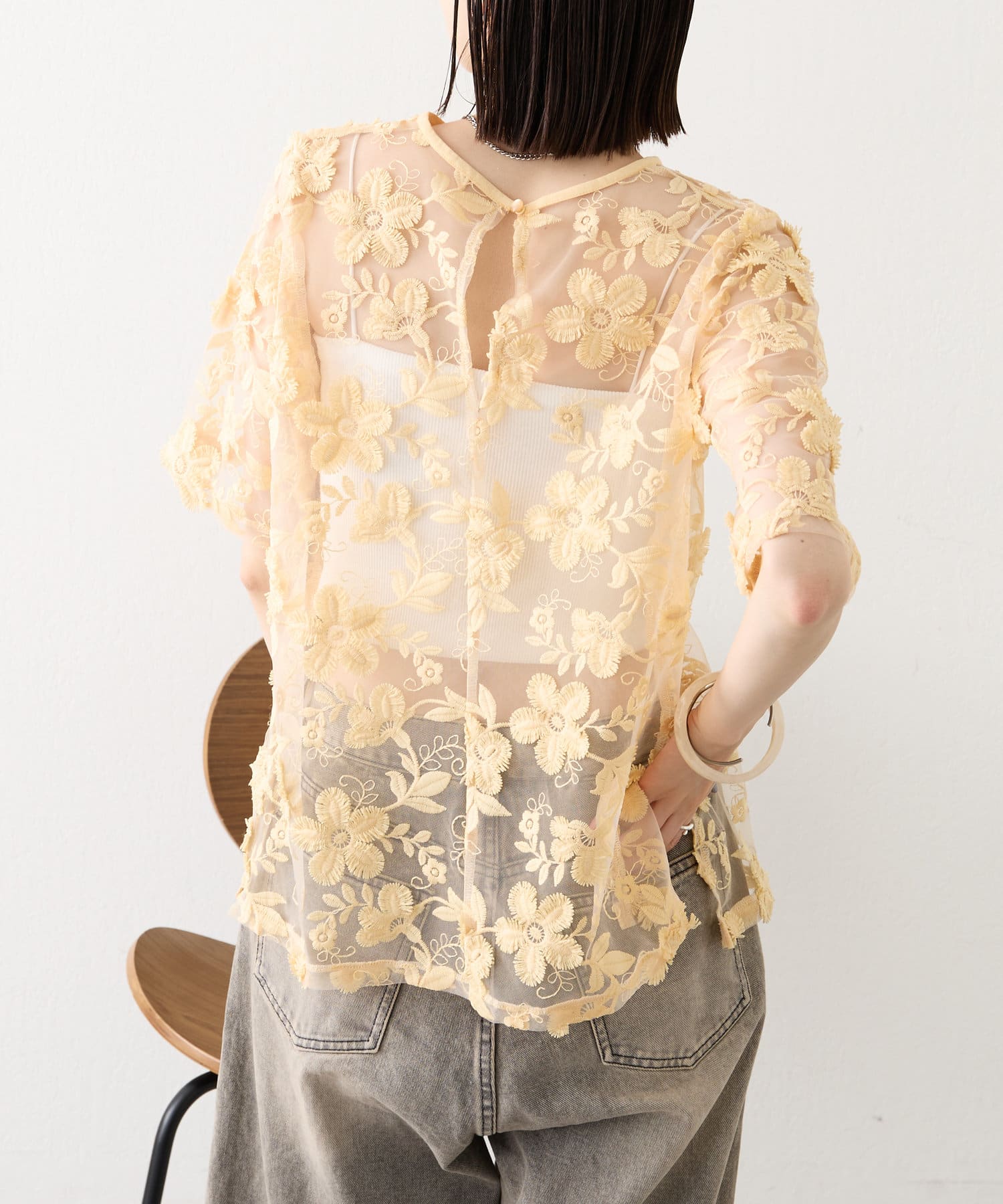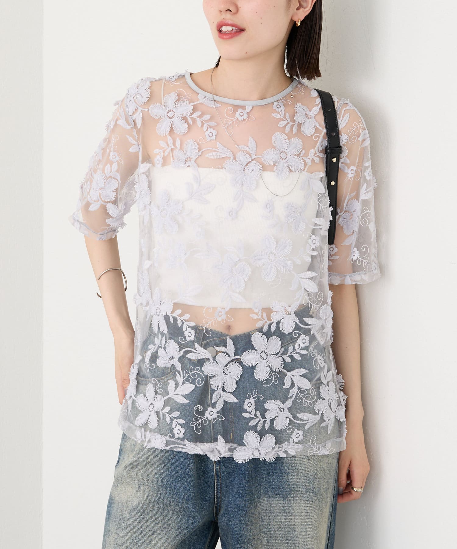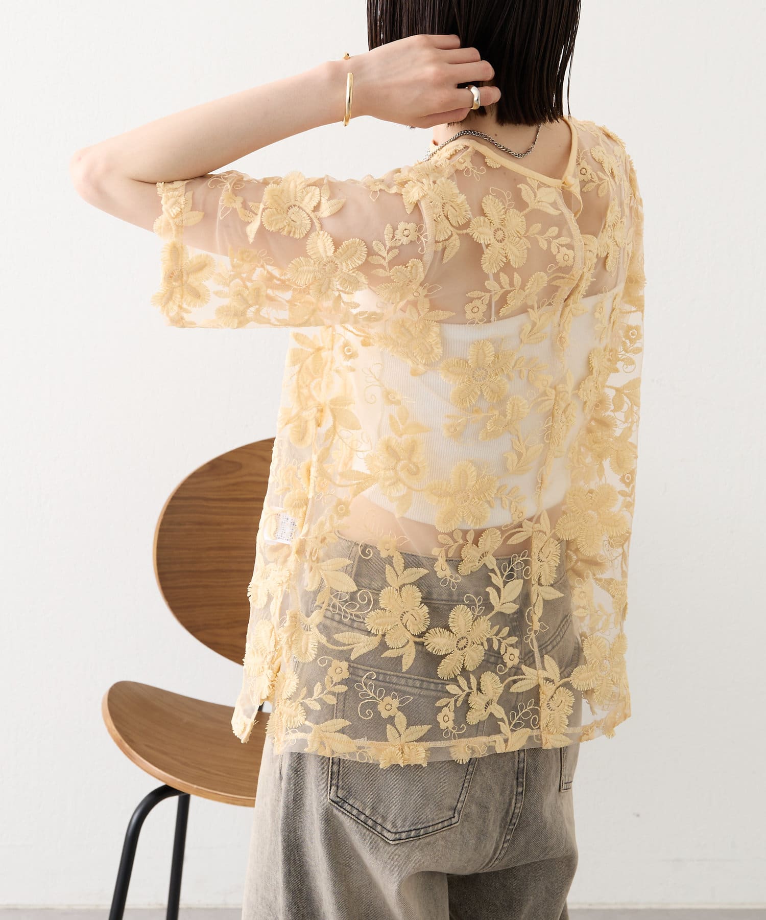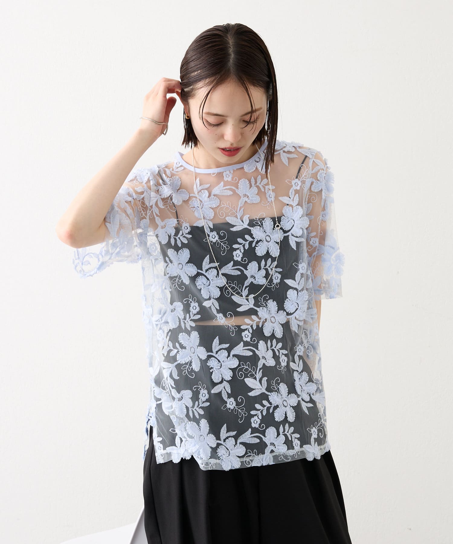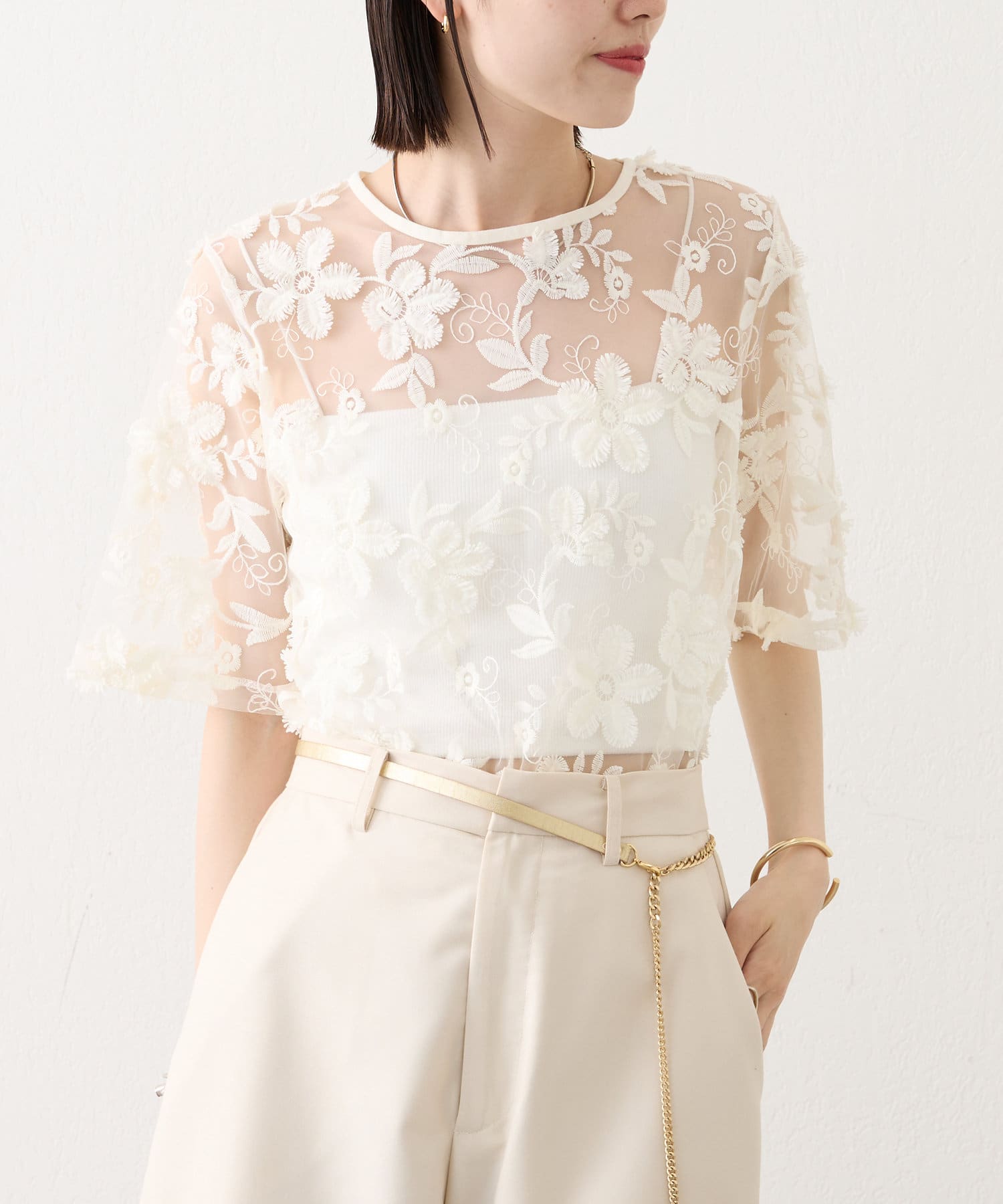 ・優しい透け感でヘルシーに肌見せできるブラウス。