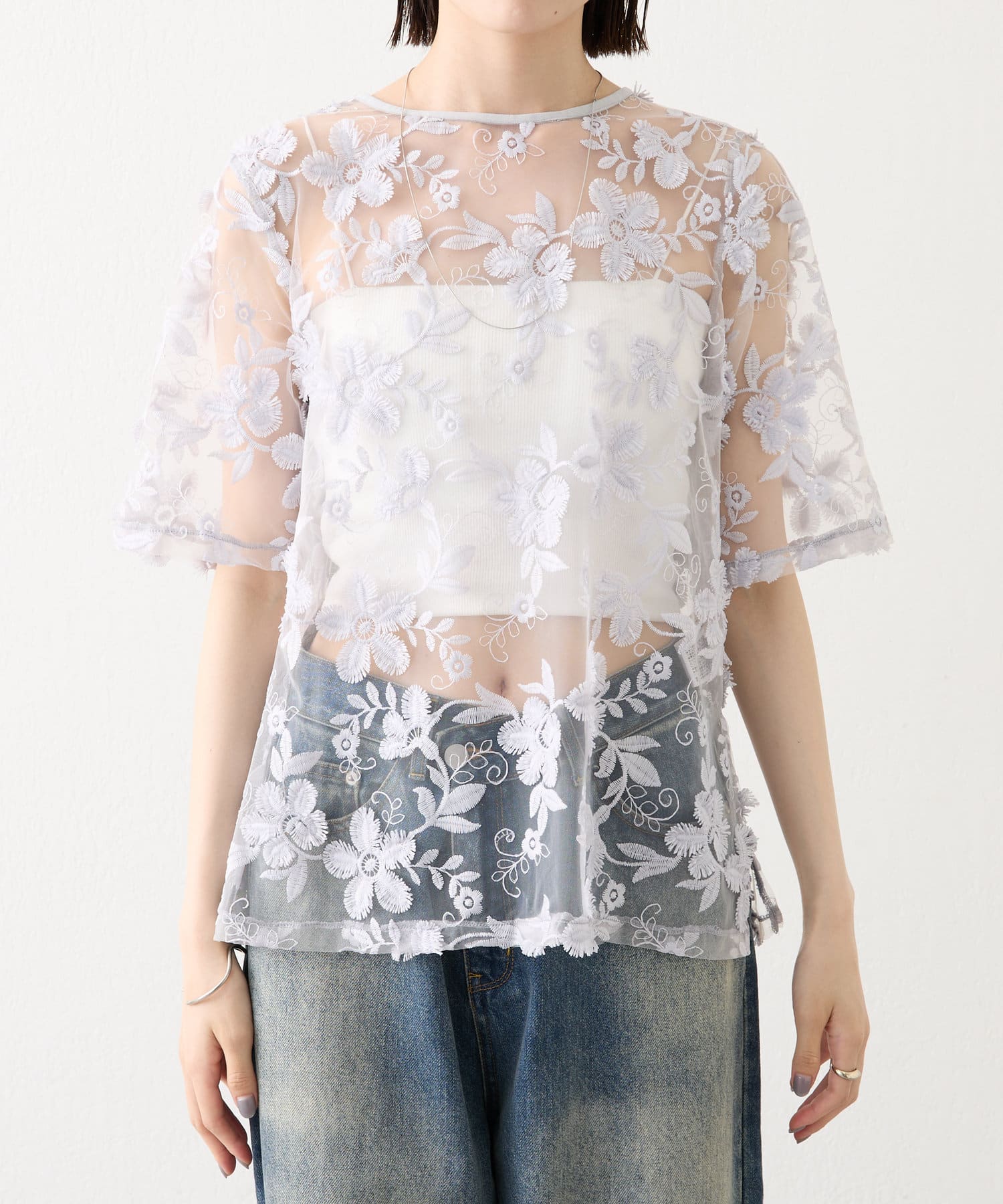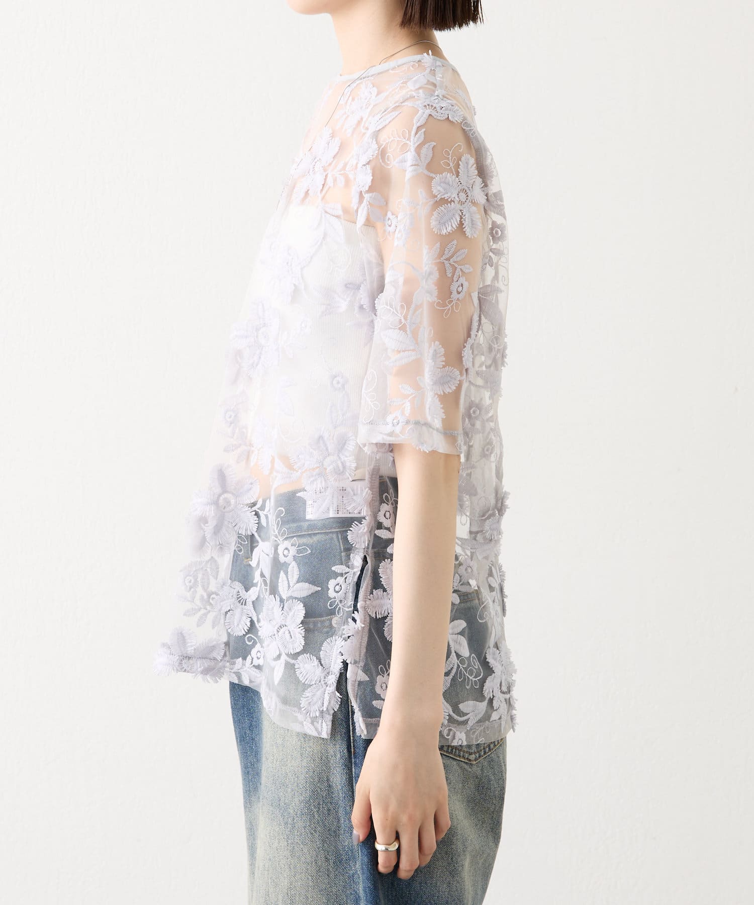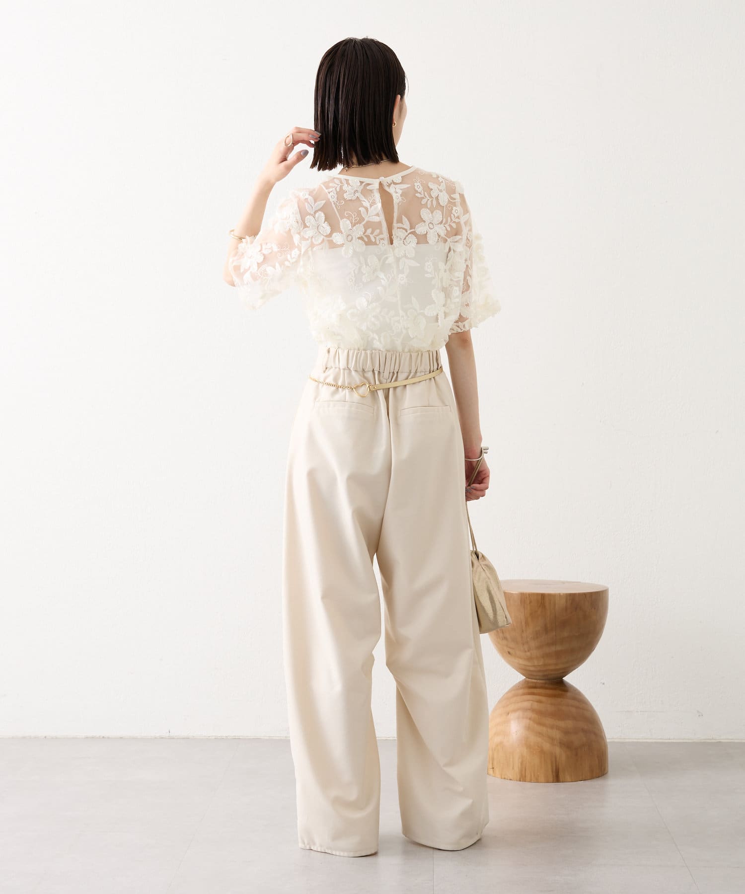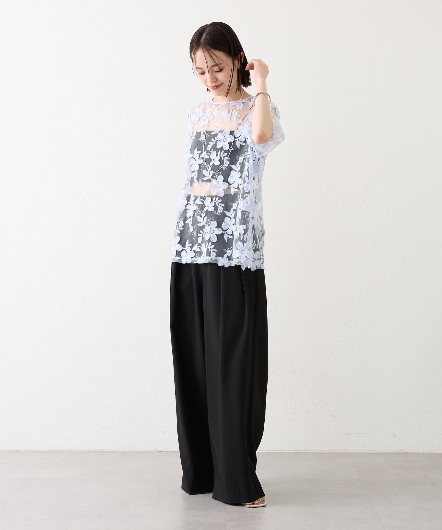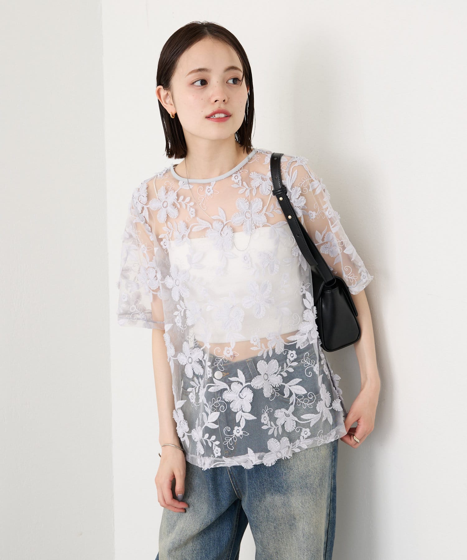 ・優しい透け感でヘルシーに肌見せできるブラウス。