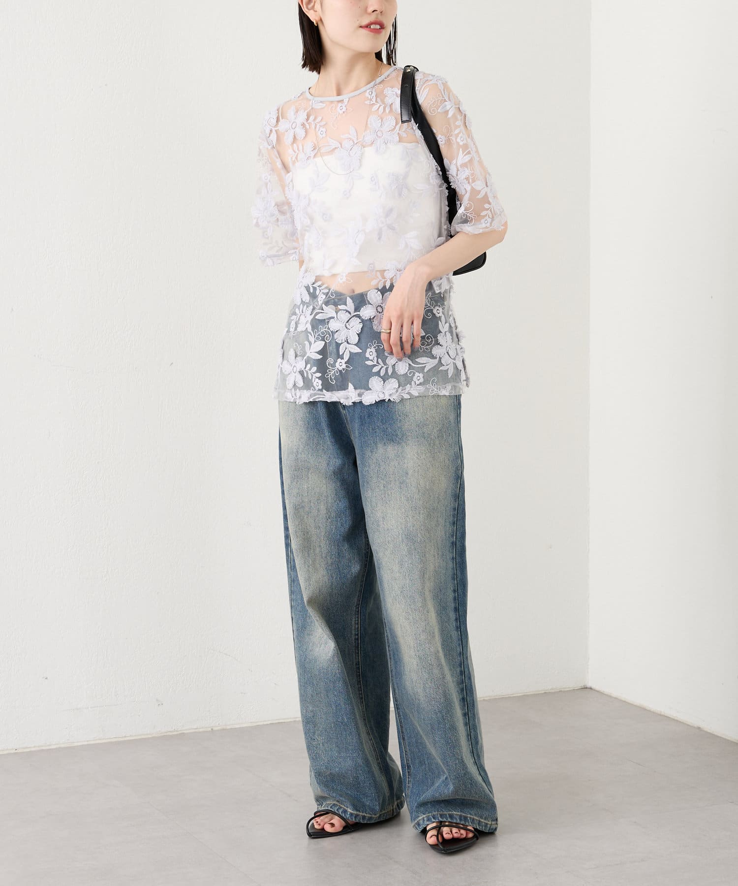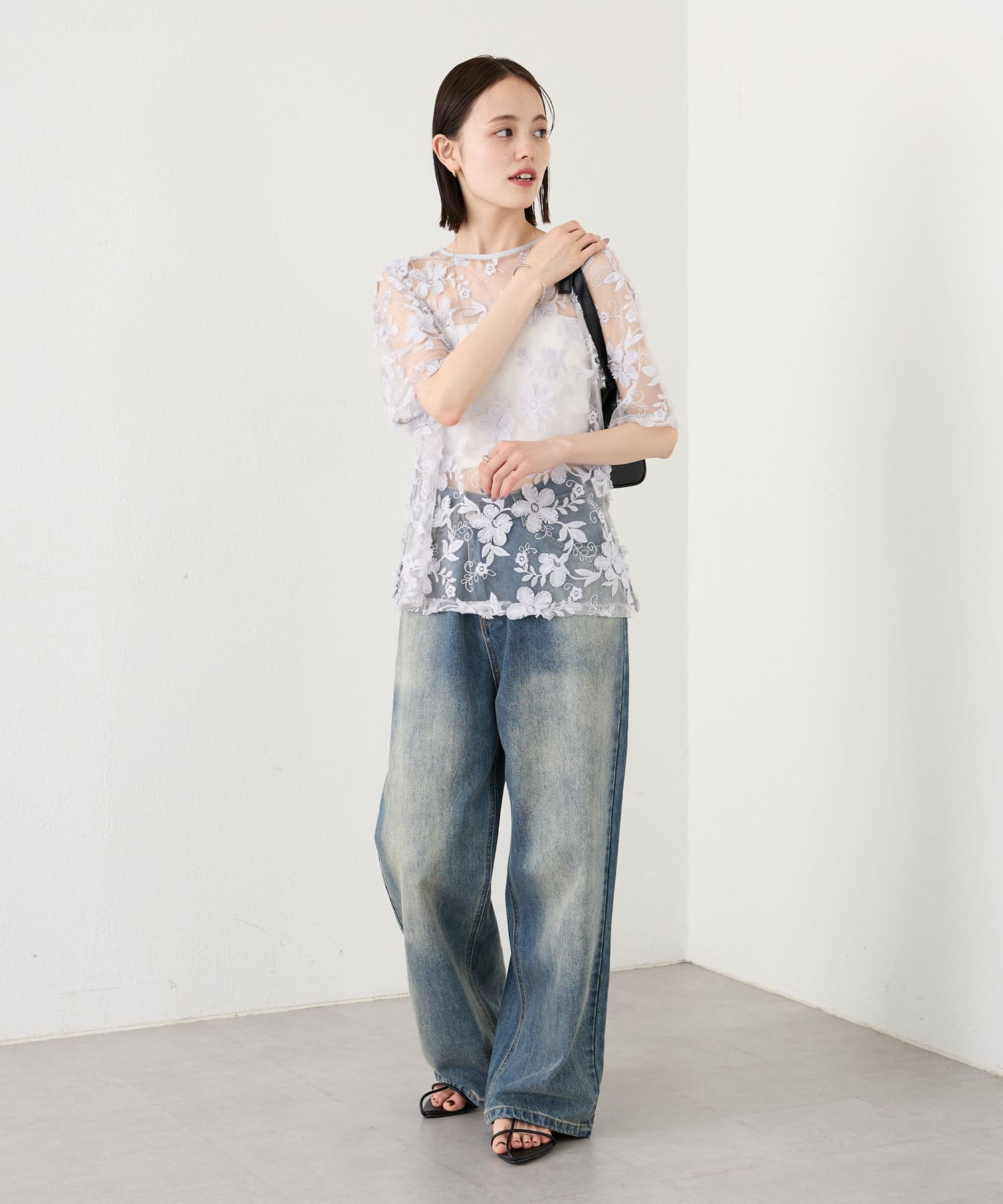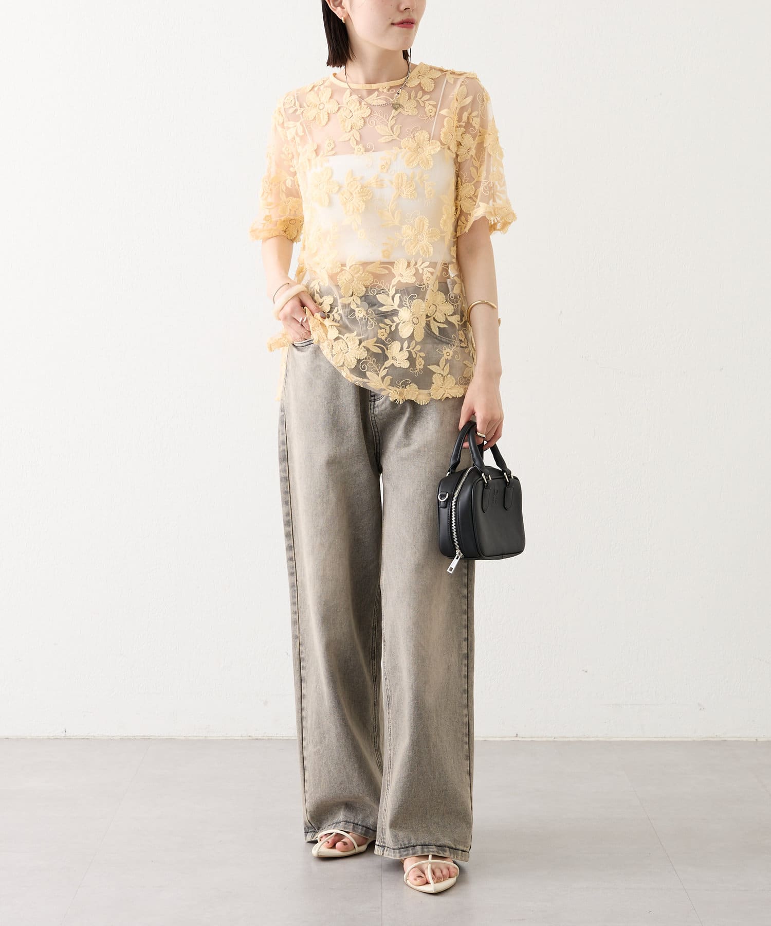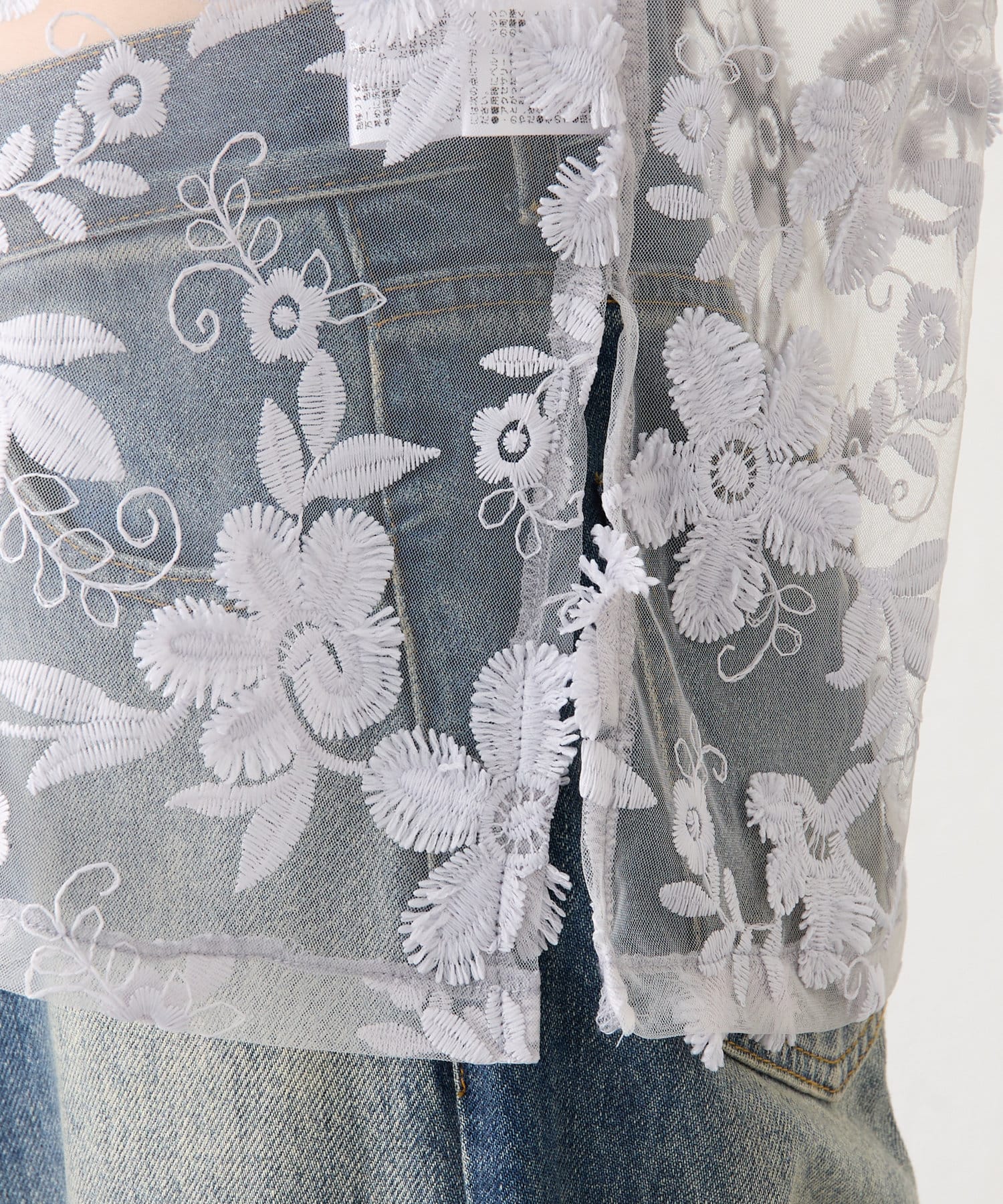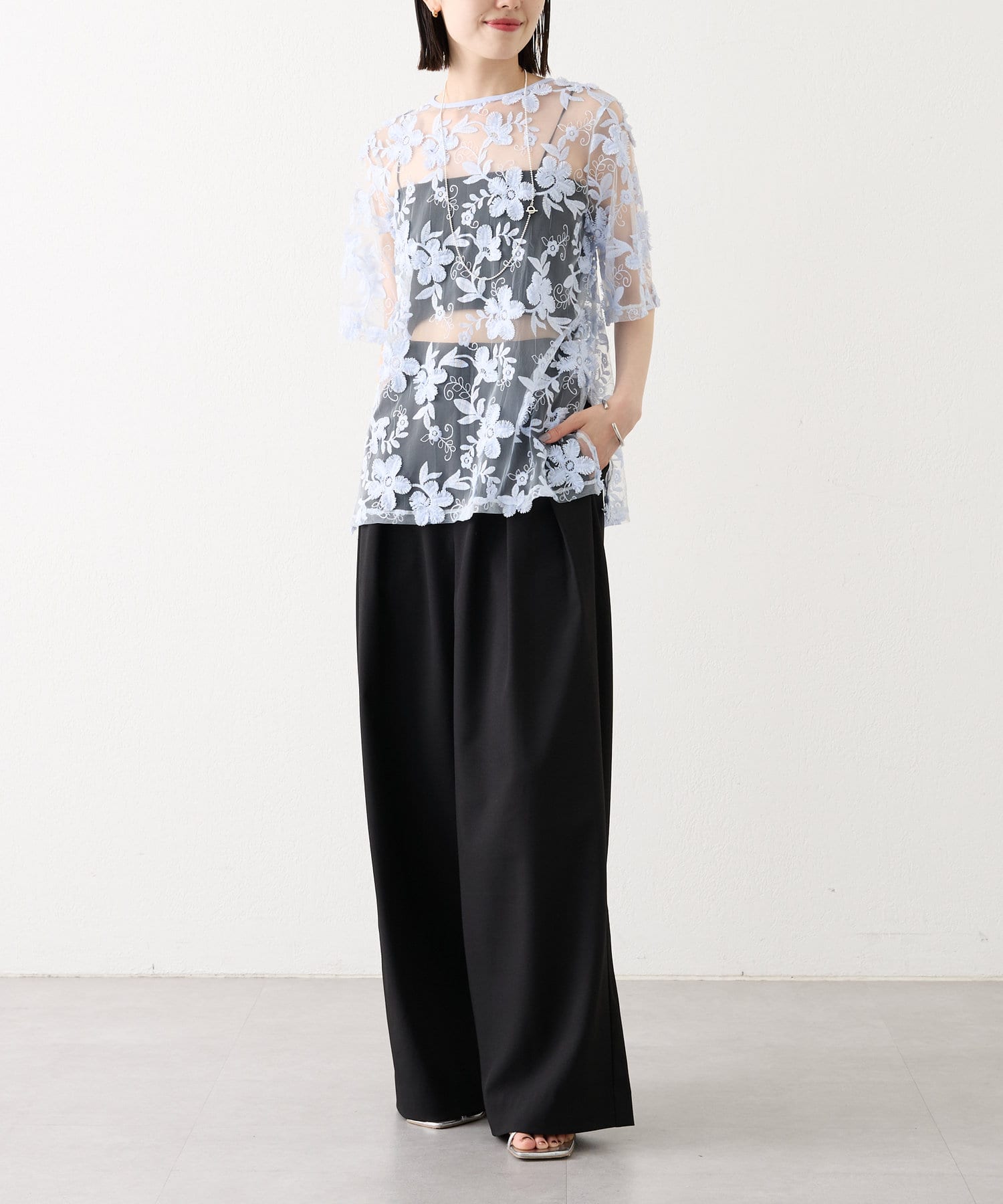 ・優しい透け感でヘルシーに肌見せできるブラウス。