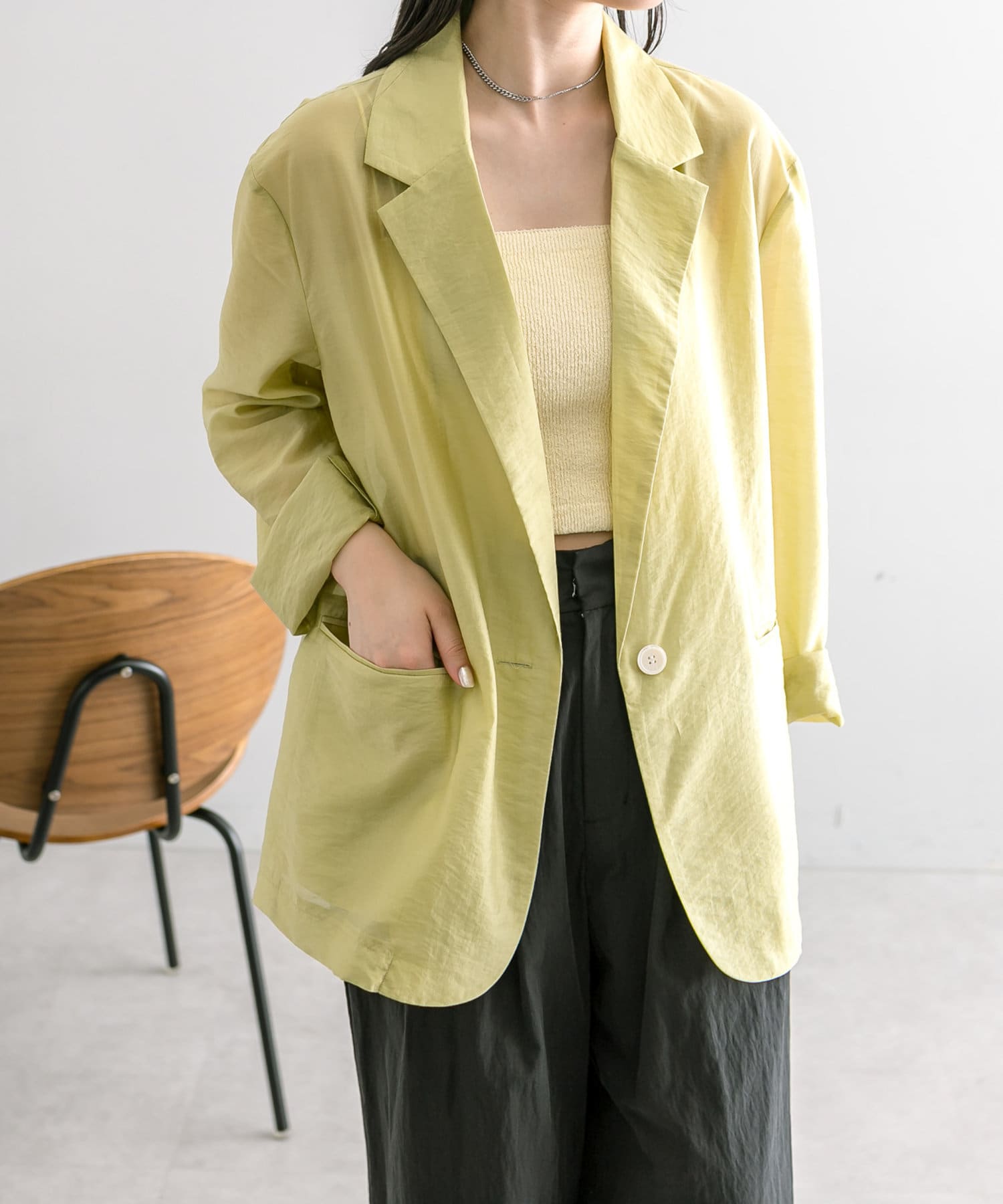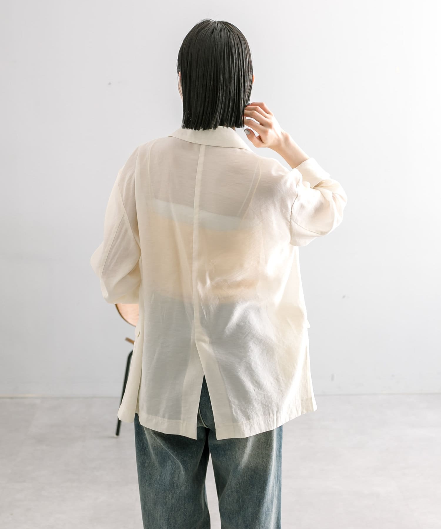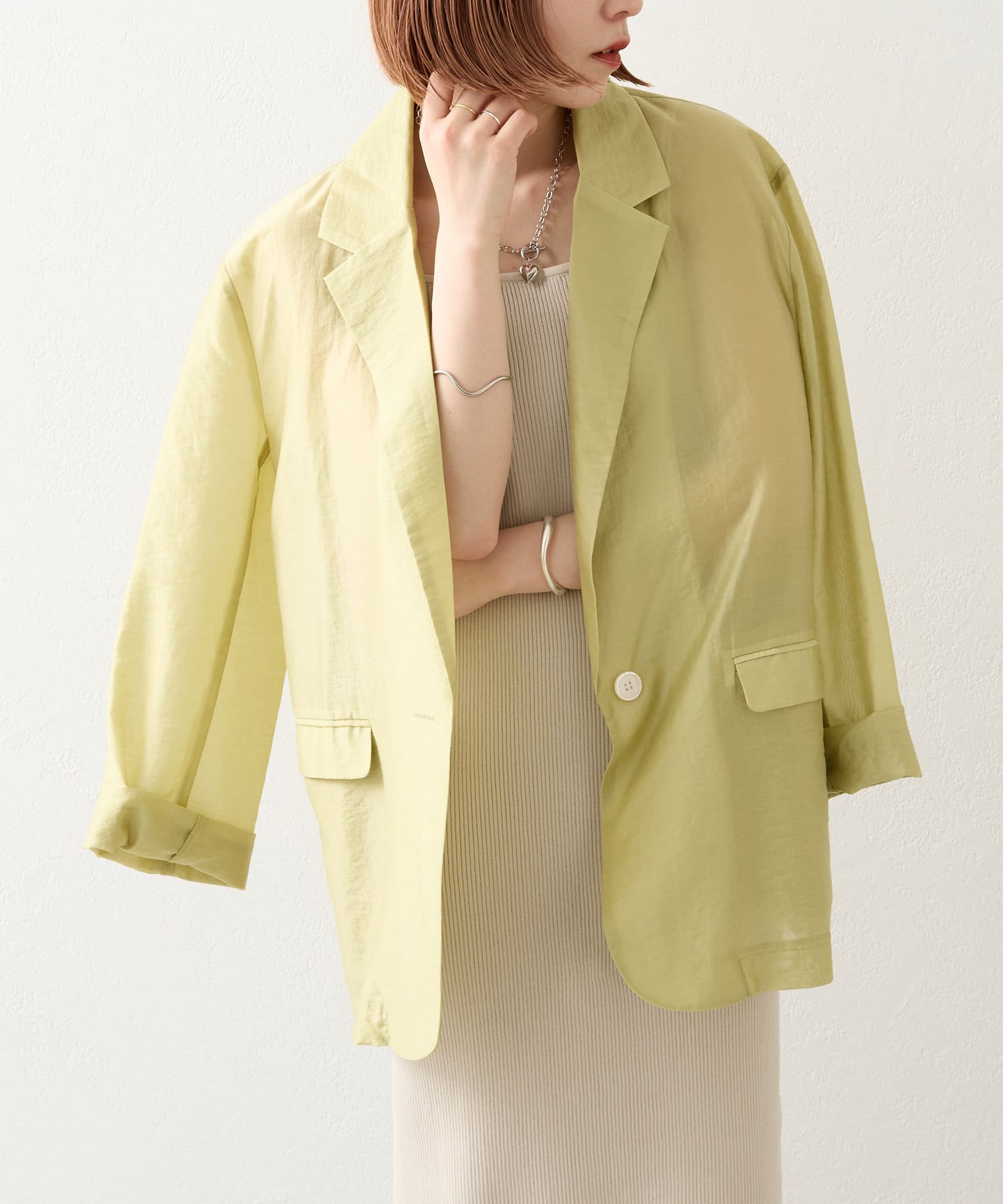 ・透け感のあるシアー素材のジャケットは春から夏にかけて大活躍してくれます。