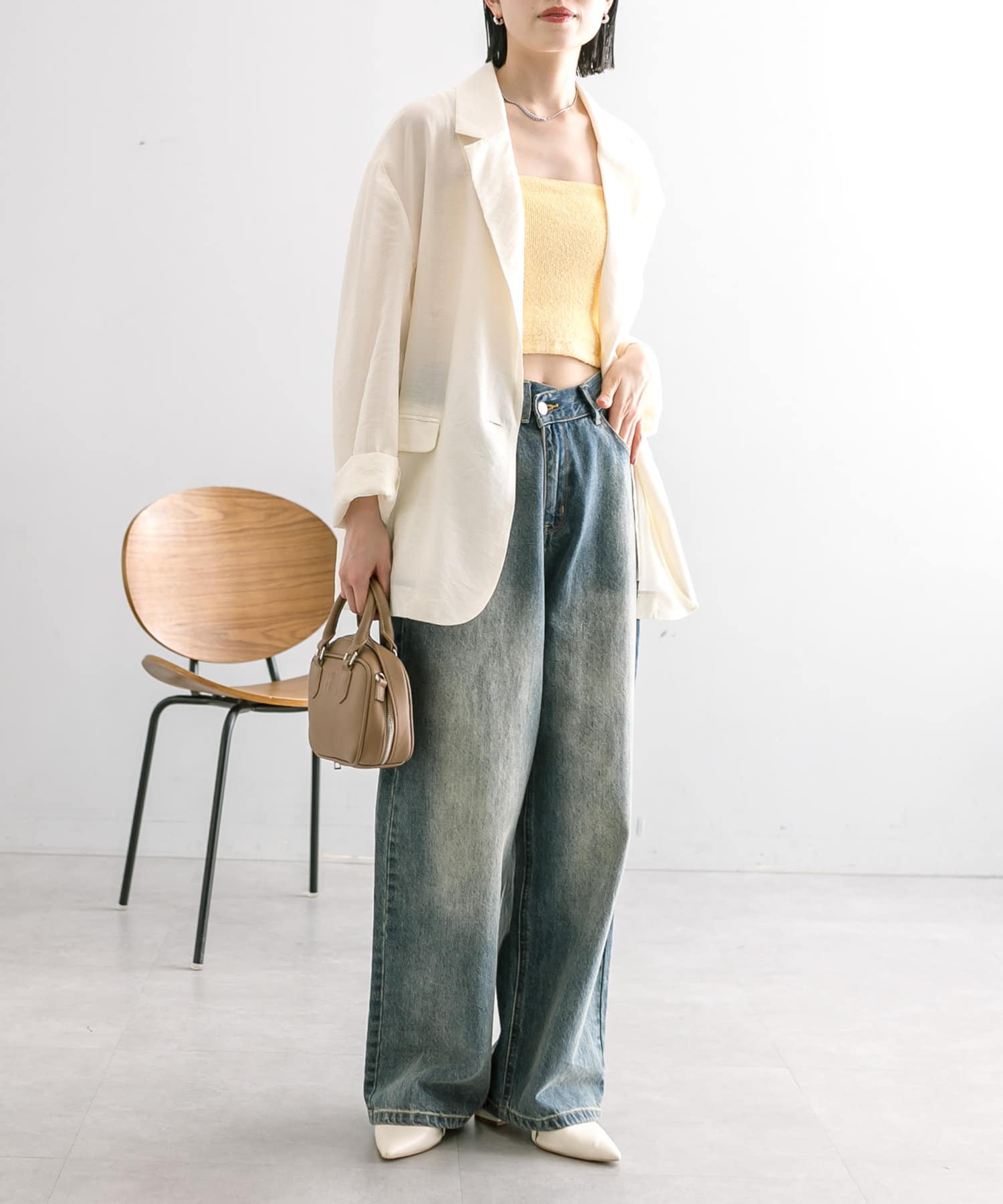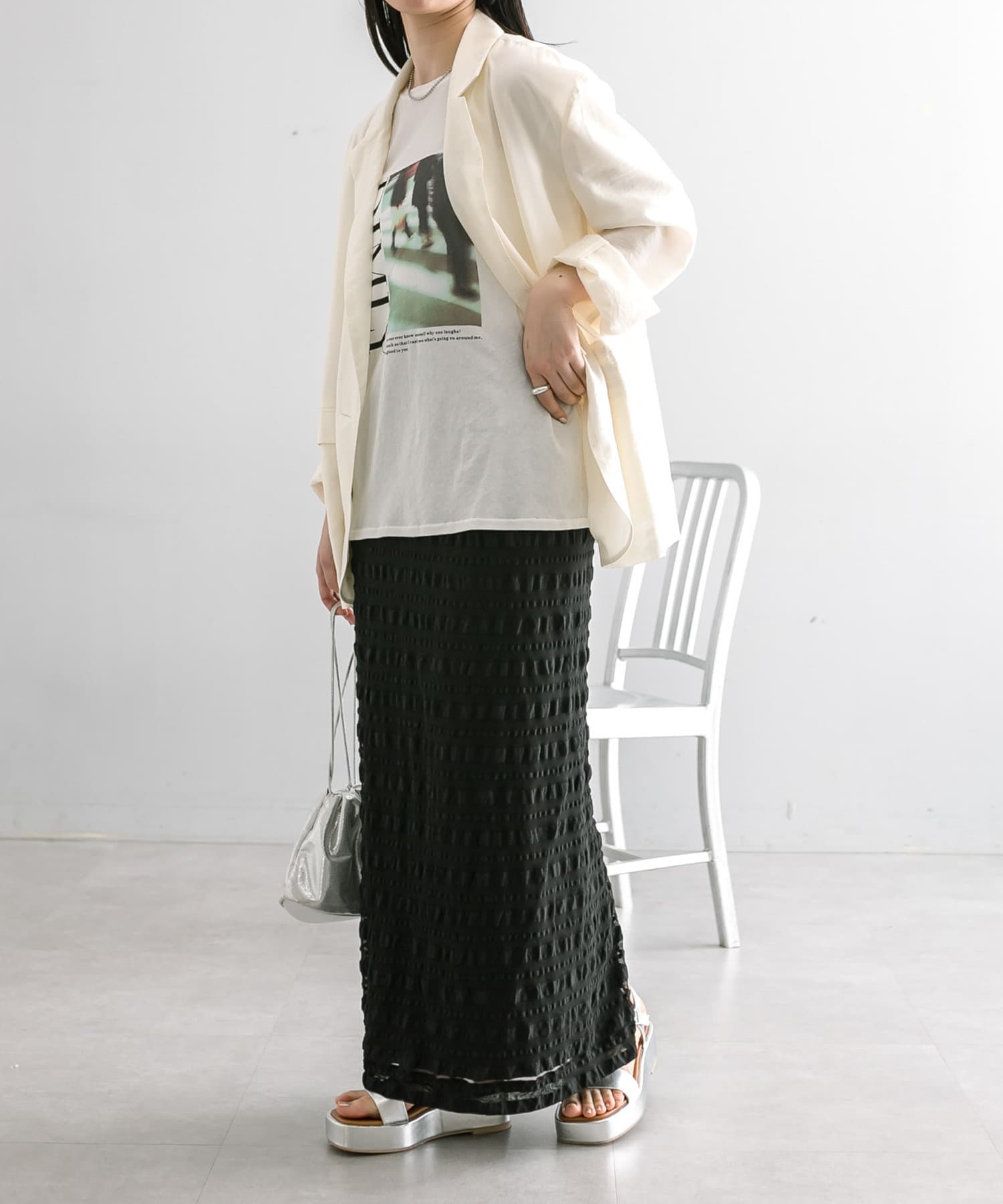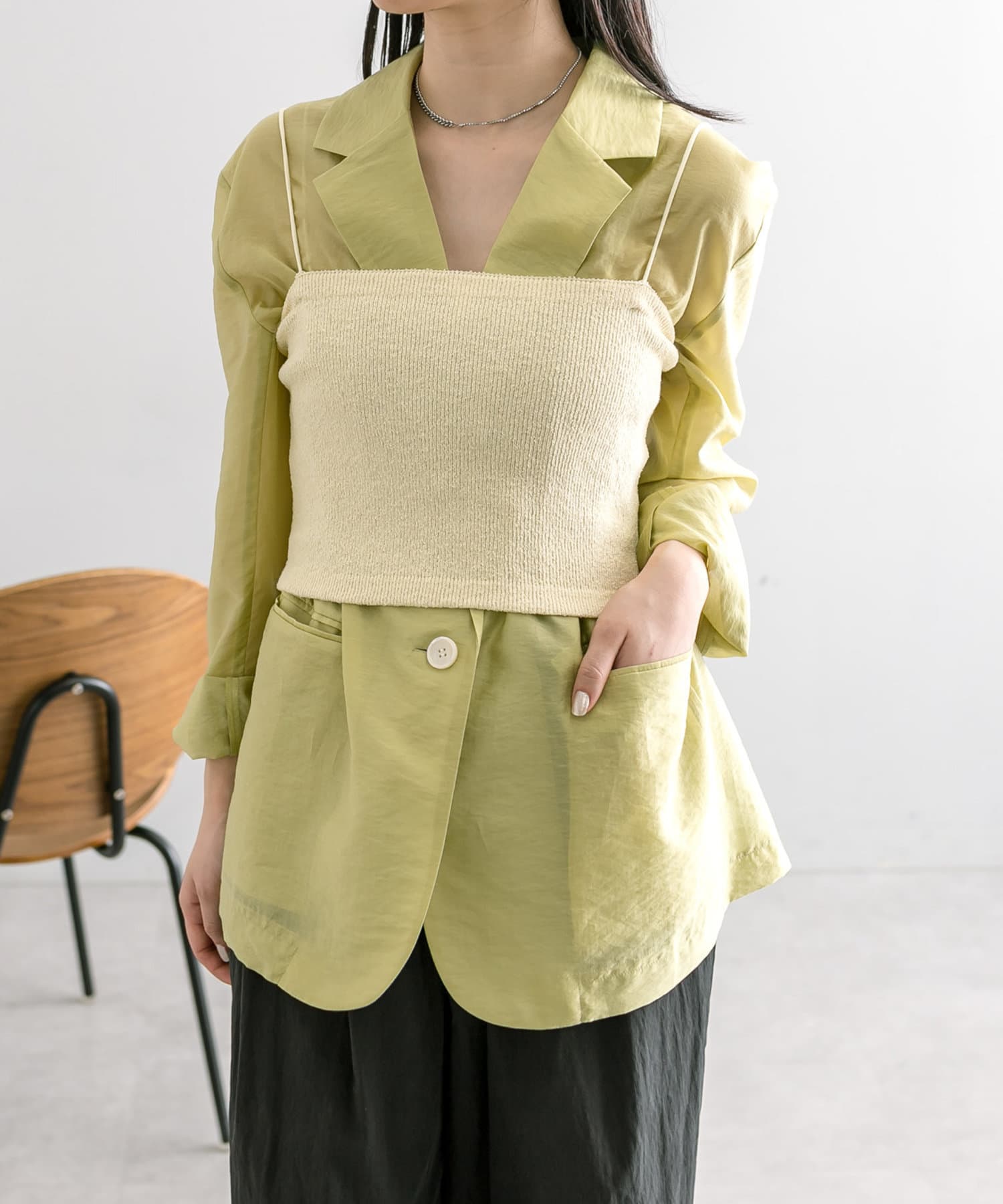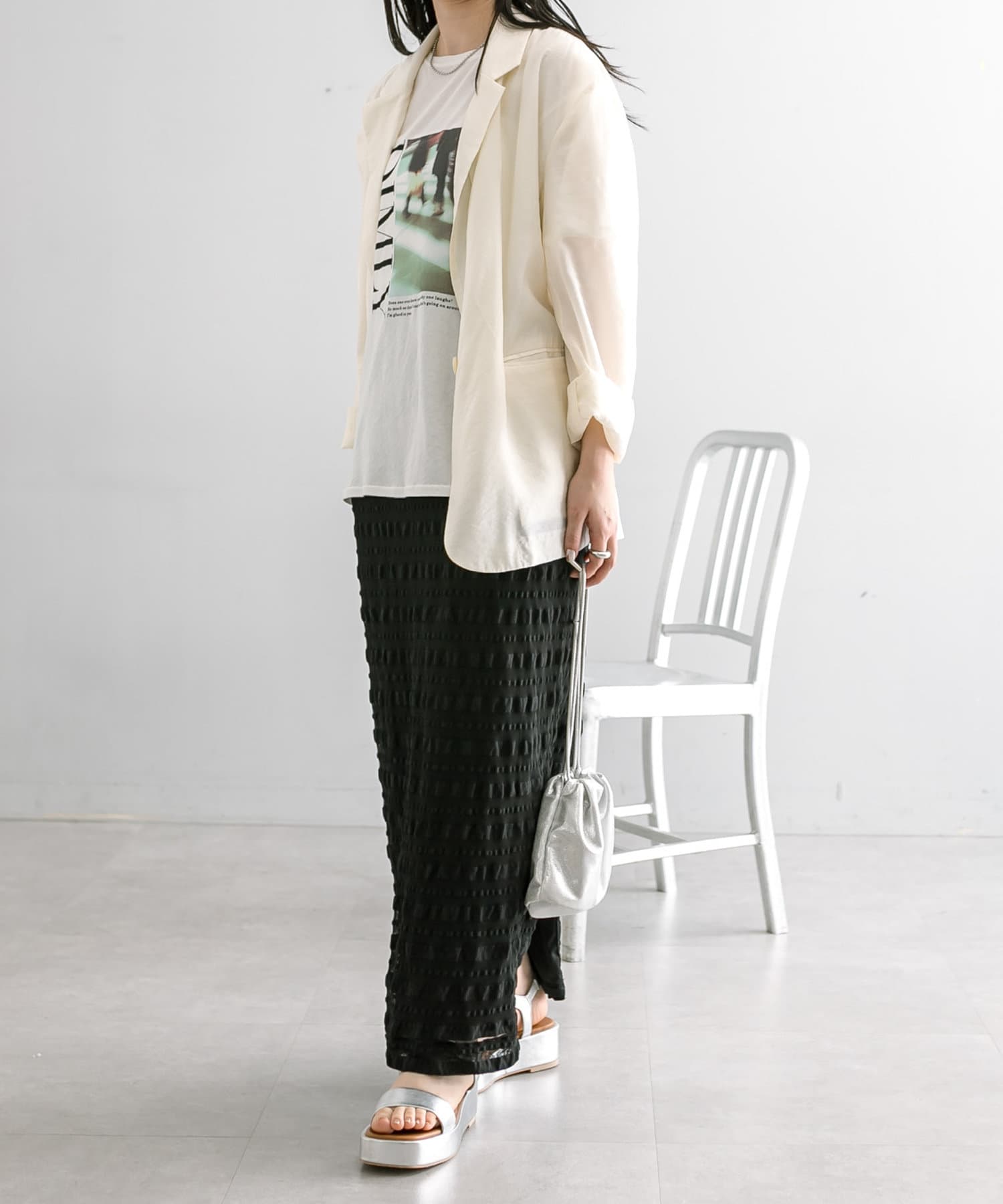 ・透け感のあるシアー素材のジャケットは春から夏にかけて大活躍してくれます。