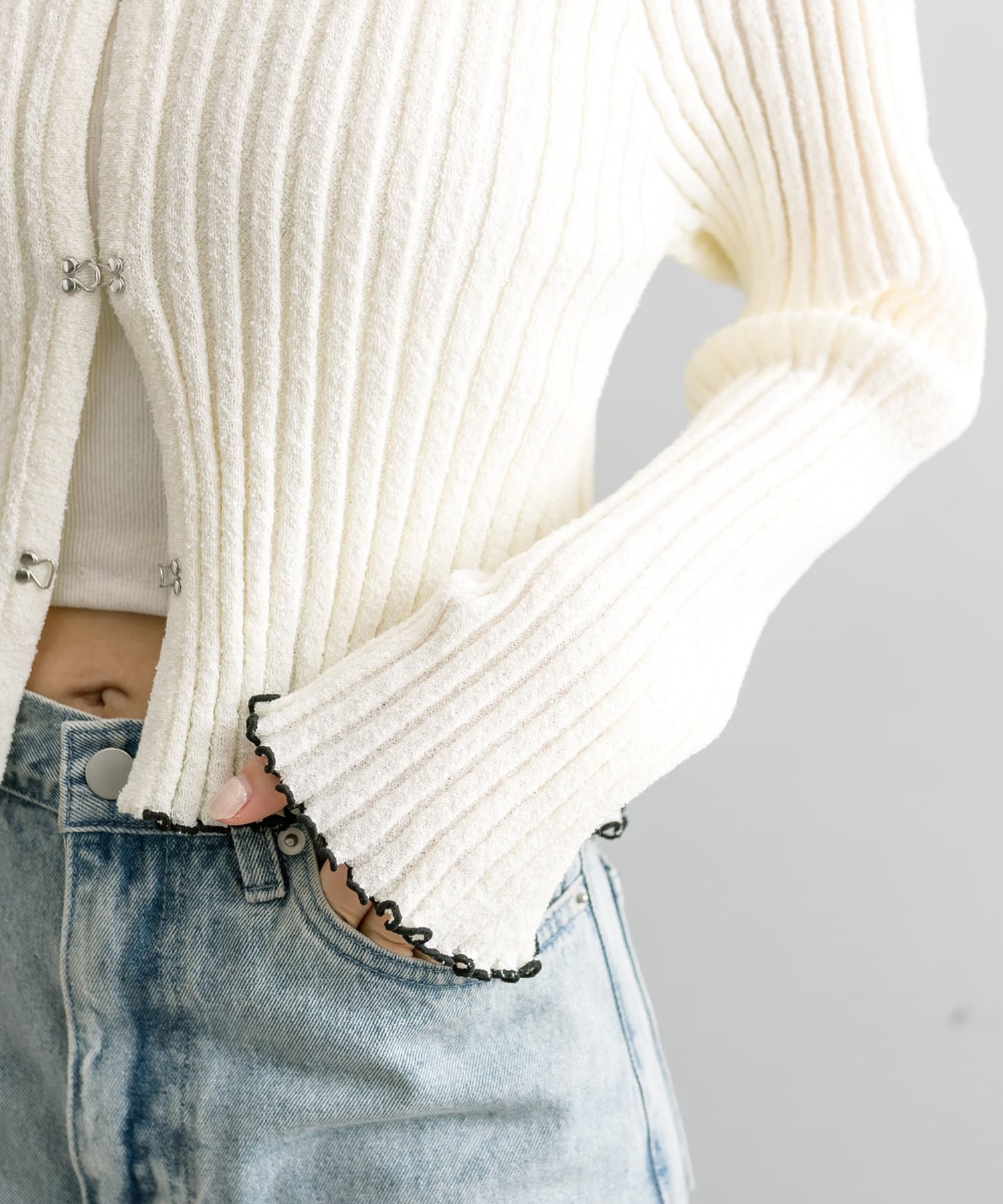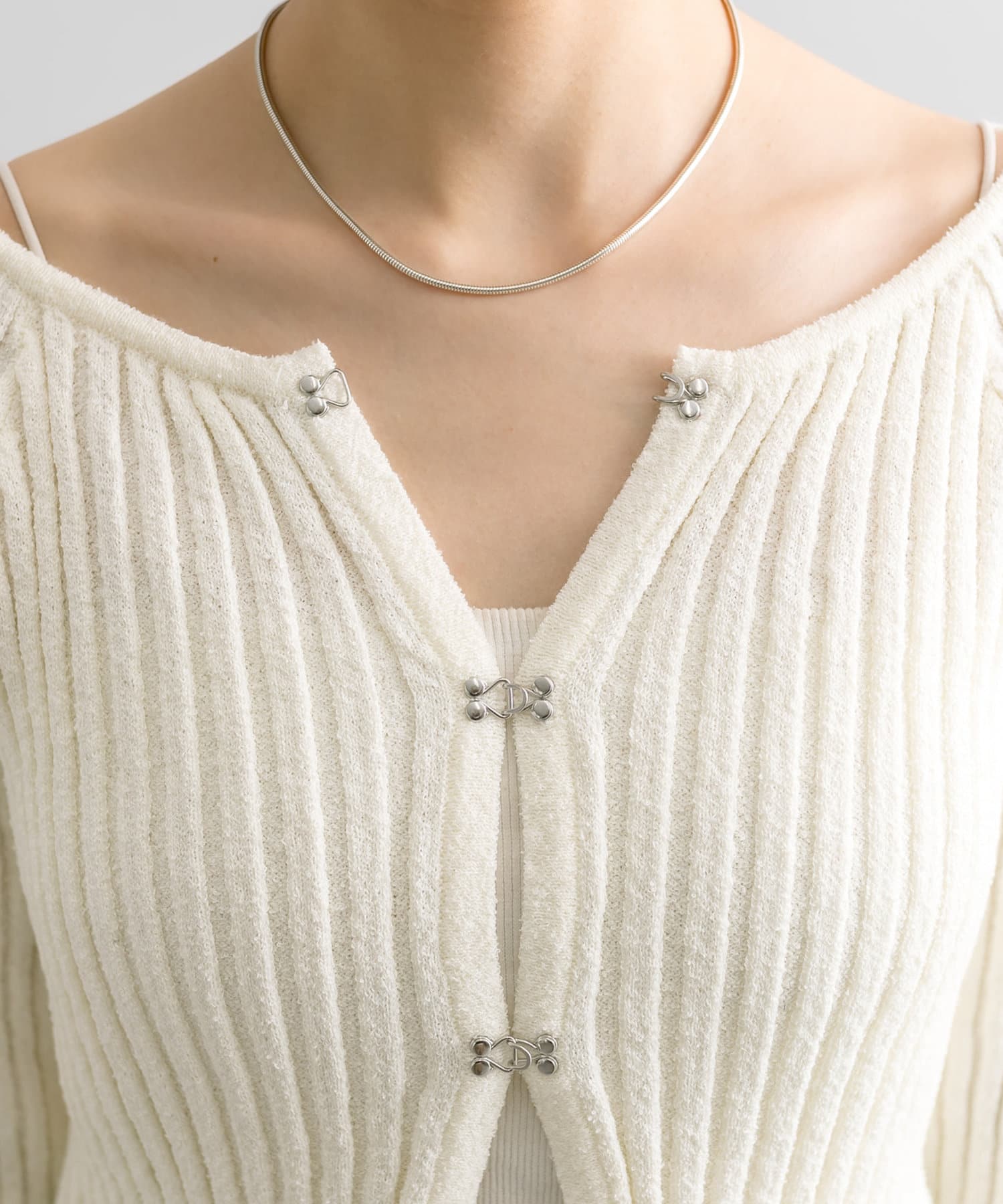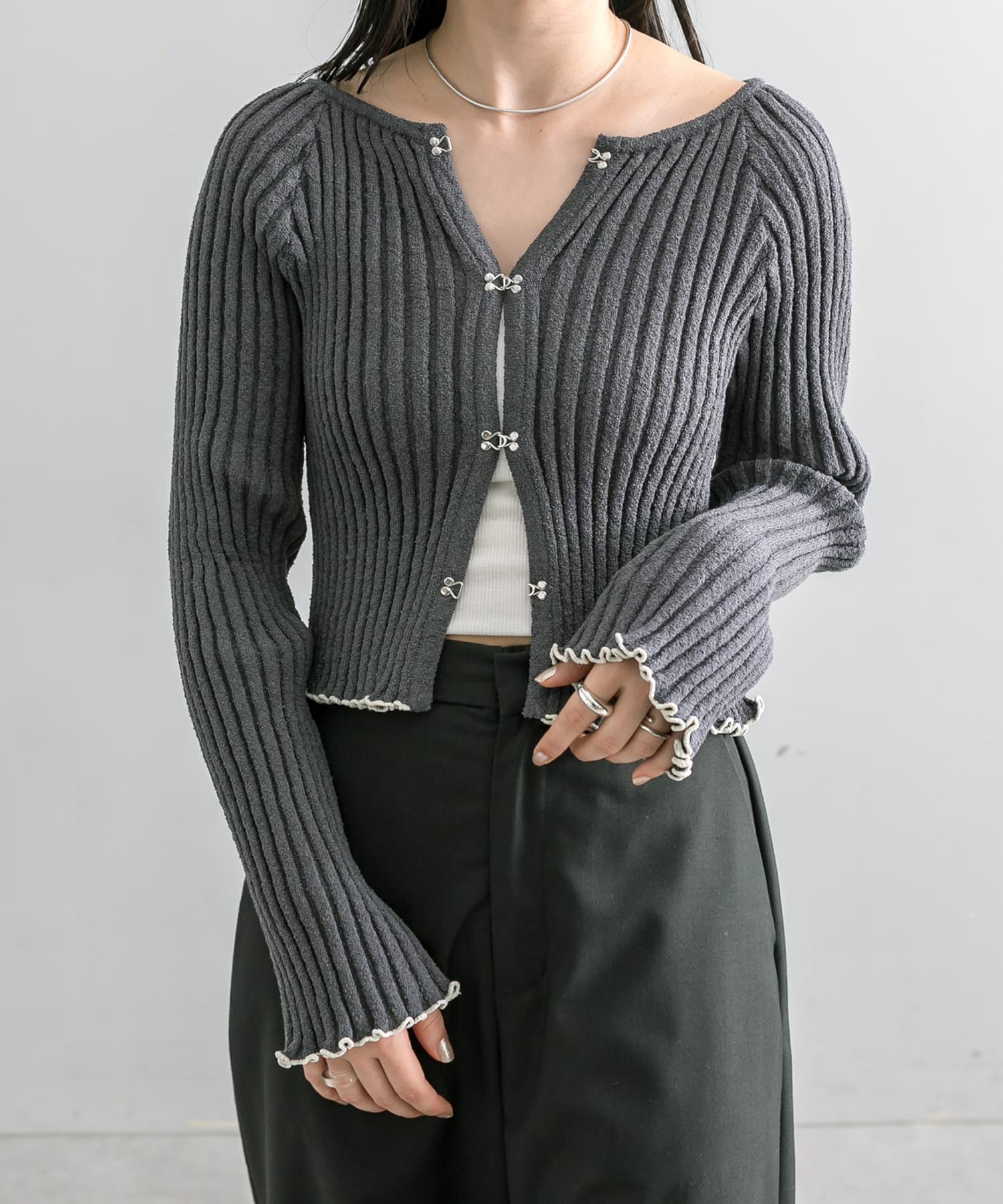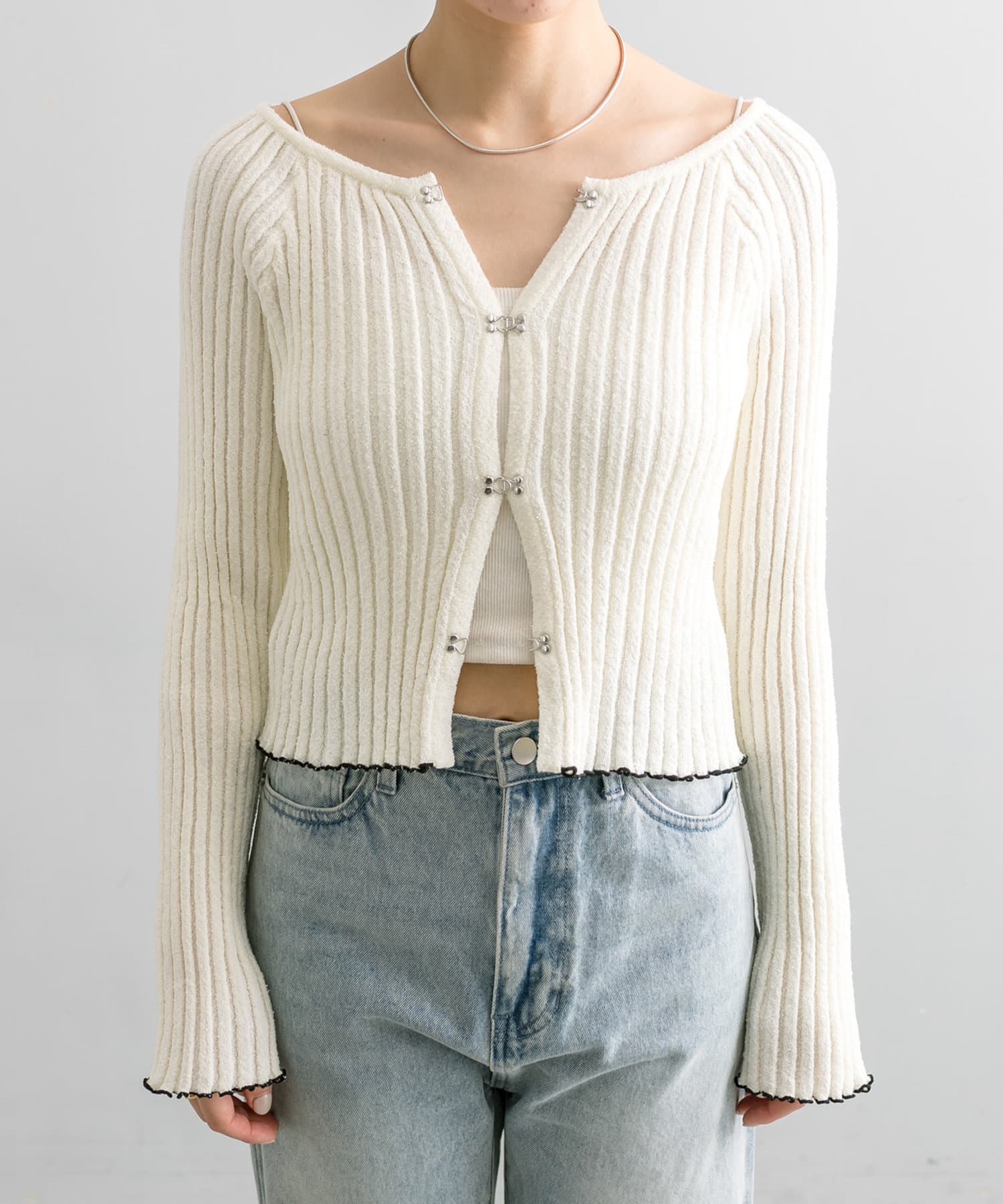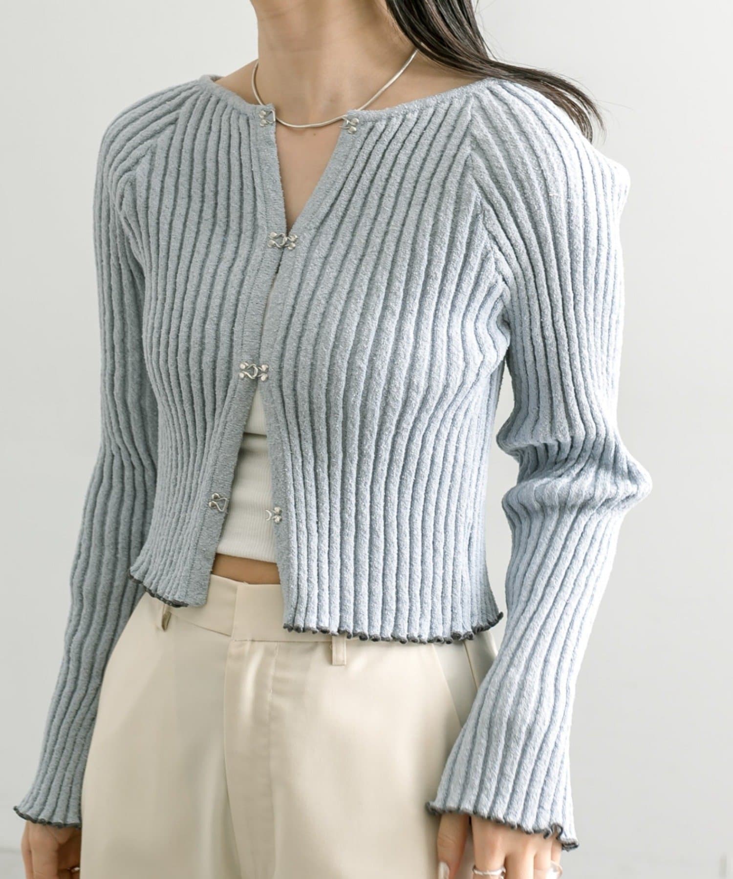 ・フロントホックデザインのカーディガンが4色で登場。