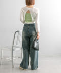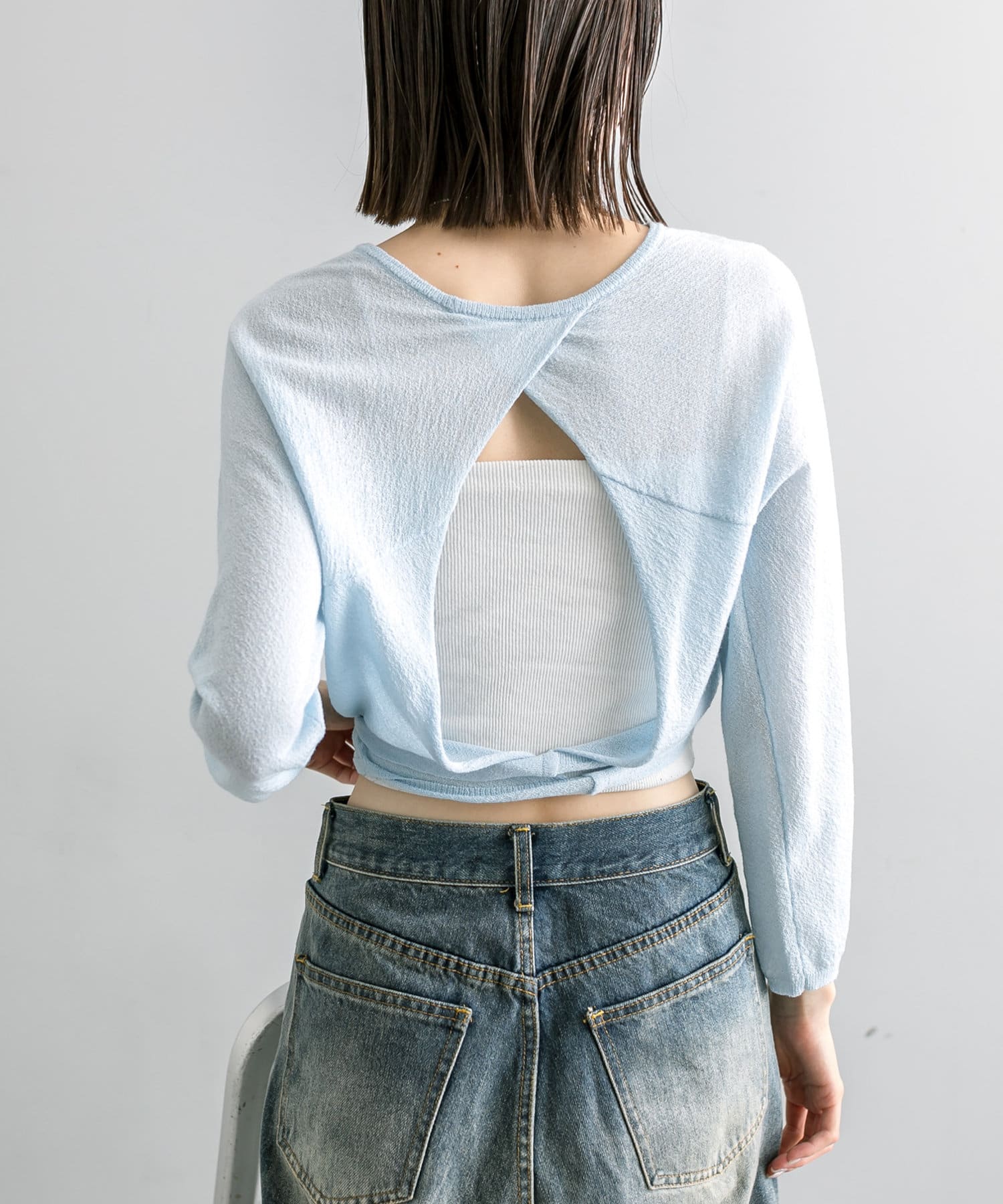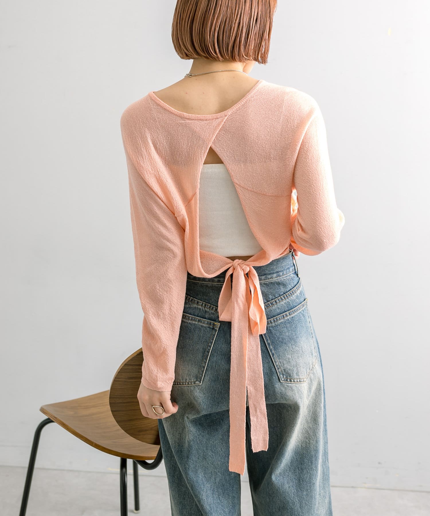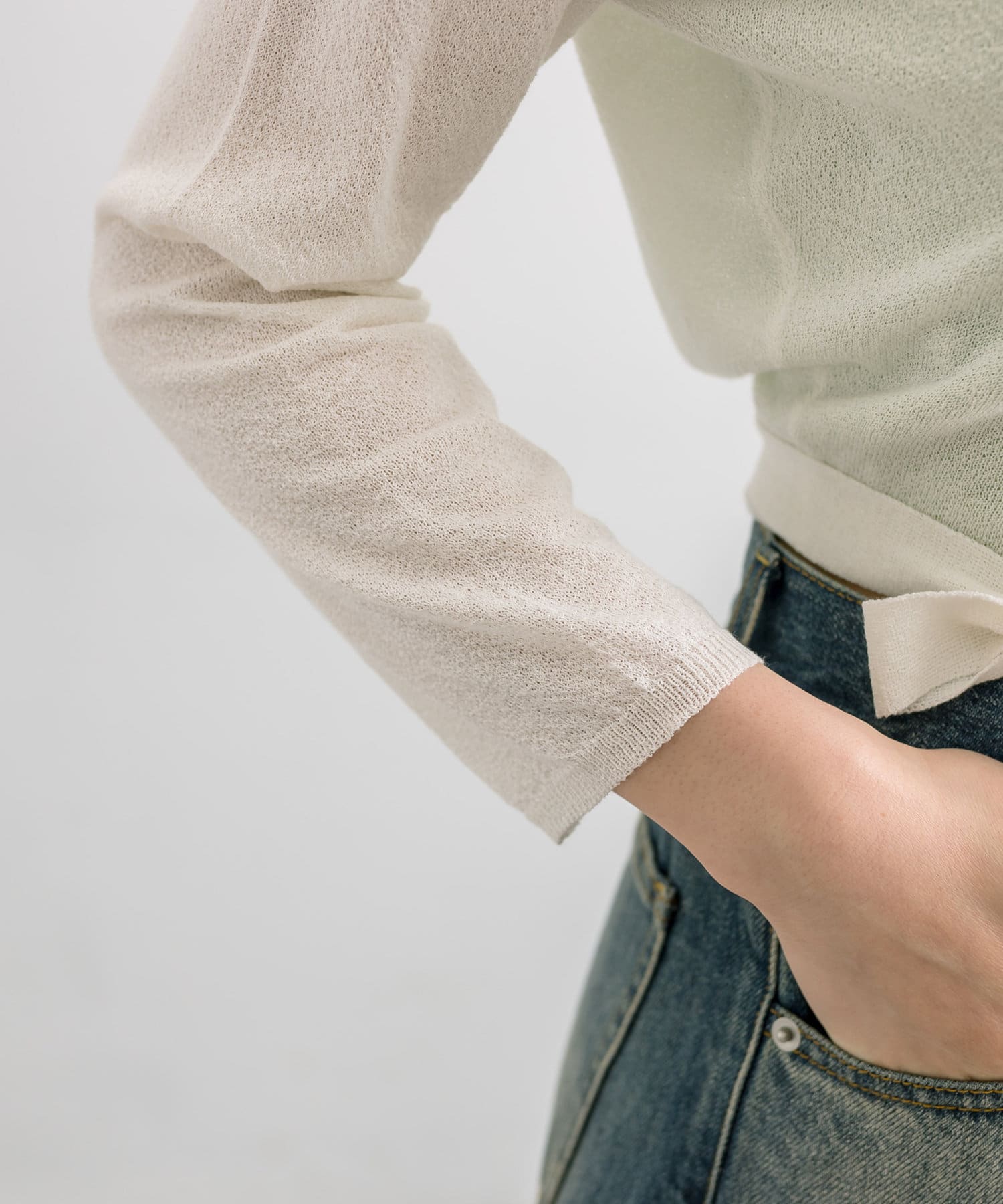 バックシャンデザインで後ろ姿も夏らしく決まるカラーニット。