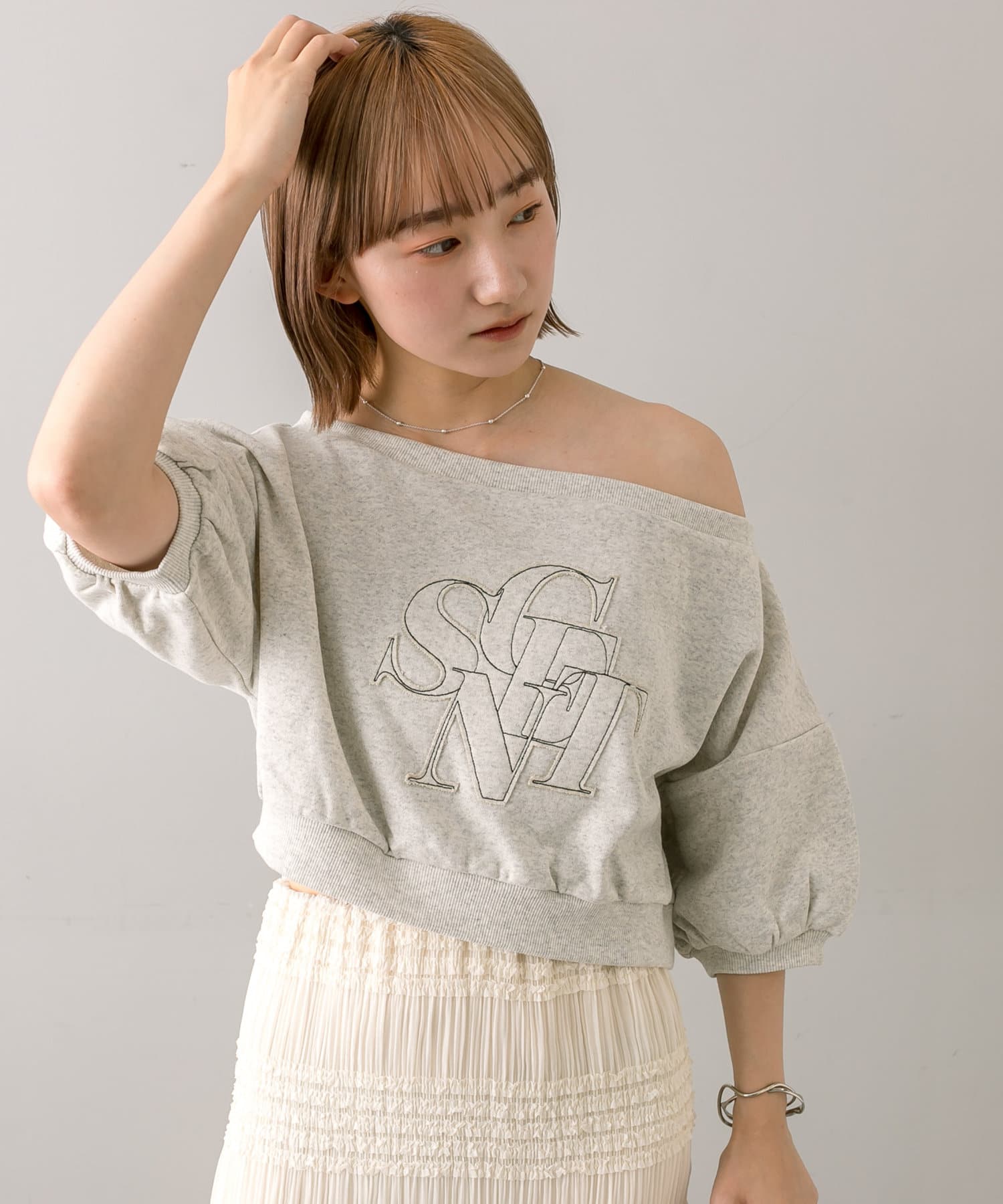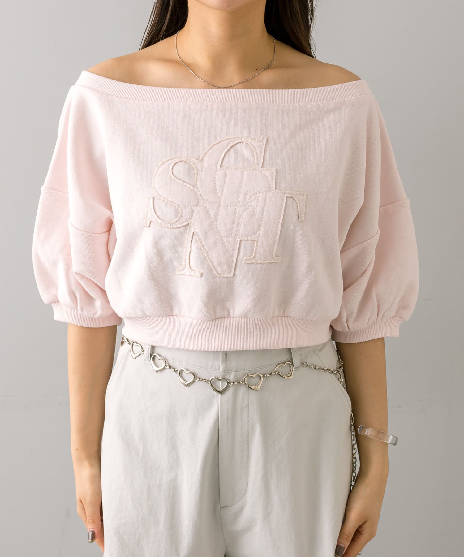 ・大人気でたくさんのお声をいただいたオフショルロゴスウェットが半袖になって登場いたしました!