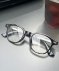 ・王道の黒縁メガネなのでコーディネートにも馴染みやすくいつものコーディネートにこなれ感をプラス!