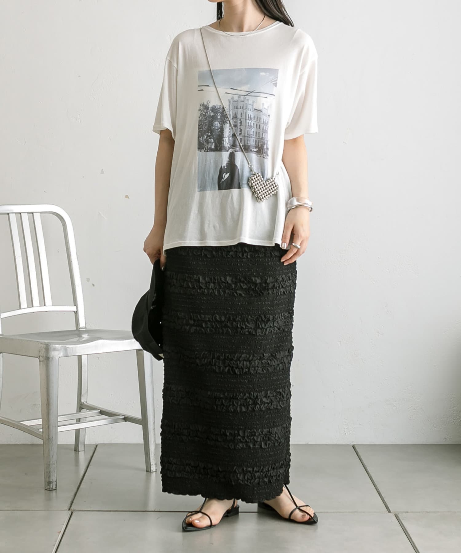 ・シンプルなトップス合わせでスカートをコーディネートの主役に◎