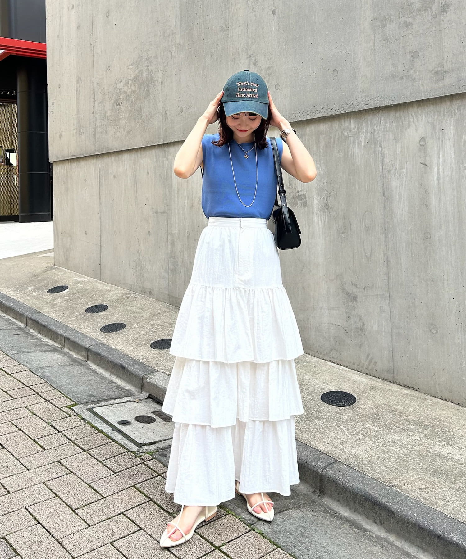 ・ティアード部分がやや下から始まるので、ウエスト周りがすっきりとした印象に◎
