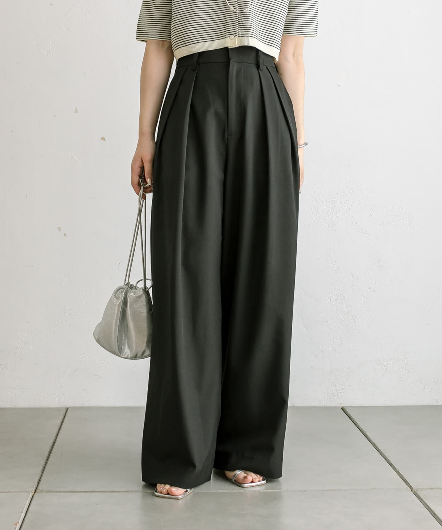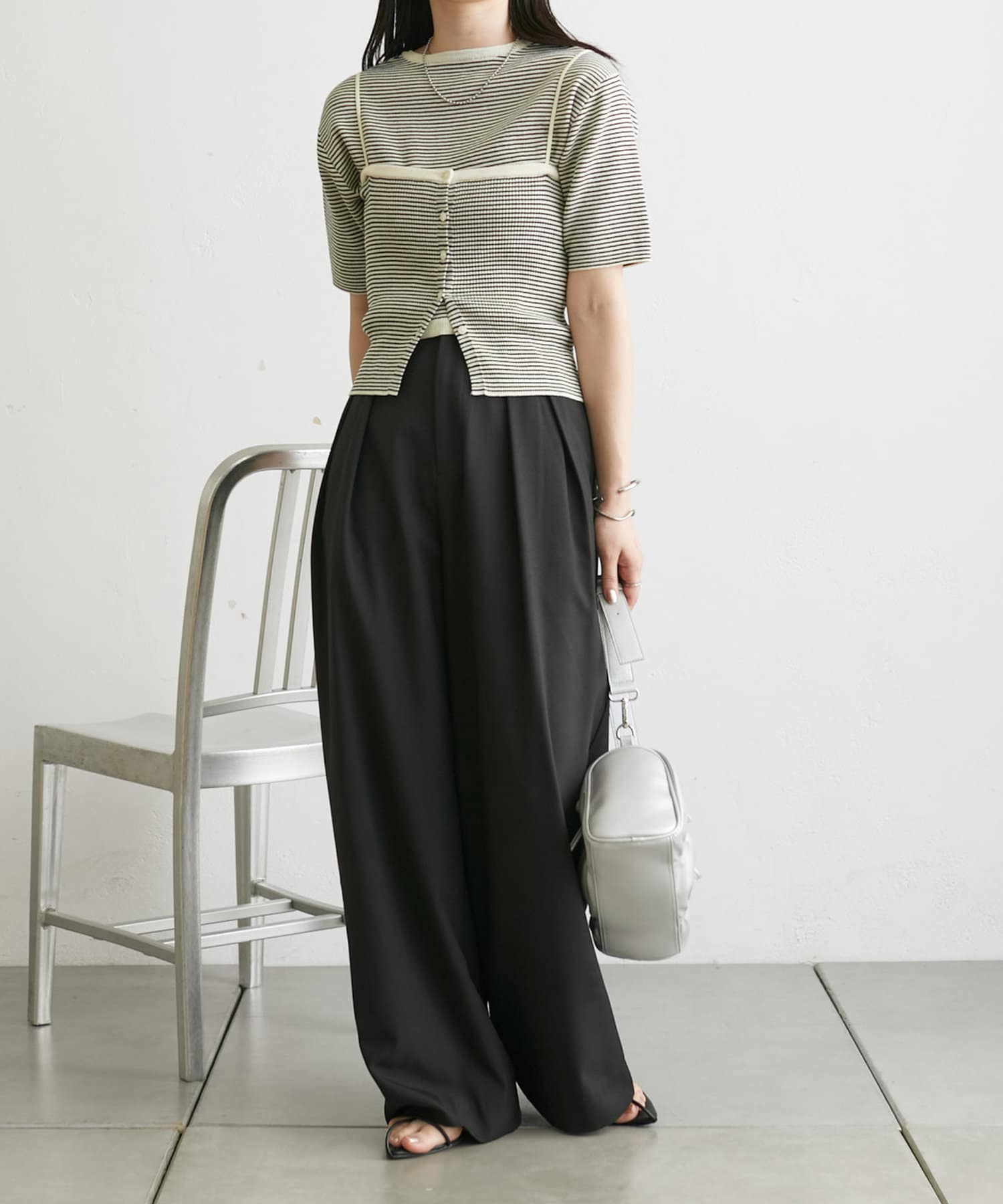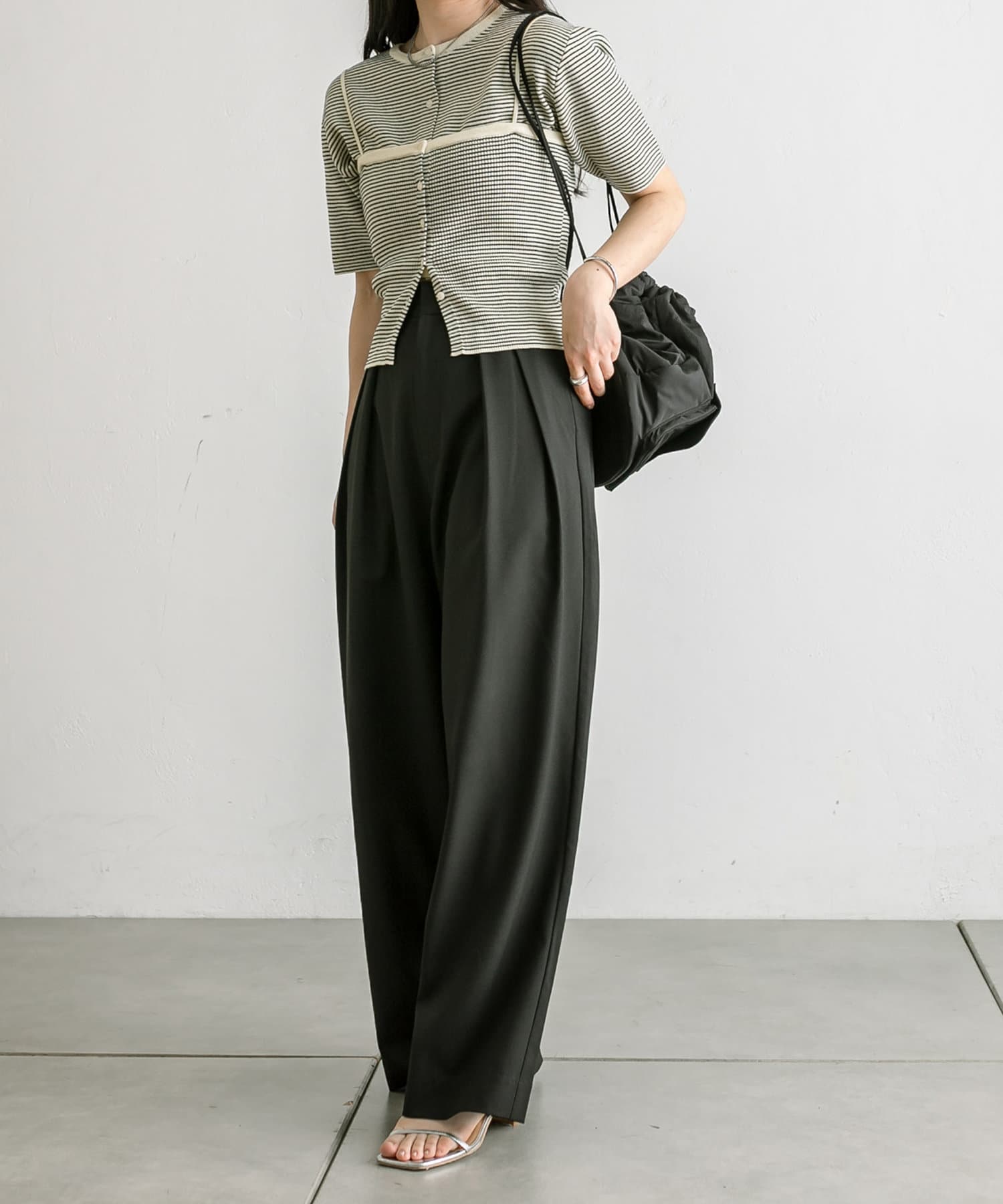 ・ハイウエストなパンツなので短丈のトップスと合わせても相性良く決まります。