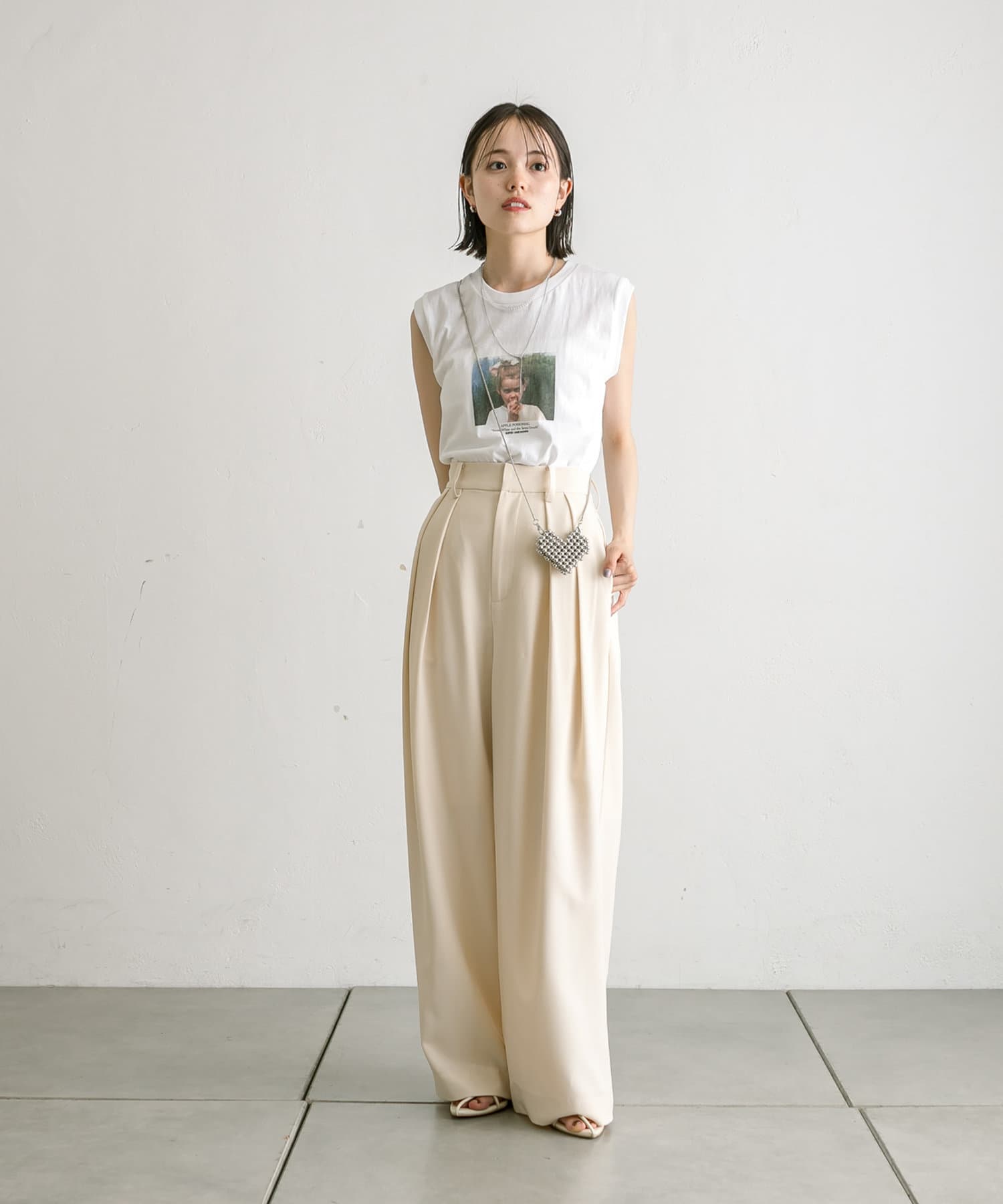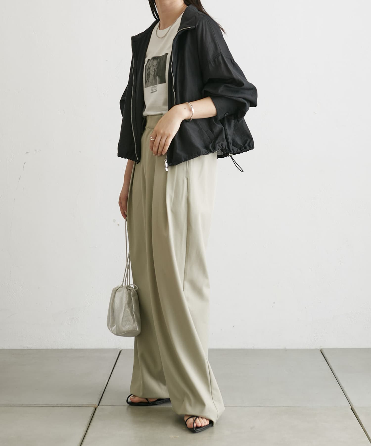 ・ハイウエストなパンツなので短丈のトップスと合わせても相性良く決まります。