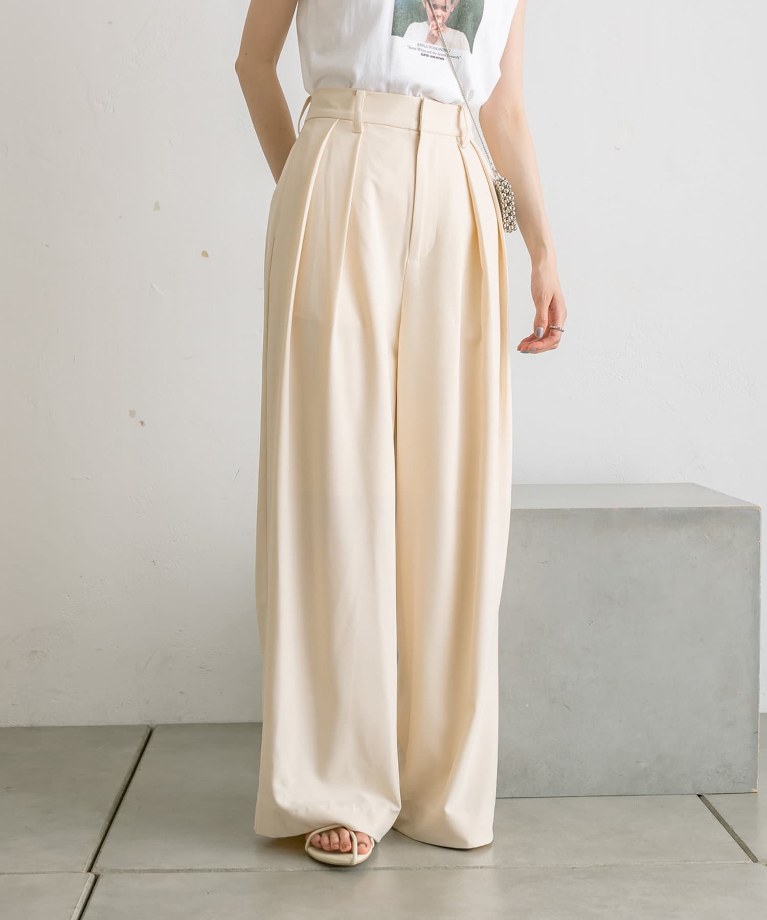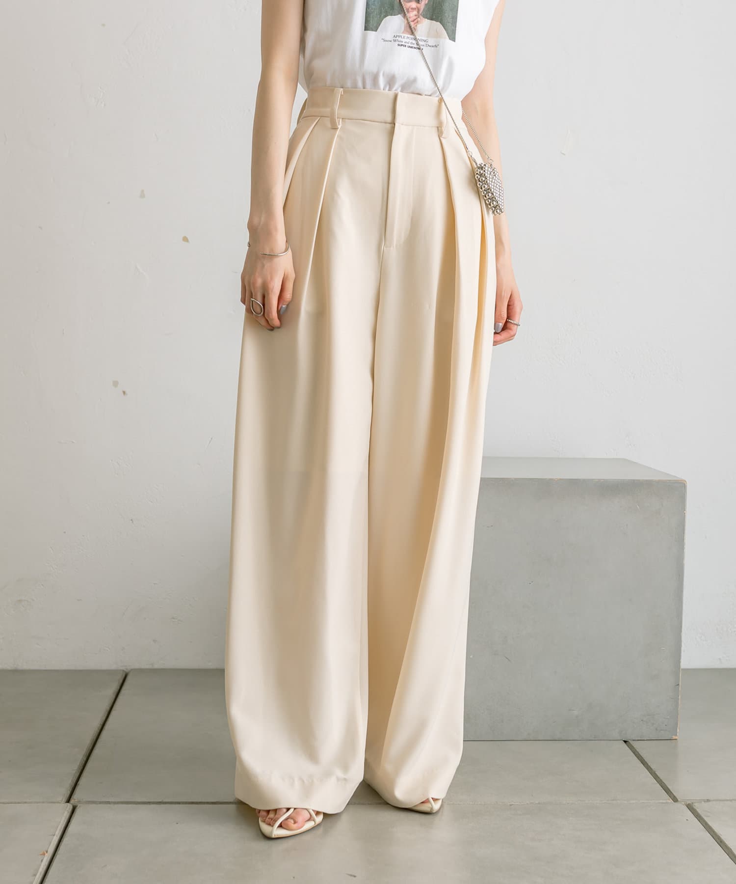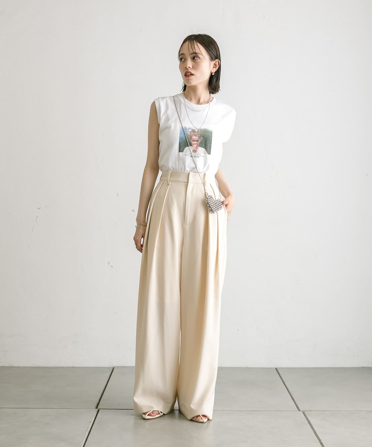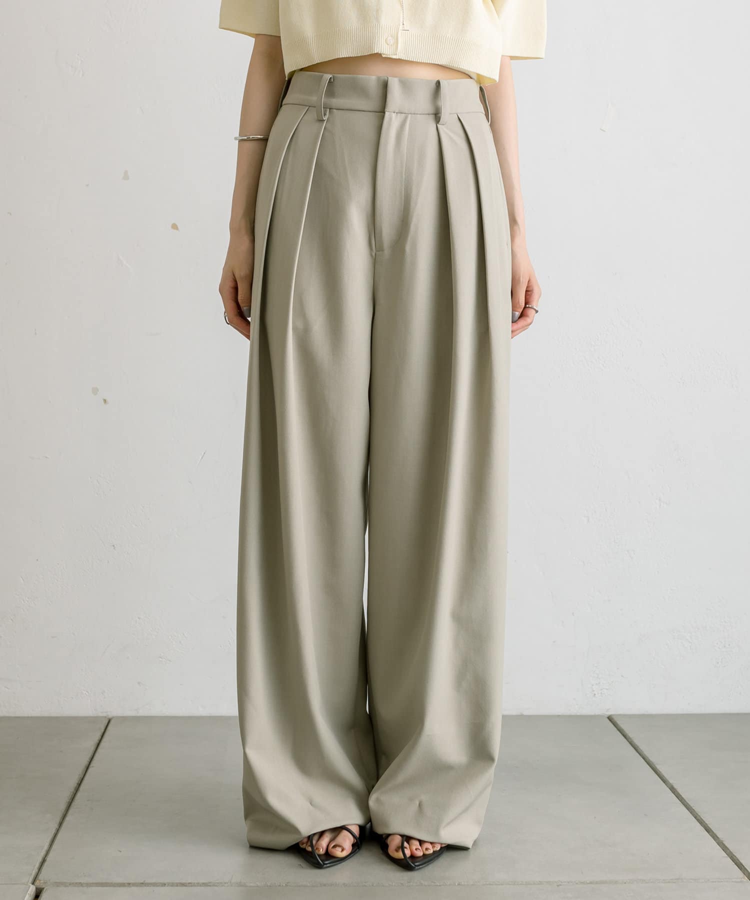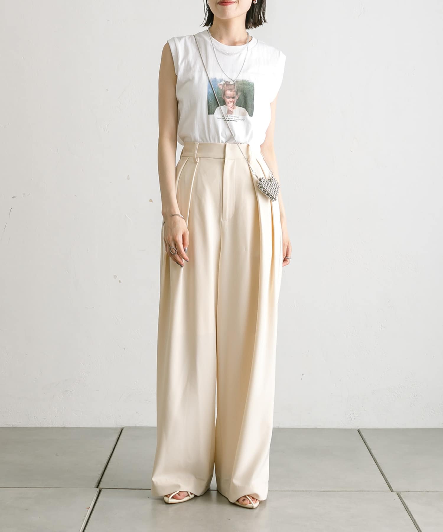 ・シャツ合わせで綺麗めから、カジュアルなスタイリングまで様々な印象で組み合わせていただける万能スラックスです。