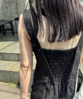 ・肩紐は後ろのボタンで長さを調節して着ていただけます。(3段階の調節可能です)
