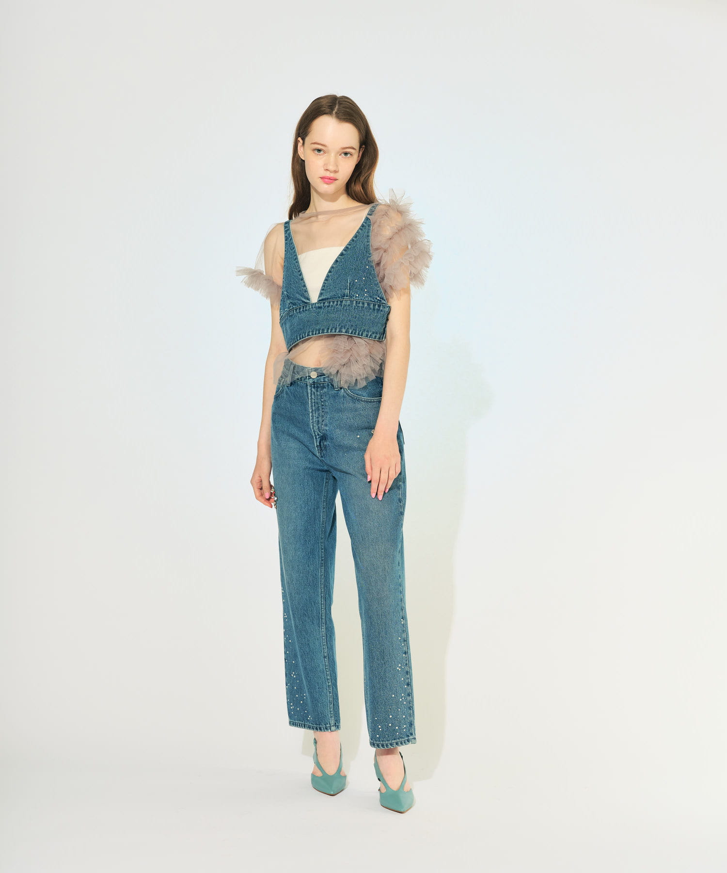 ビジューが目を惹くデニムが登場