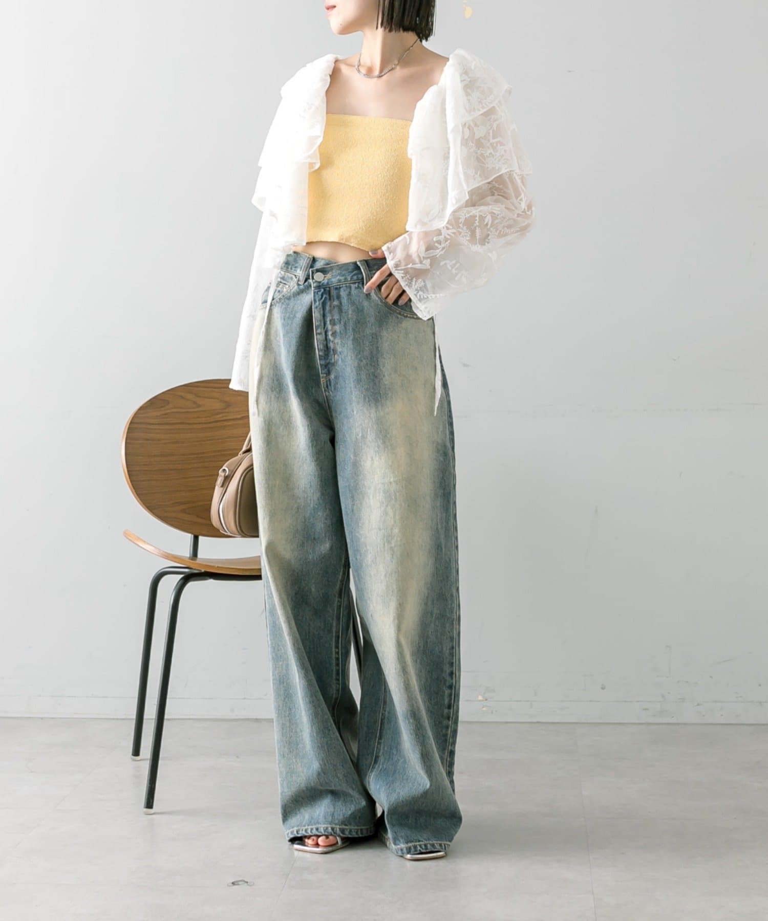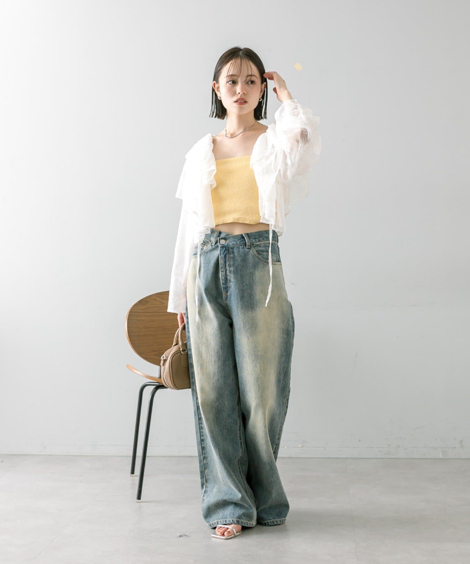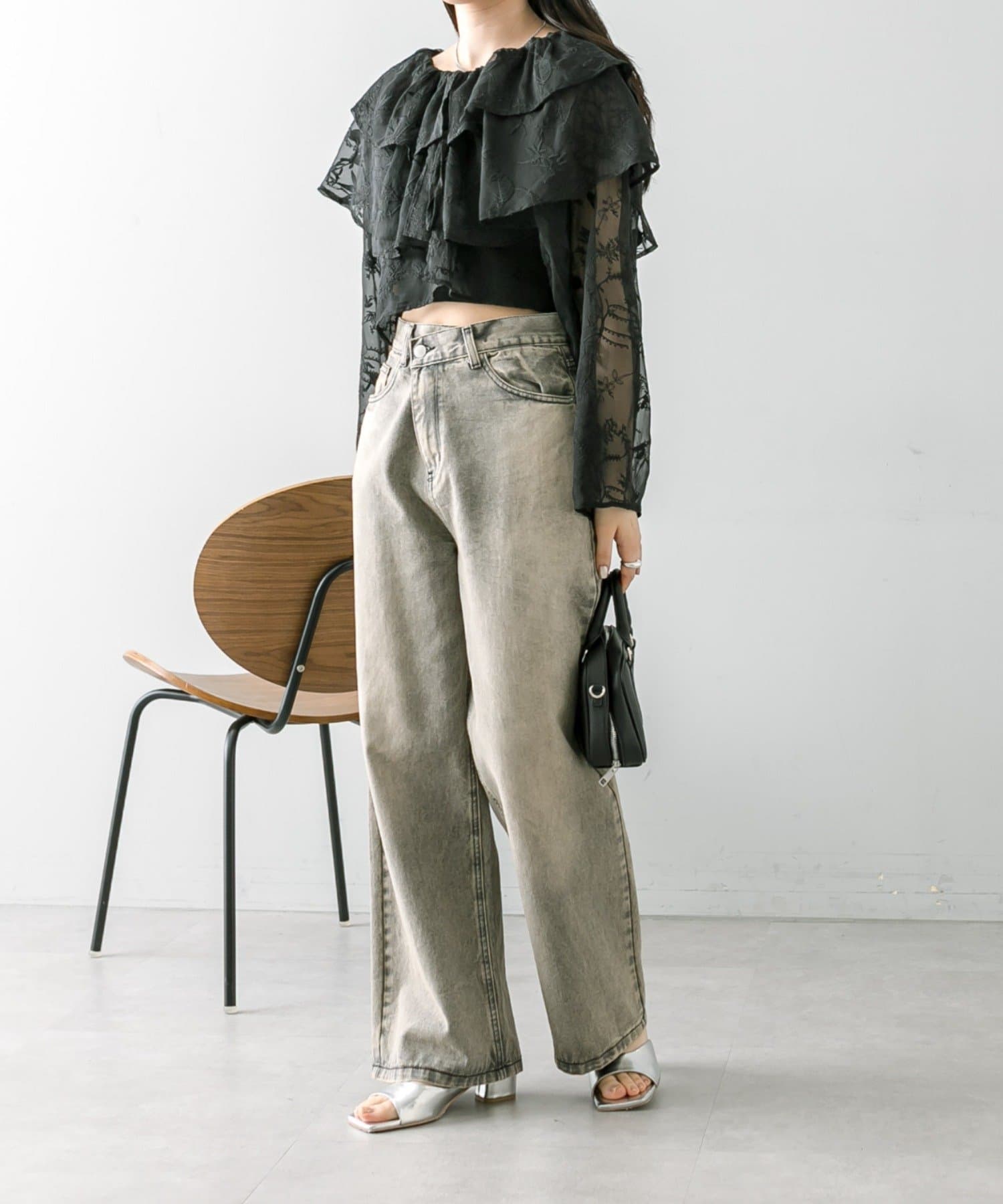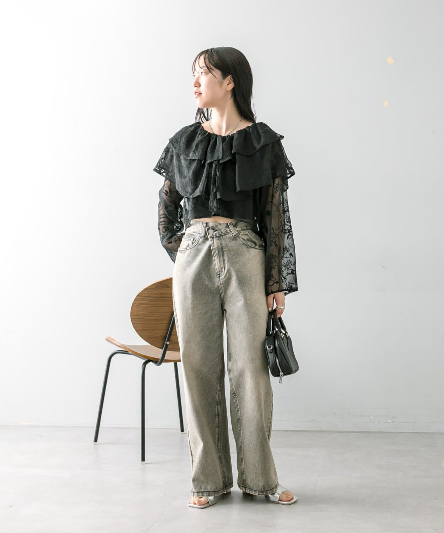 胸元のフリルが春らしい華やかさをプラスしてくれるブラウス。