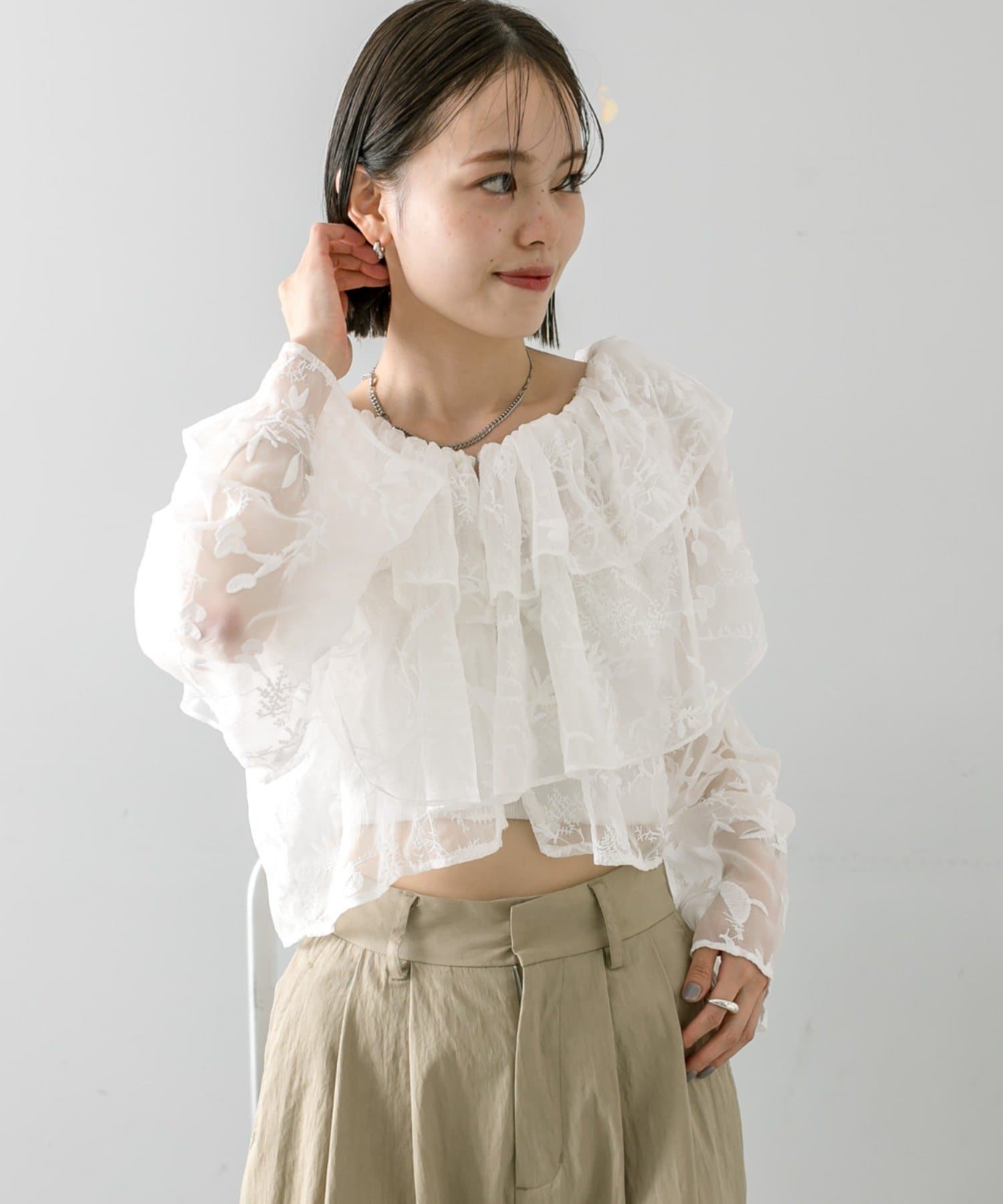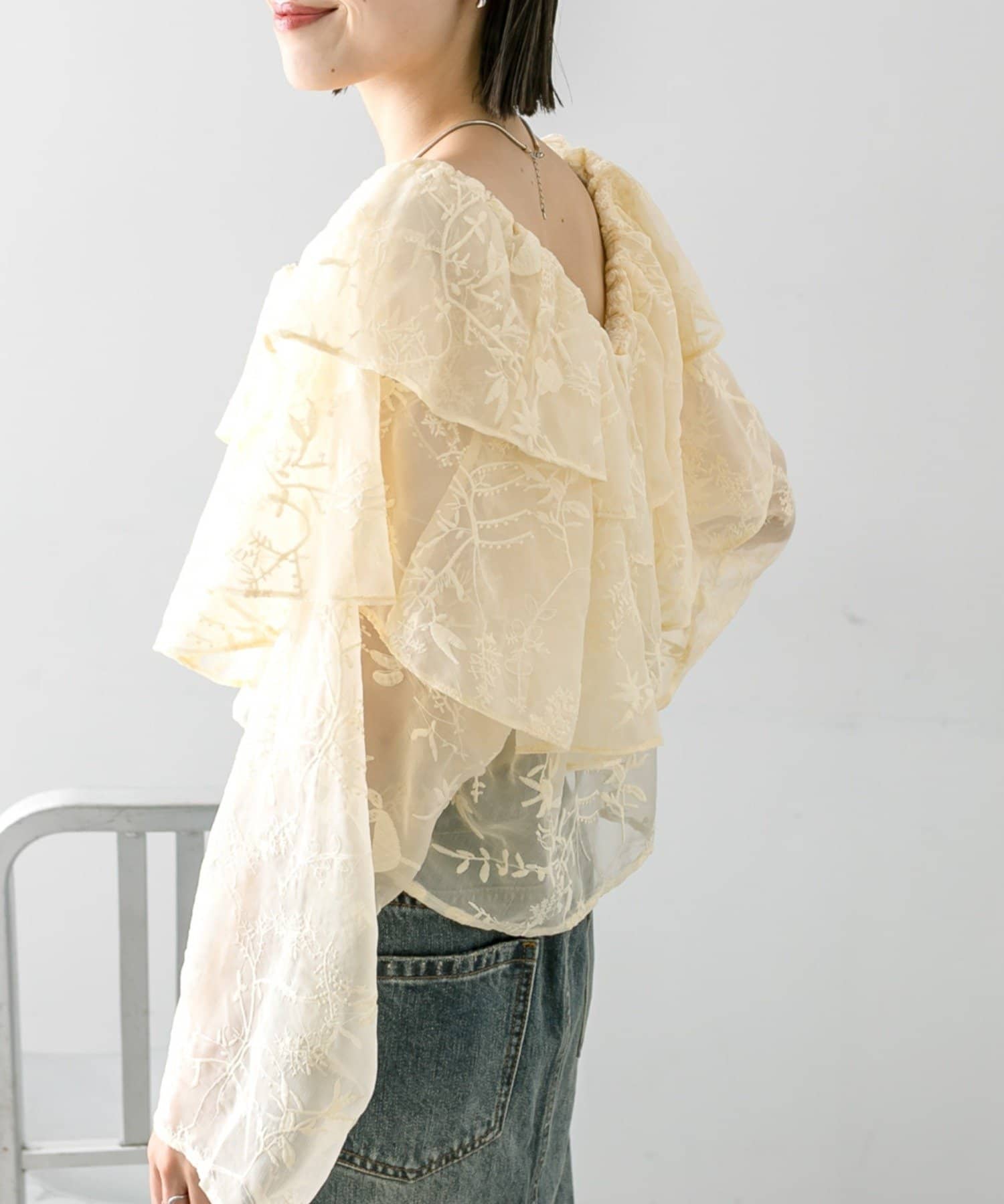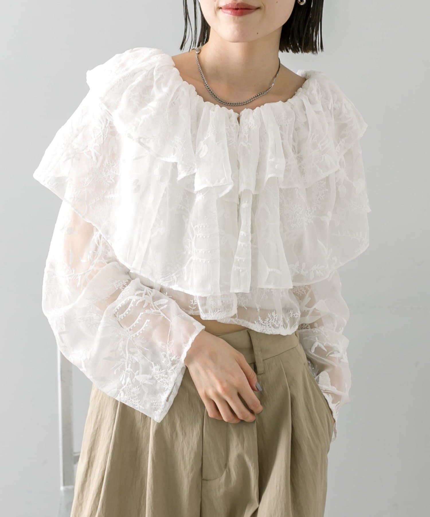 ・大きめのフリルがポイントのブラウスが3色展開で登場。