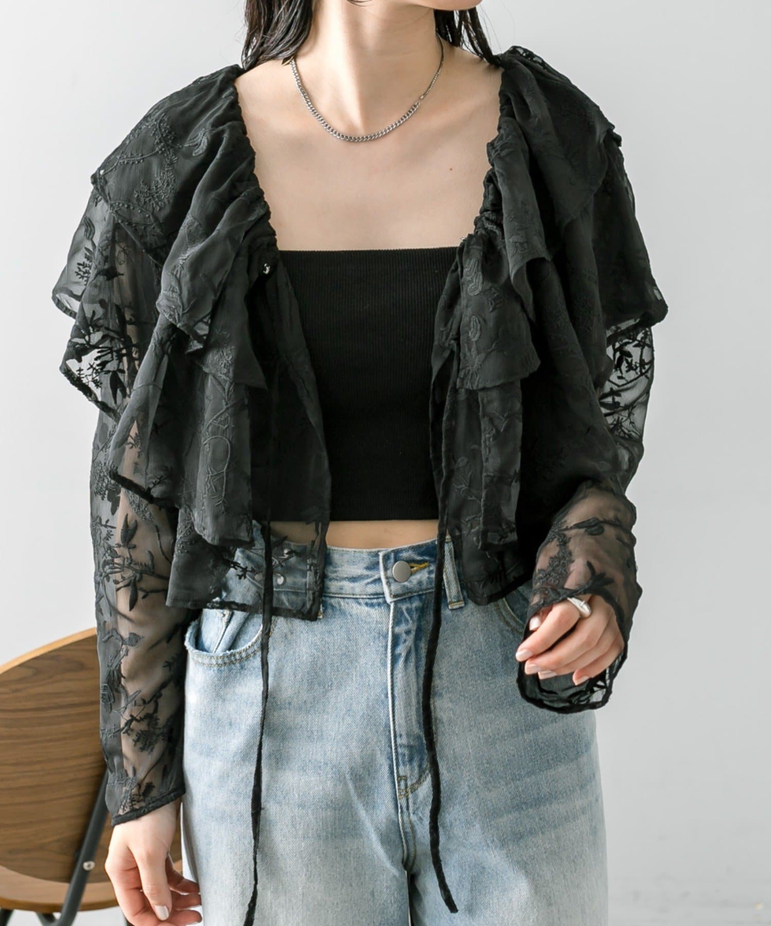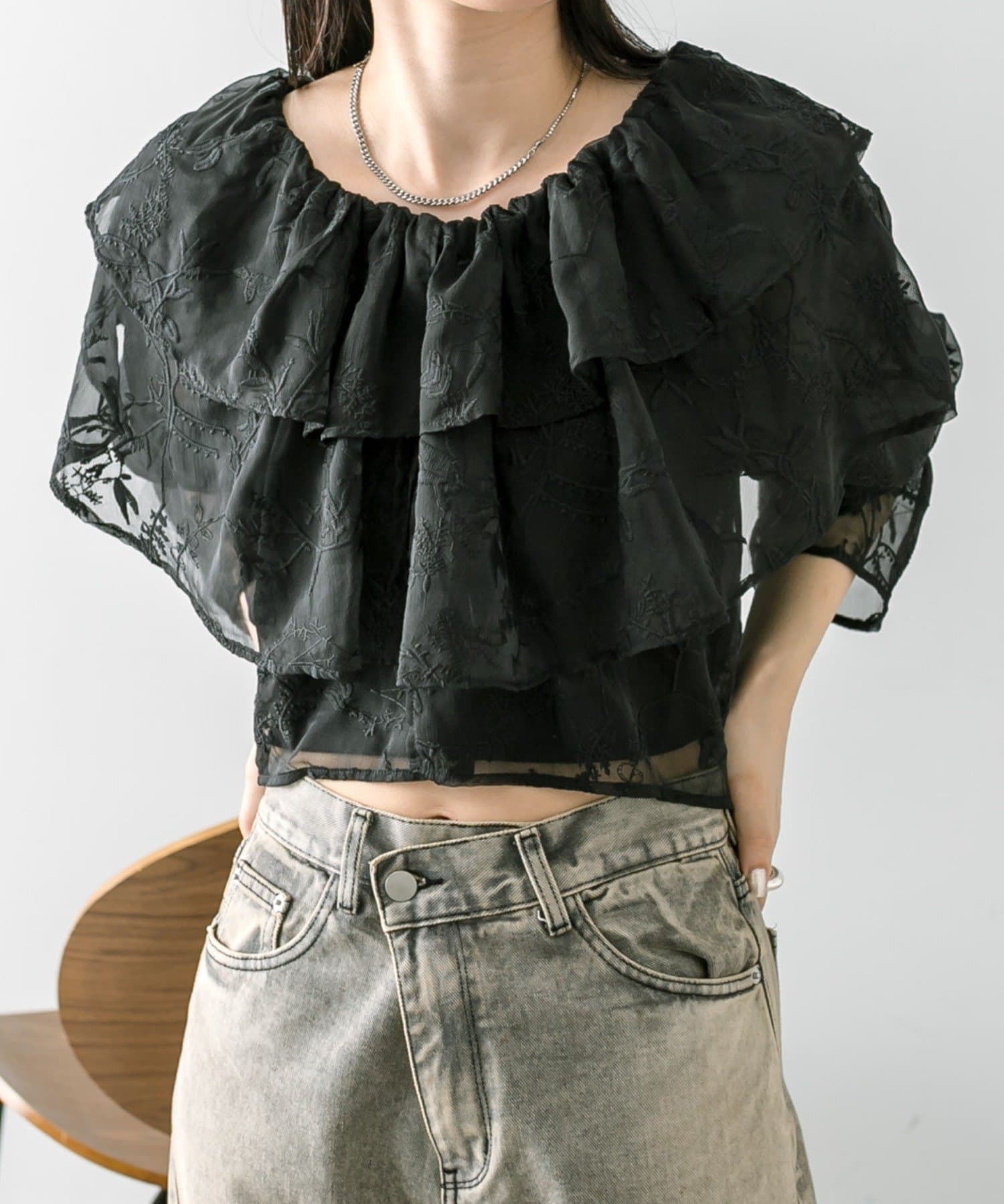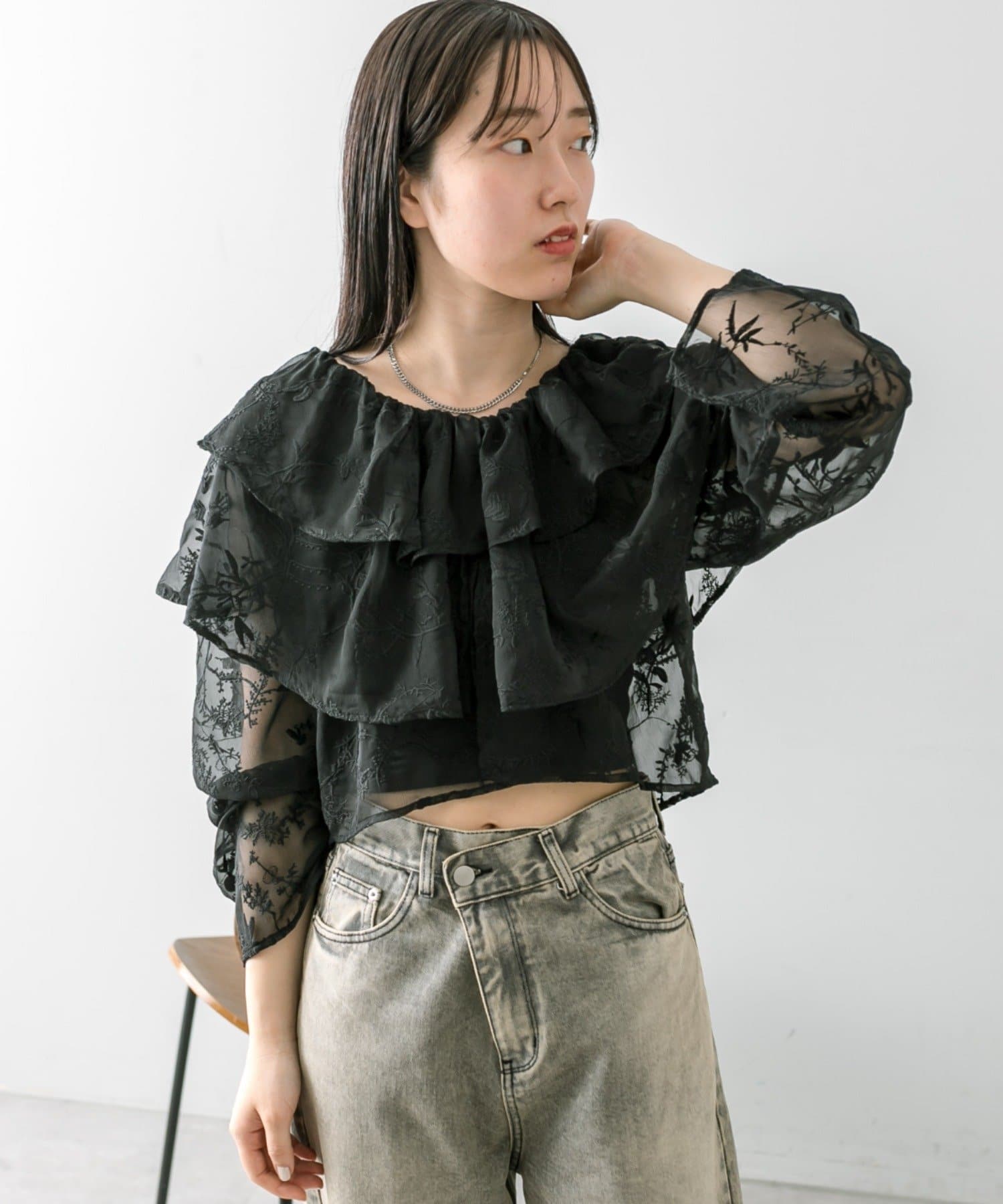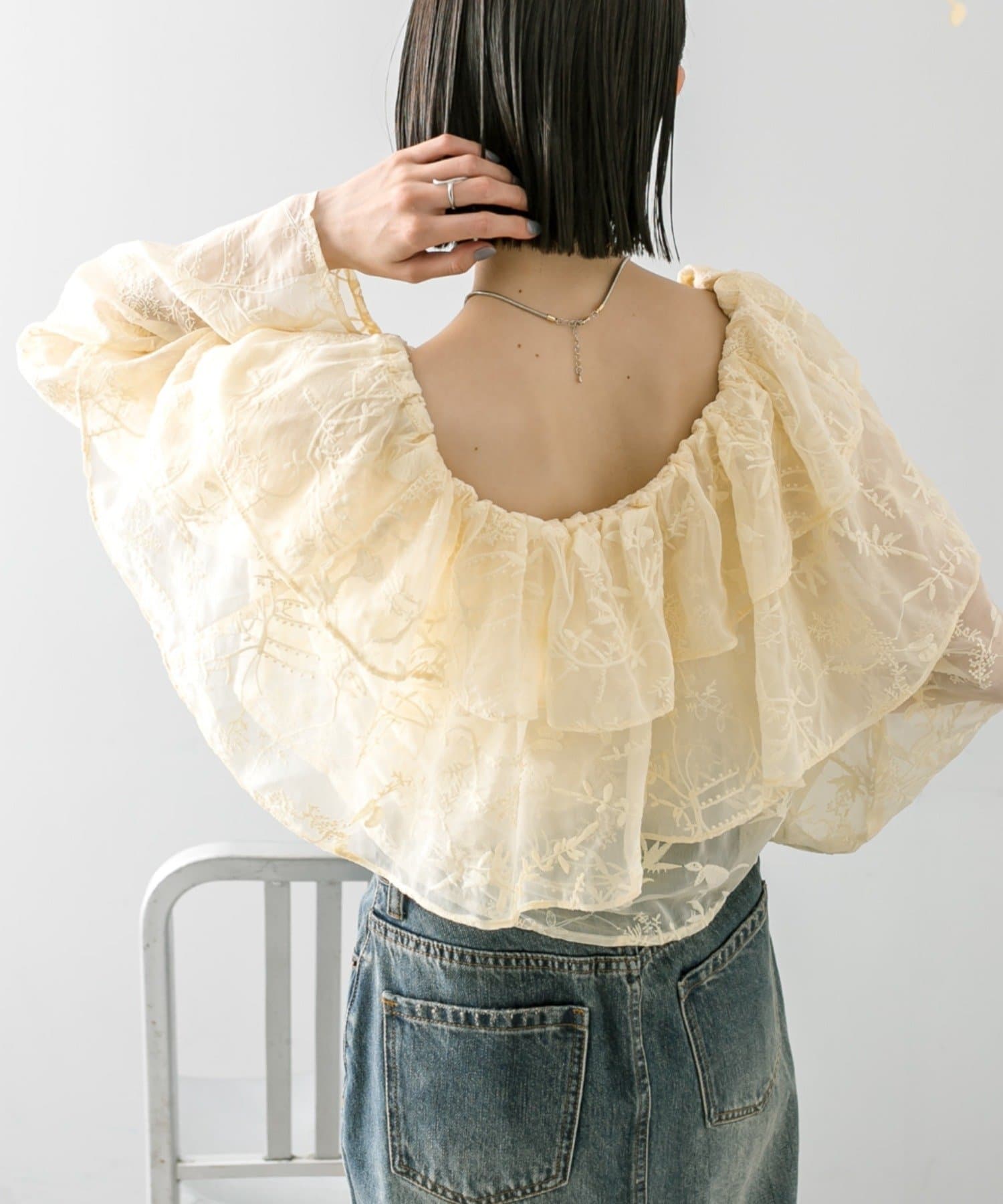 ・大きめのフリルがポイントのブラウスが3色展開で登場。