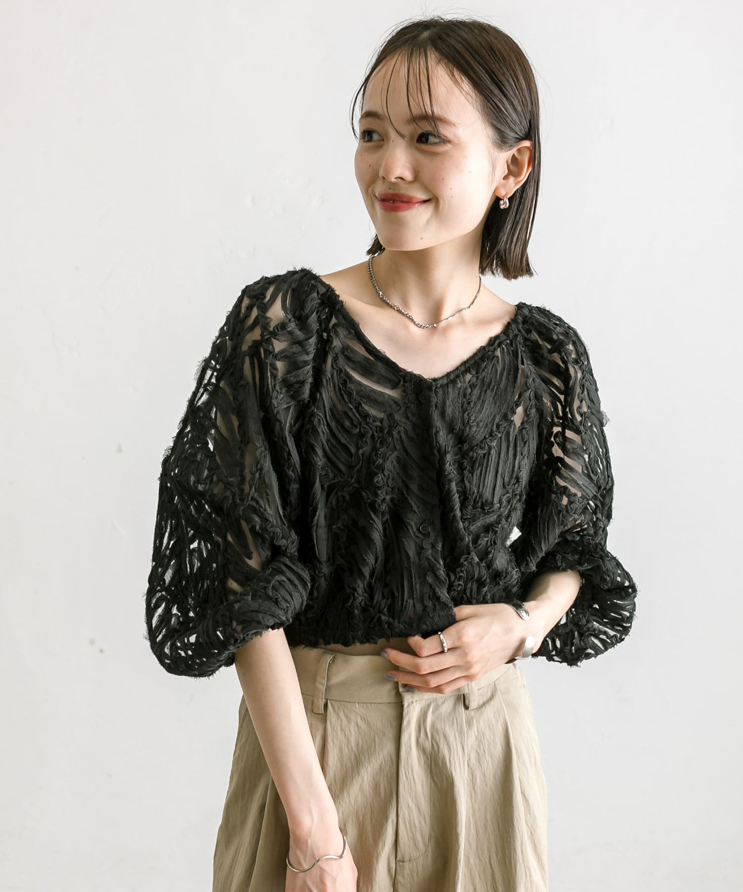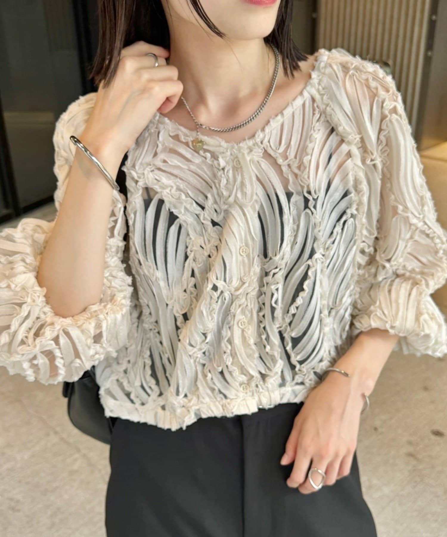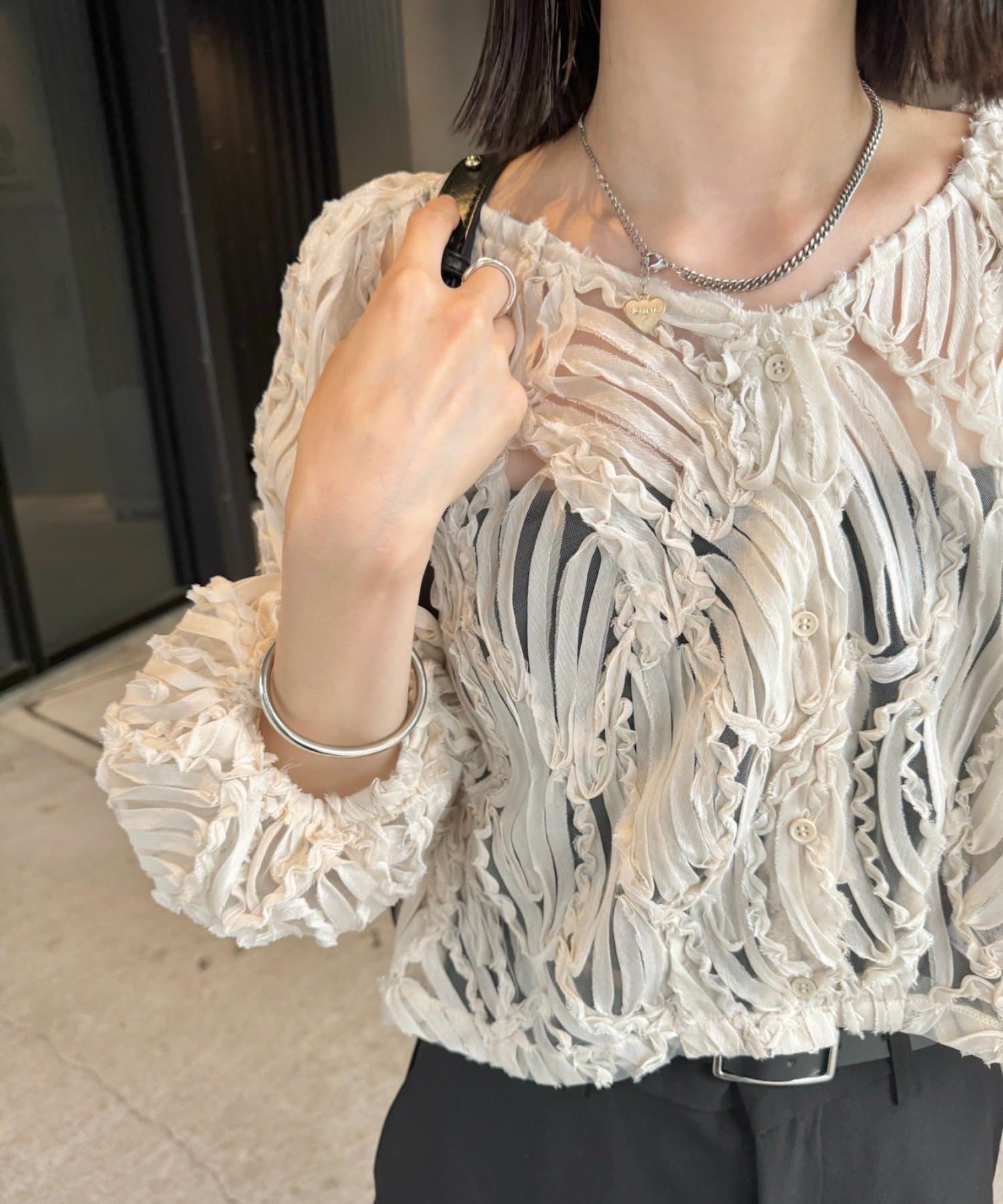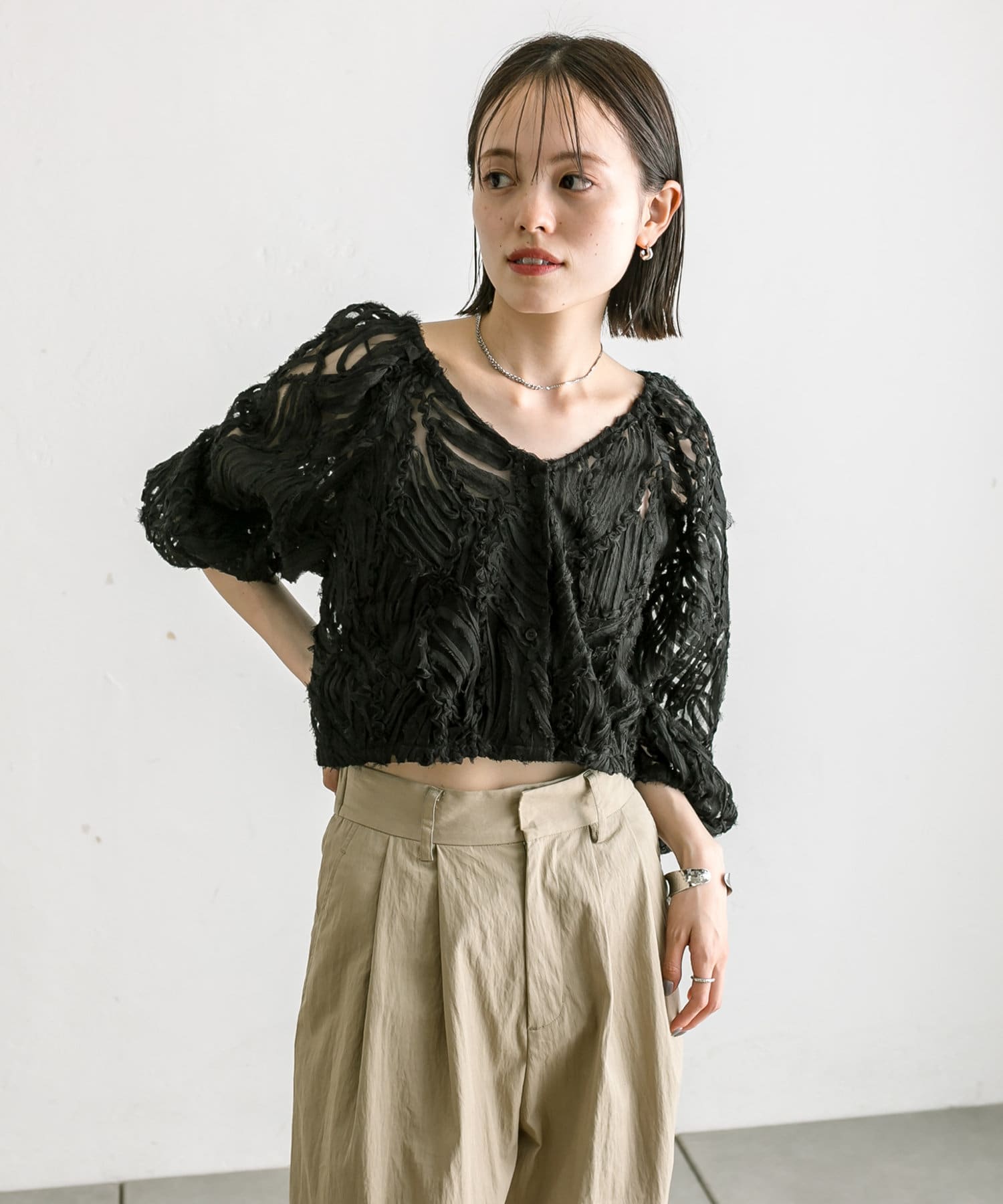 ・透け感のあるトップスなので、インナー使いも楽しんでいただけます。
