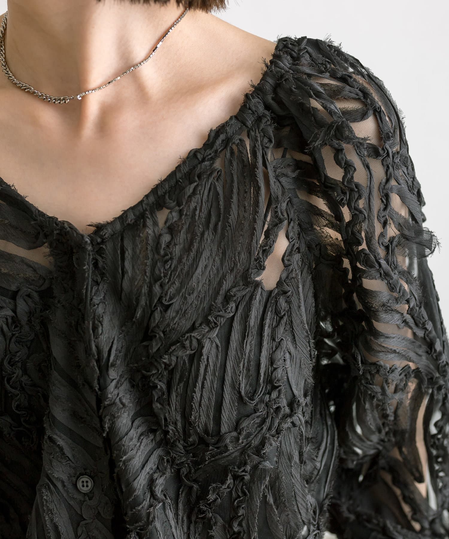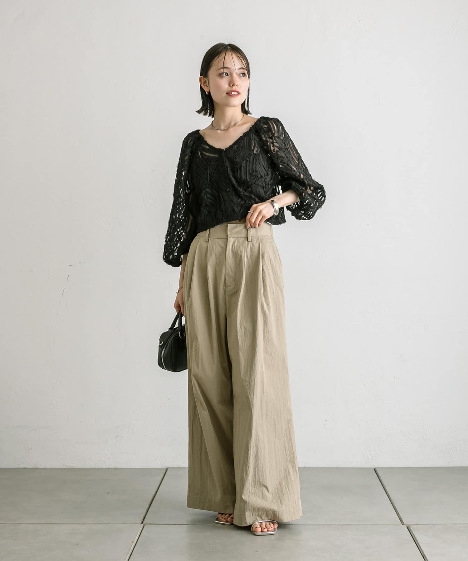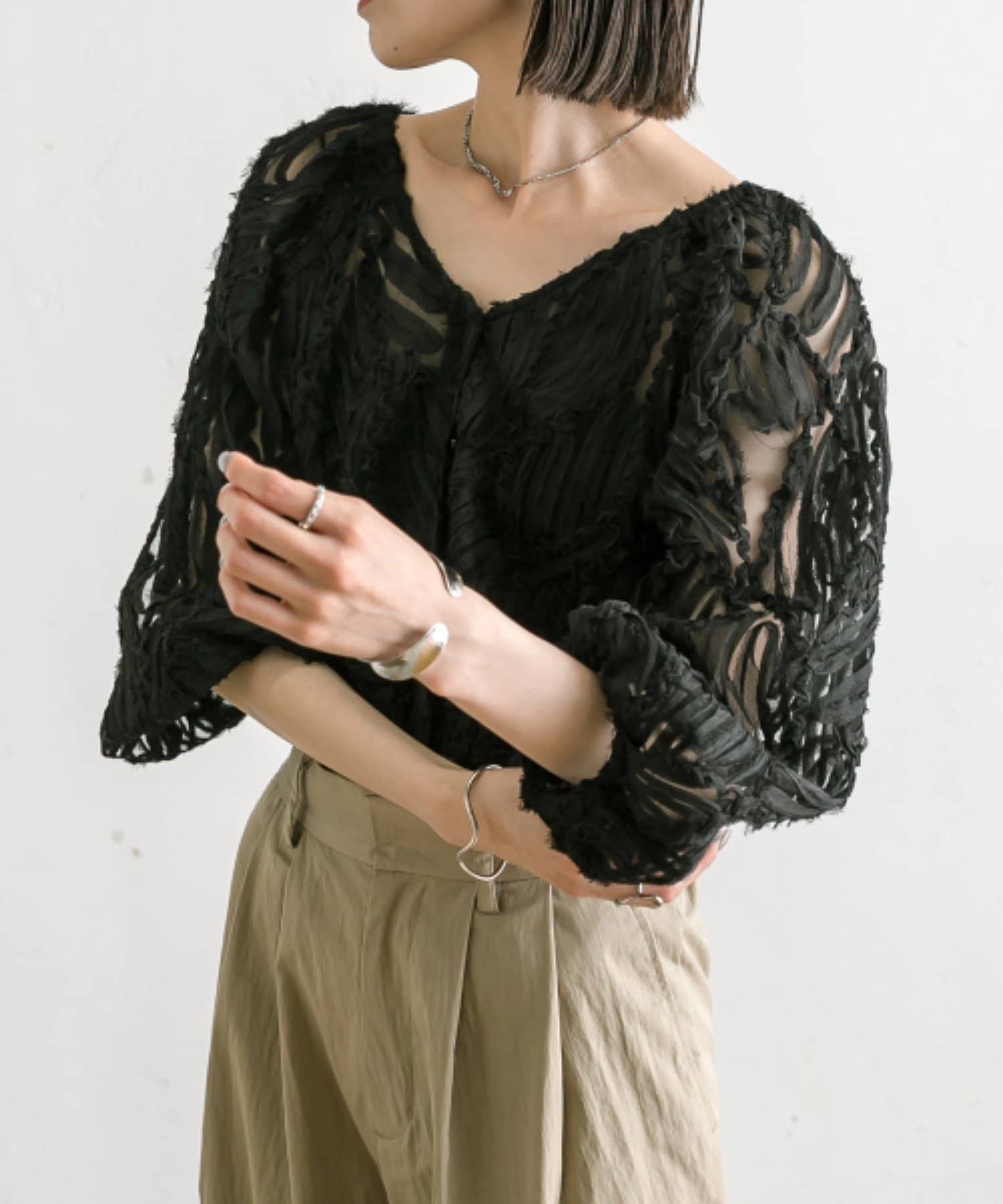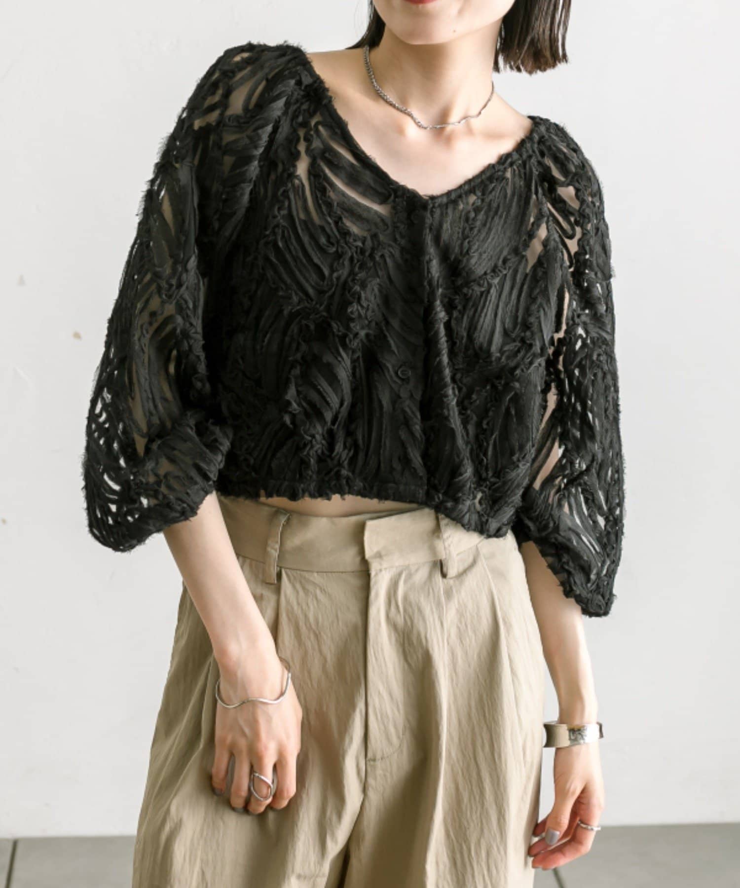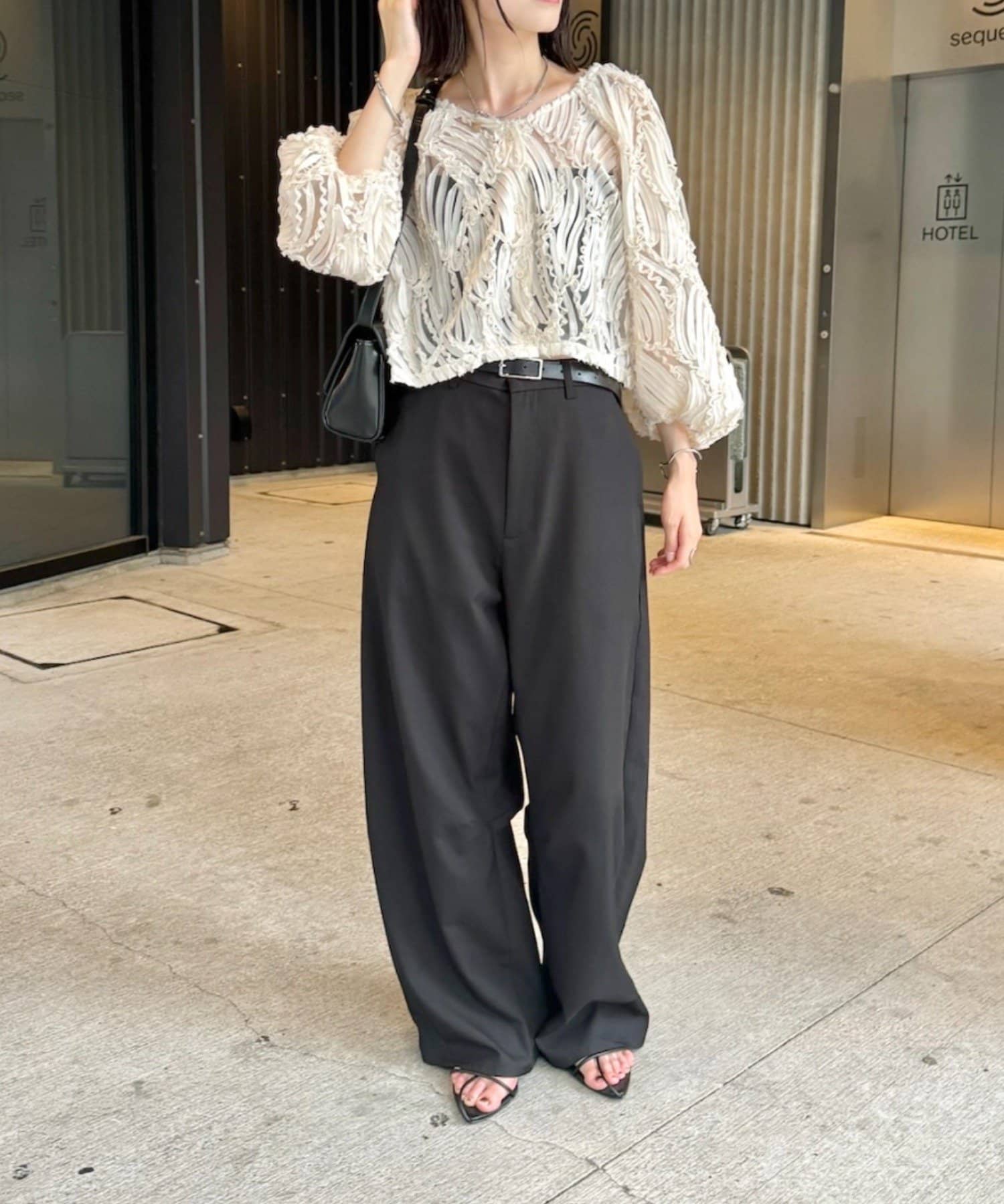 ・透け感のあるトップスなので、インナー使いも楽しんでいただけます。