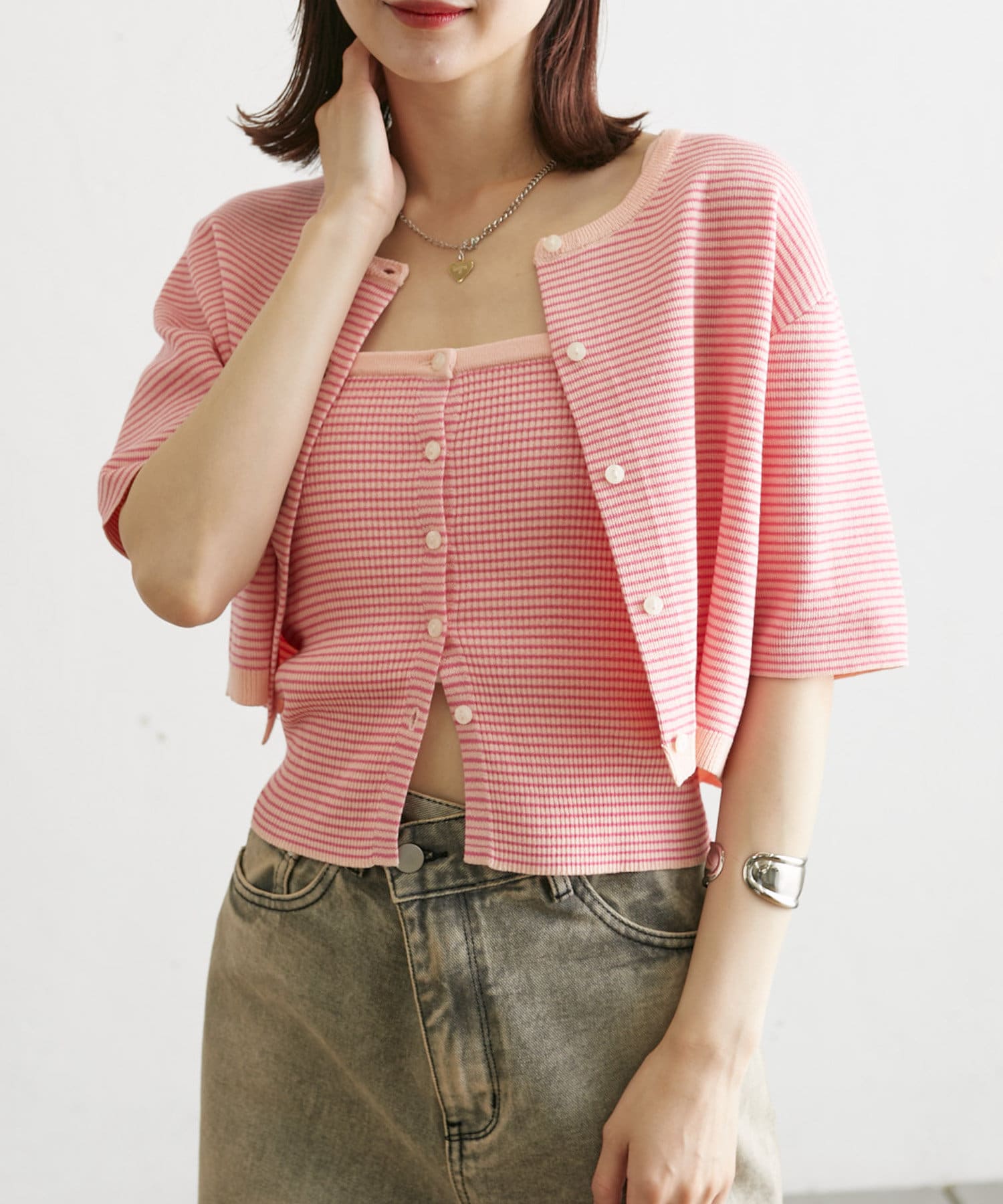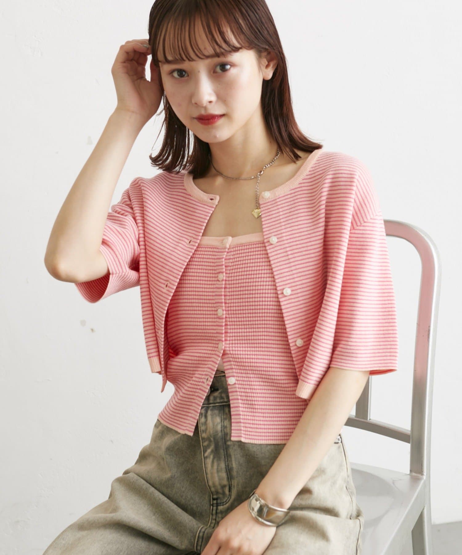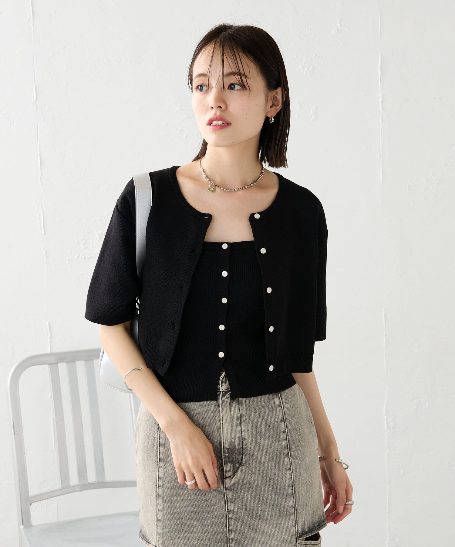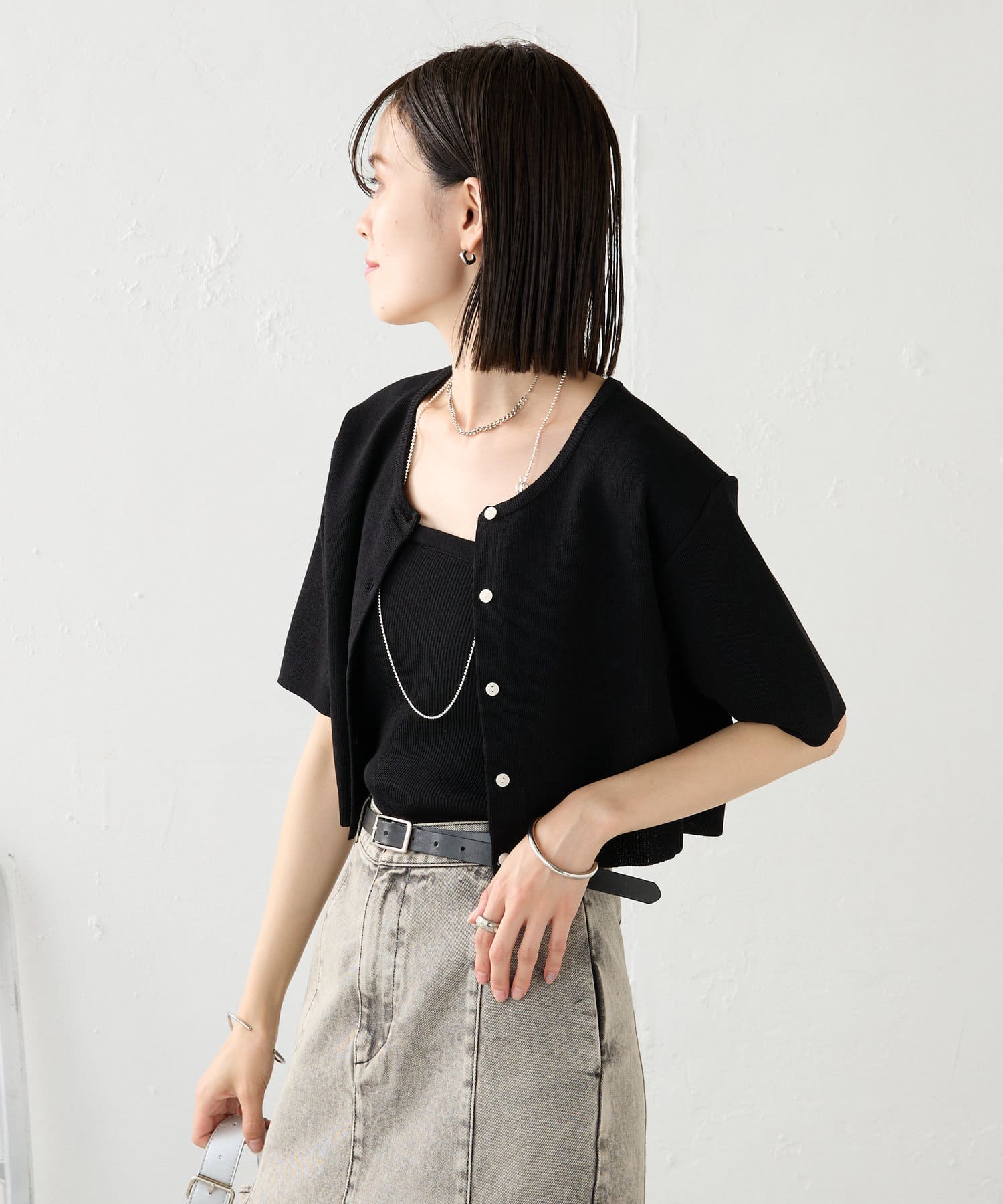 【新色BLKが追加】キャミソールとカーディガンがセットになった魅力あるトップスが登場!