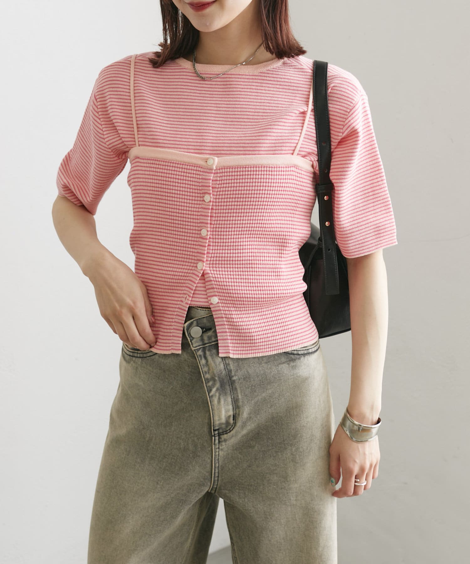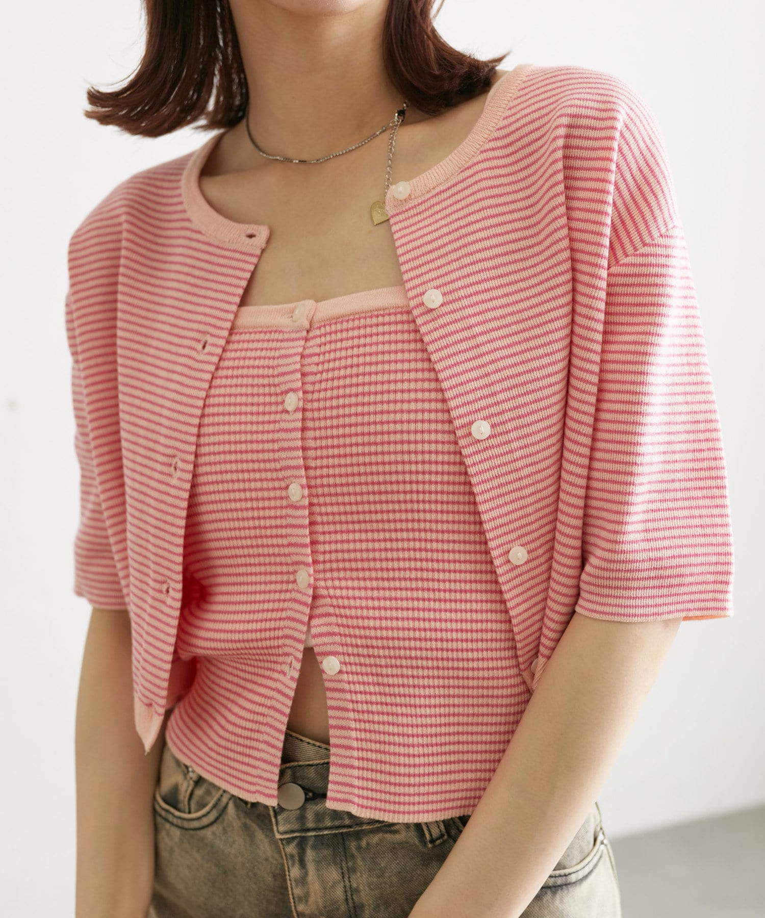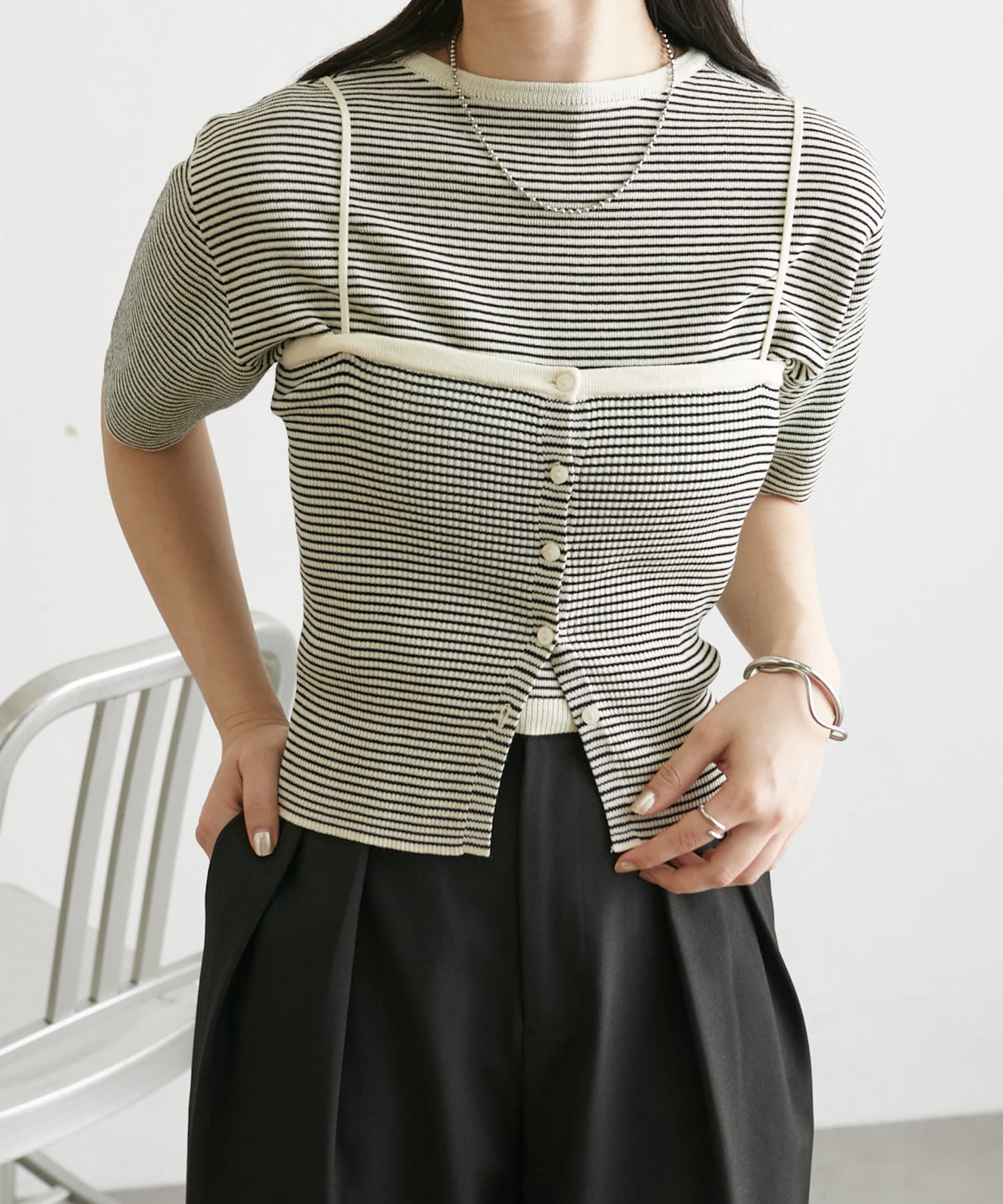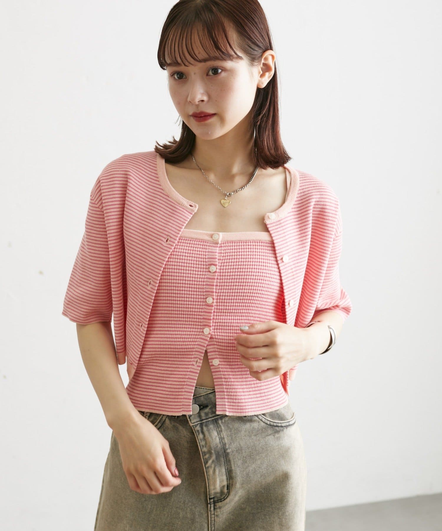 【新色BLKが追加】キャミソールとカーディガンがセットになった魅力あるトップスが登場!
