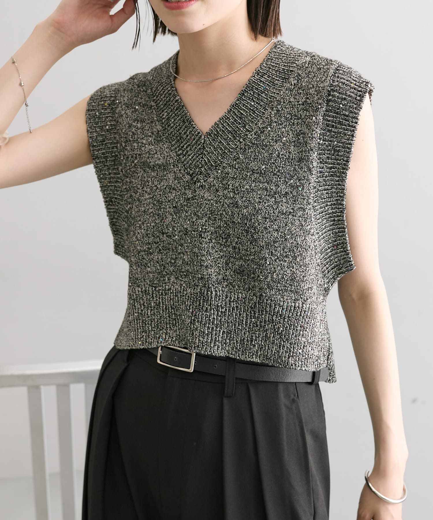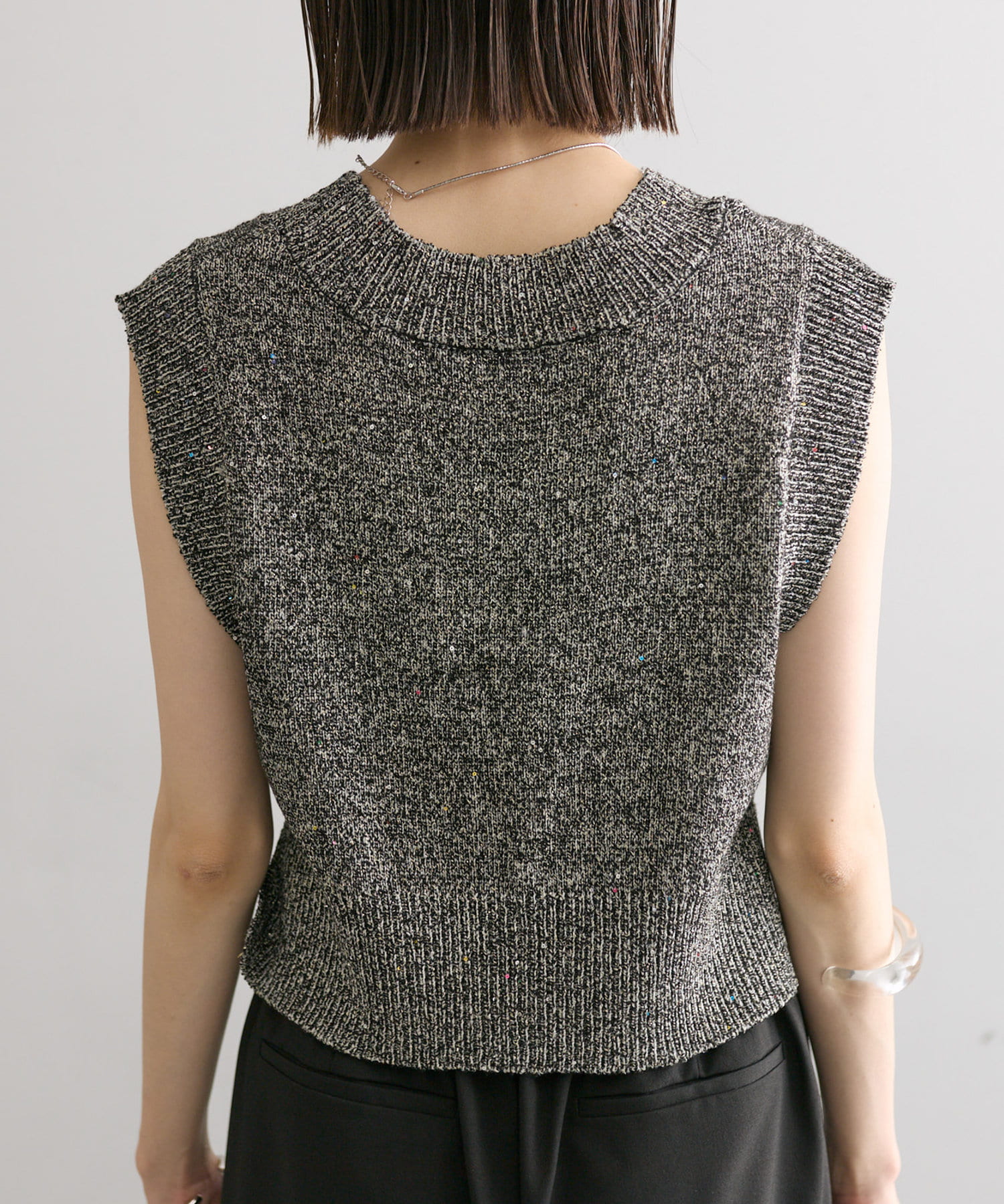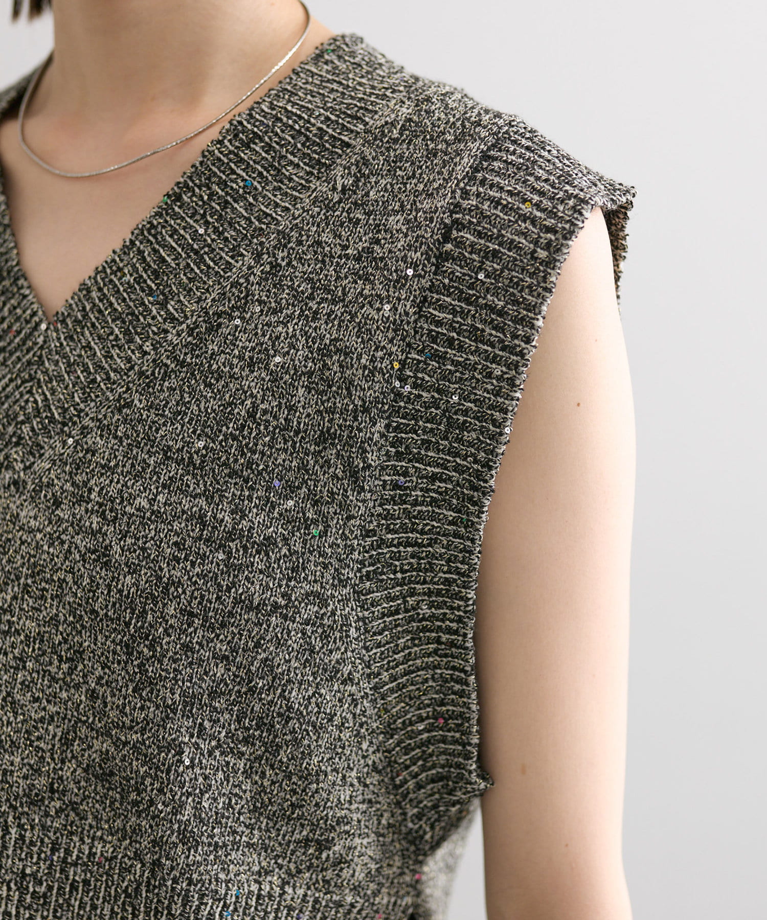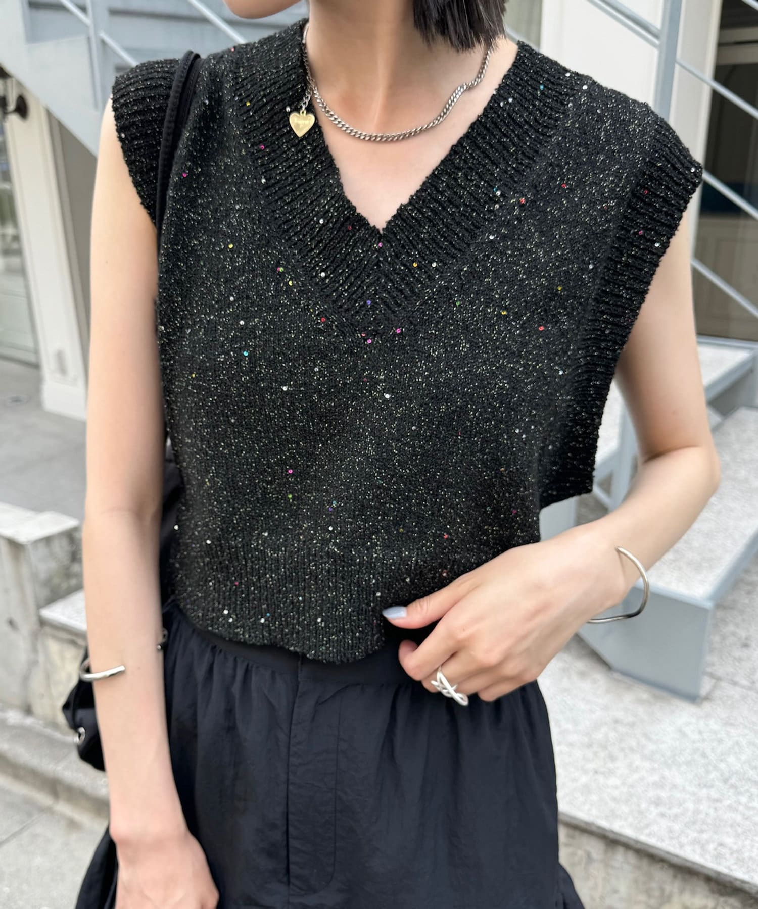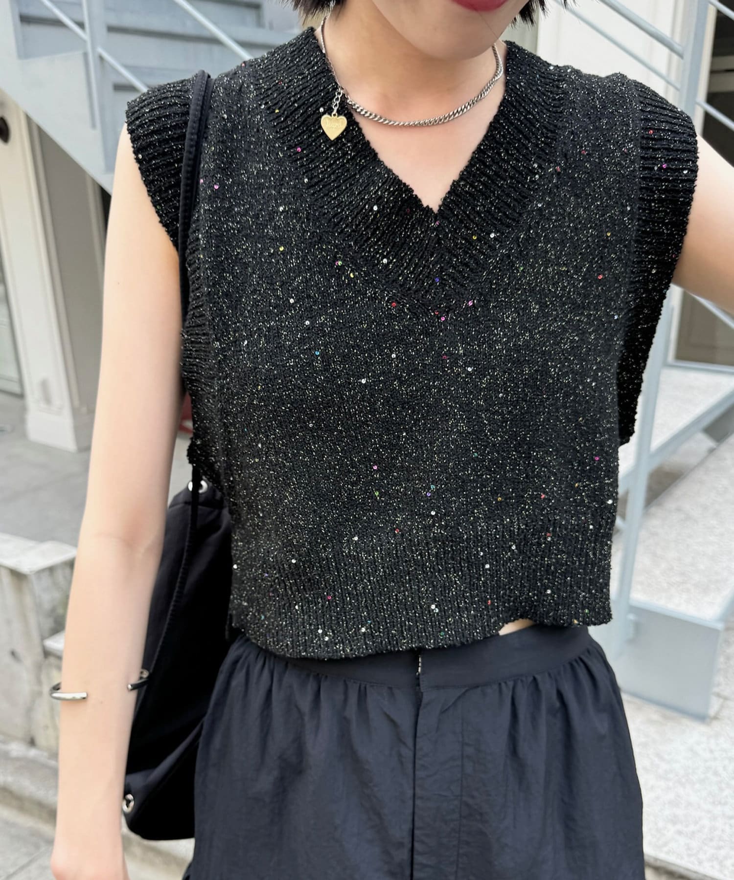 【EC限定カラーあり/BRN・BLK2】スパンコールニットベスト