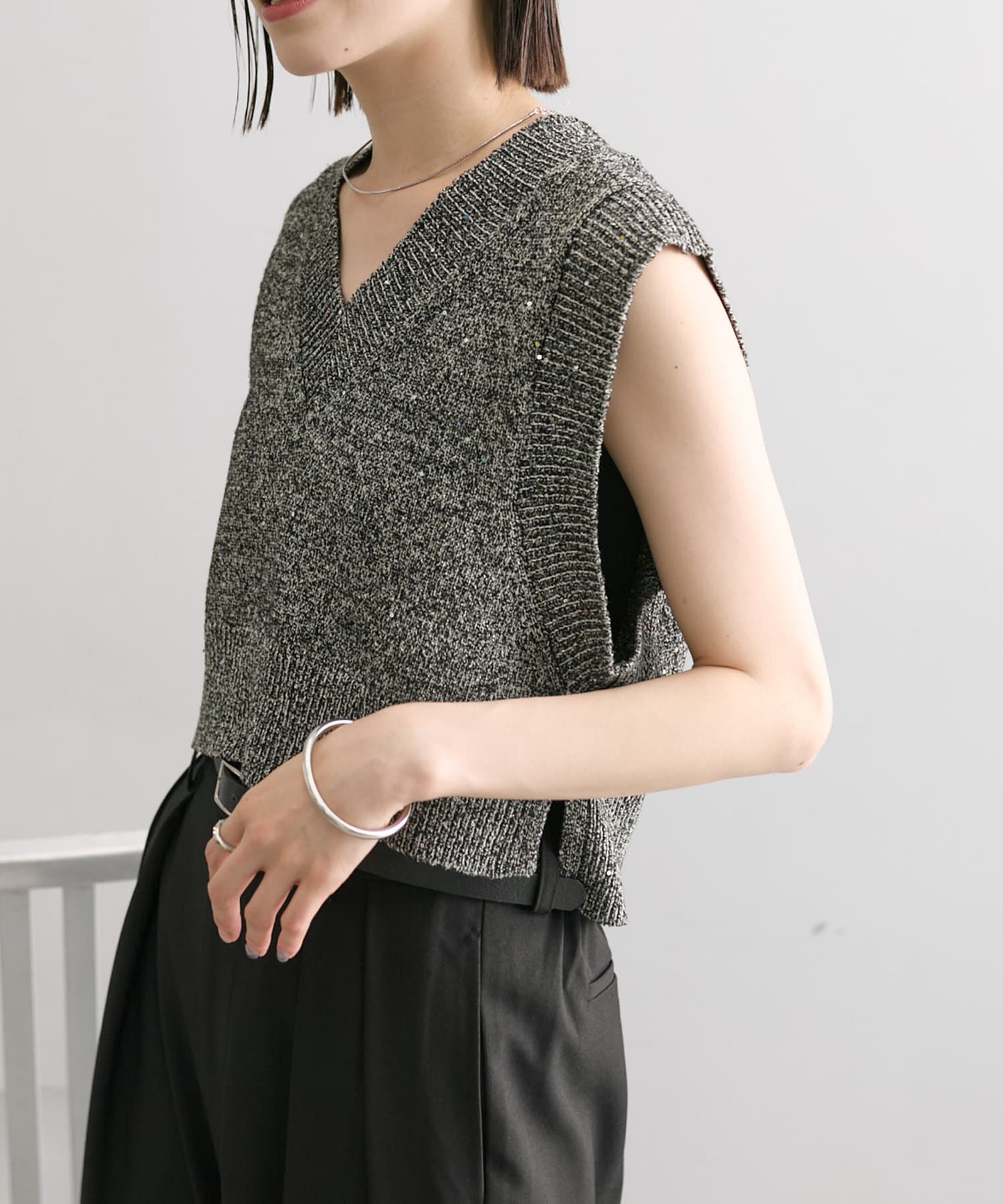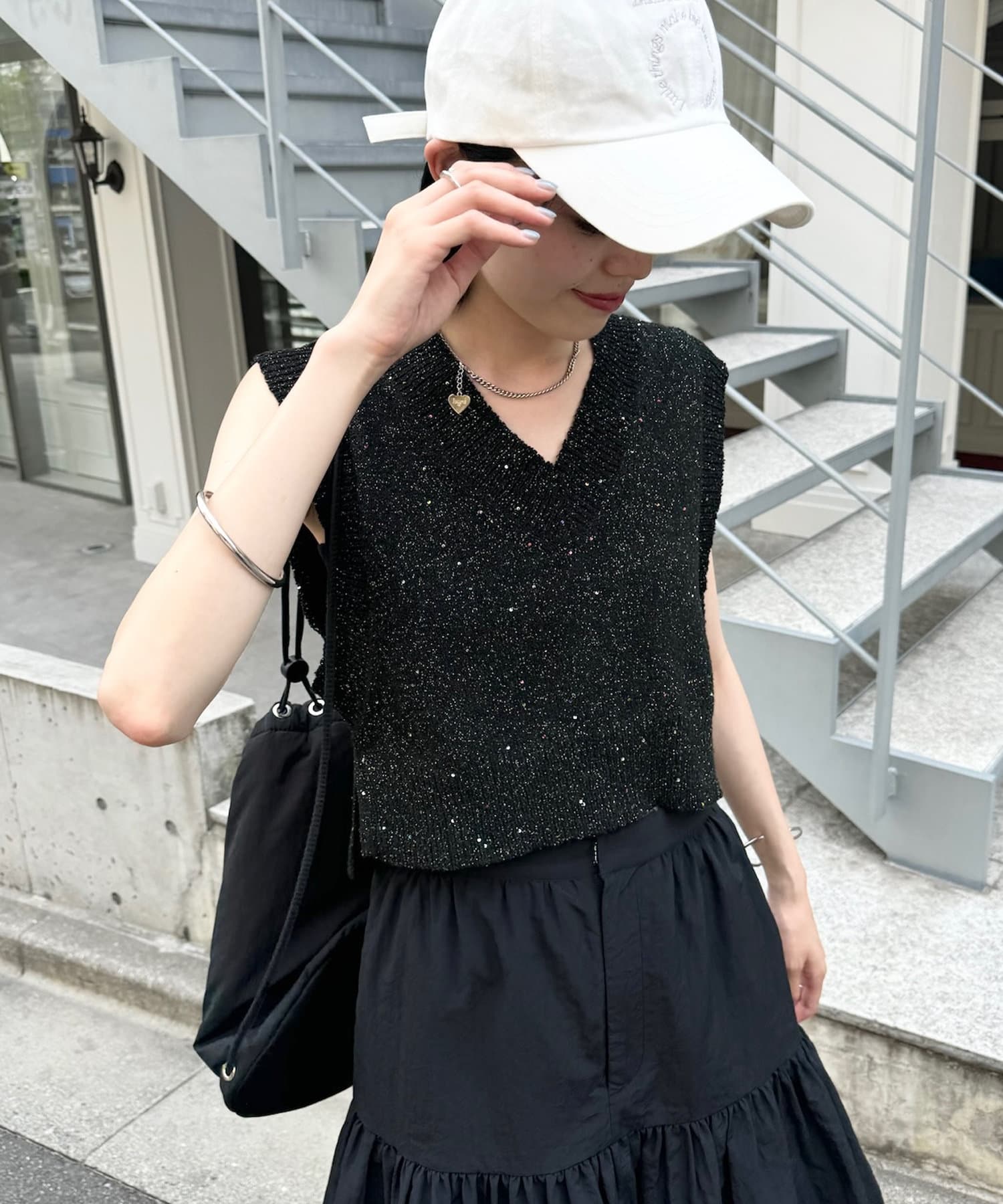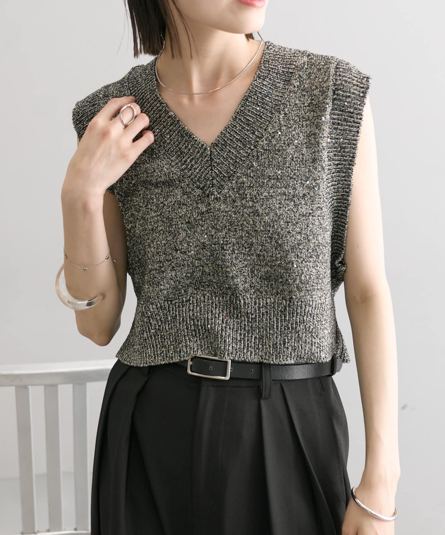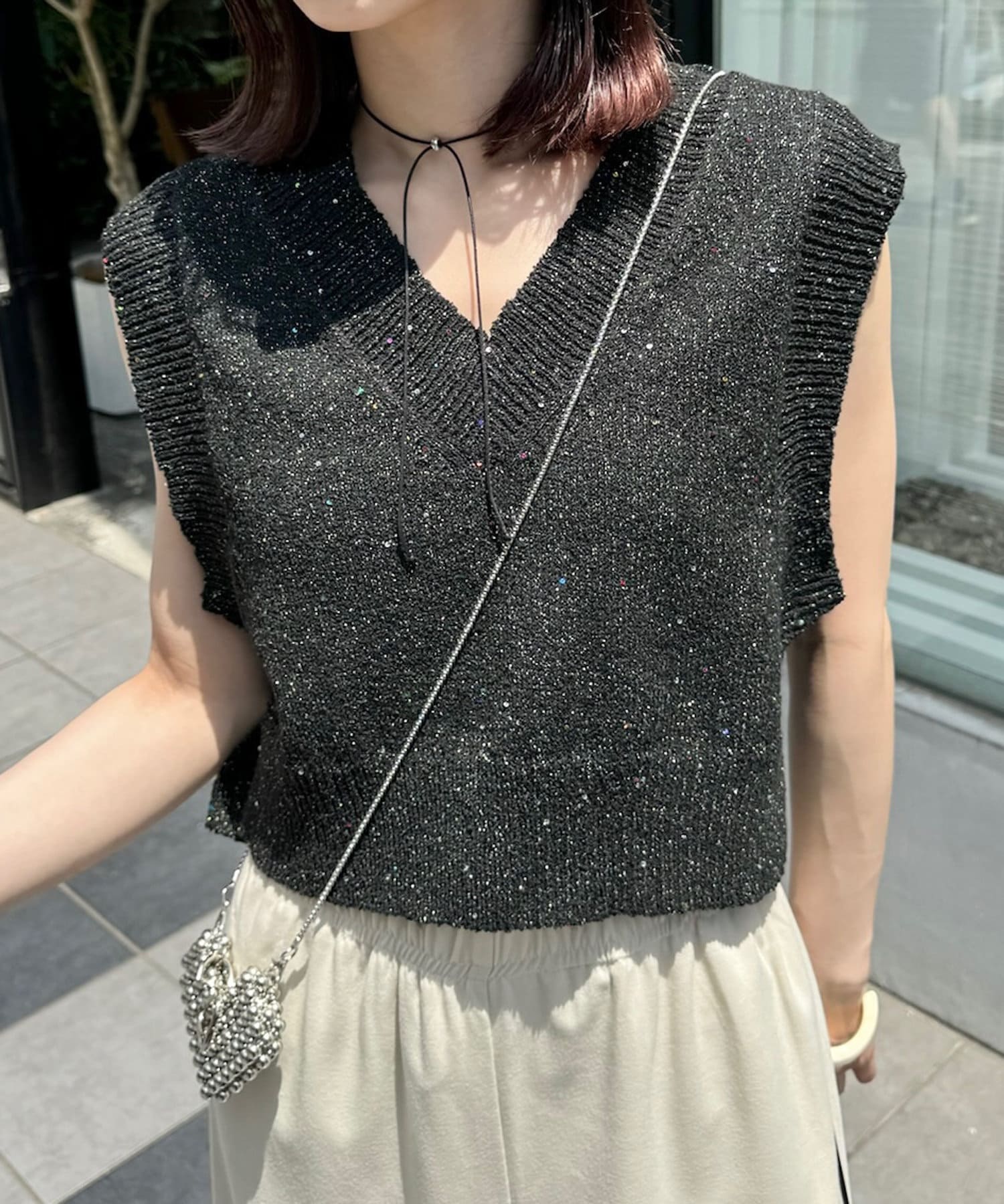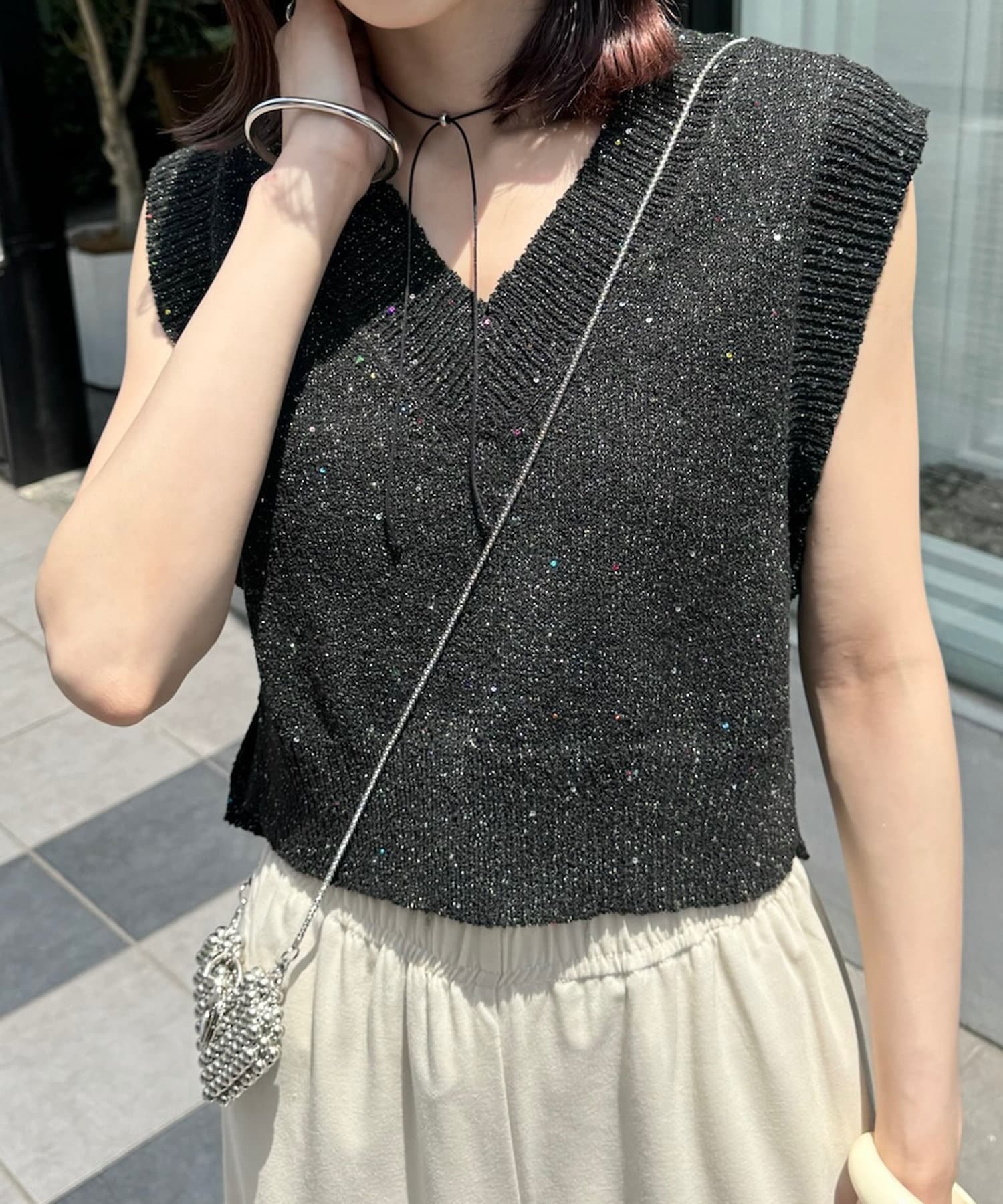 【EC限定カラーあり/BRN・BLK2】スパンコールニットベスト